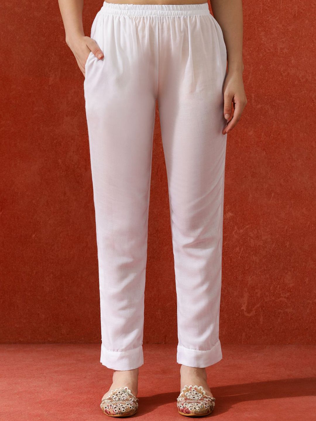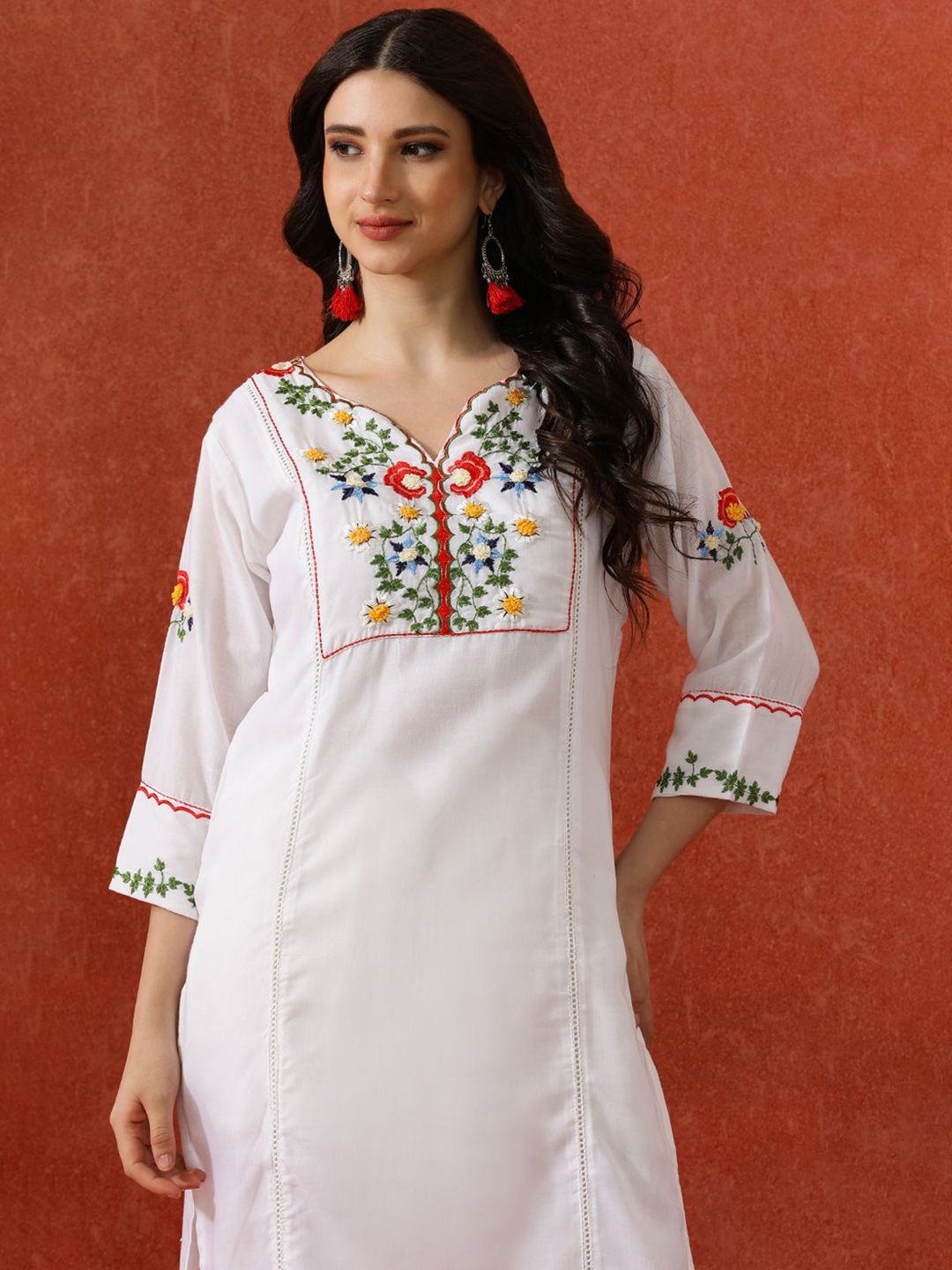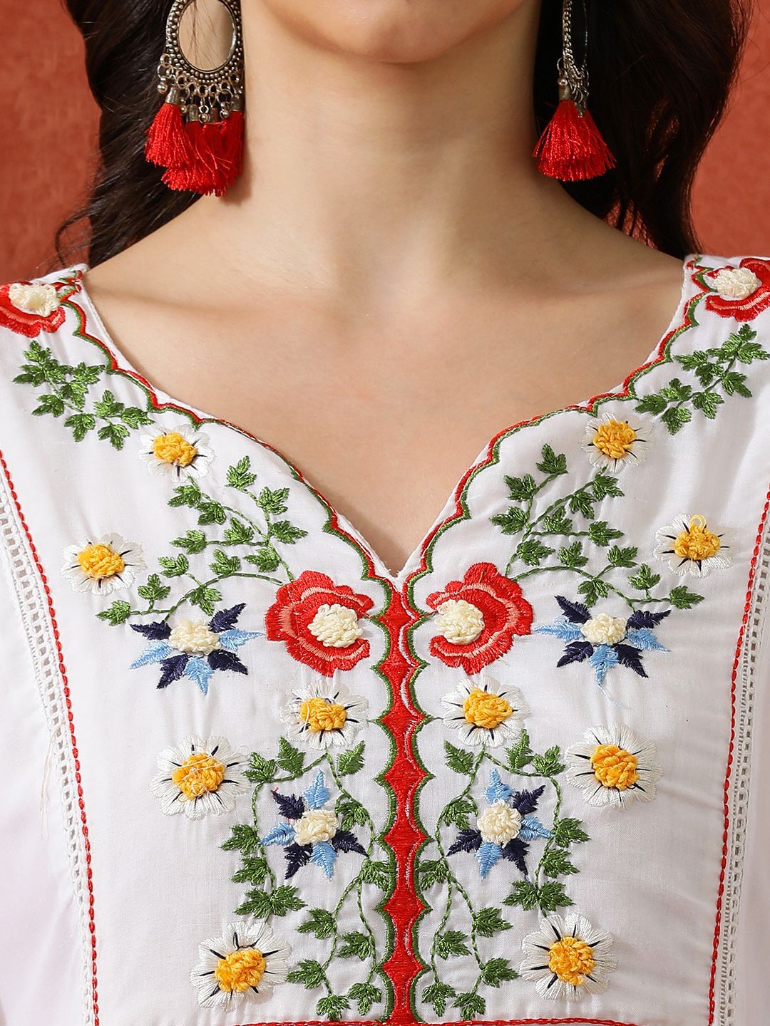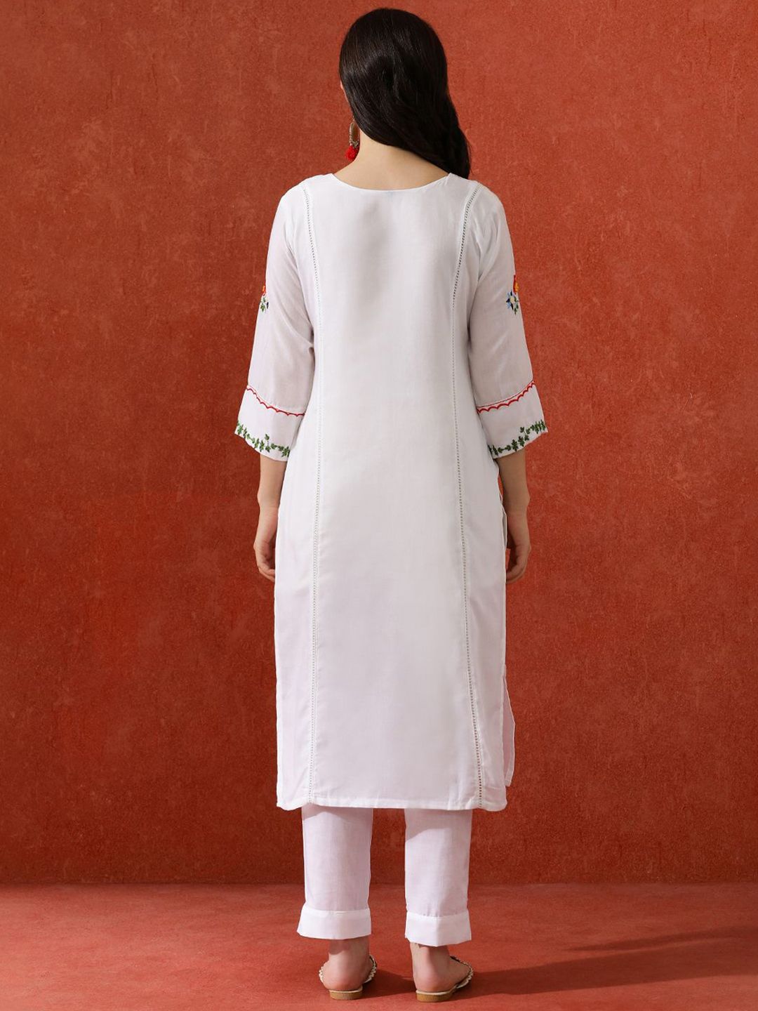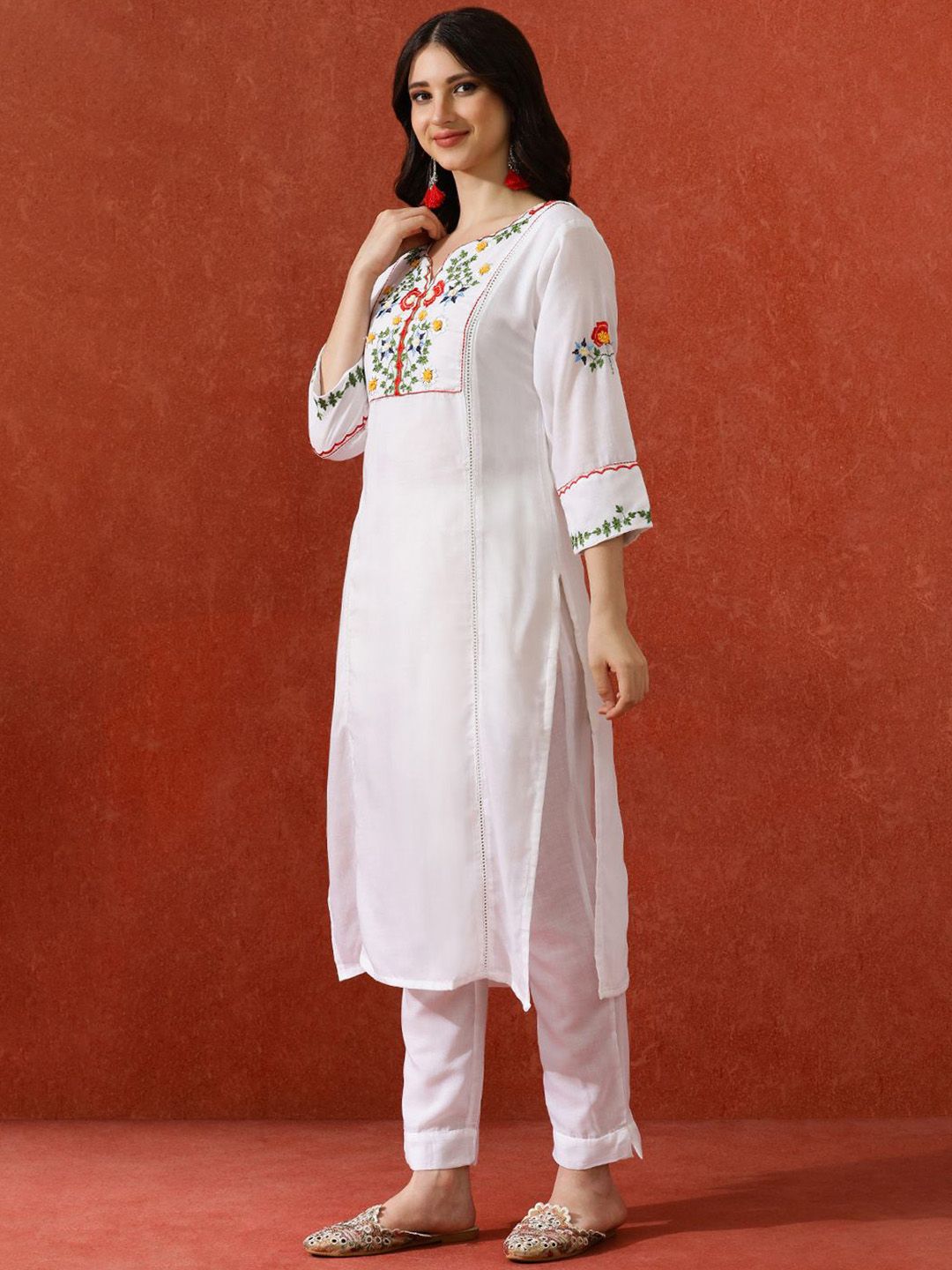 QSH Embroidered A-Line Solid Kurta & Trousers
