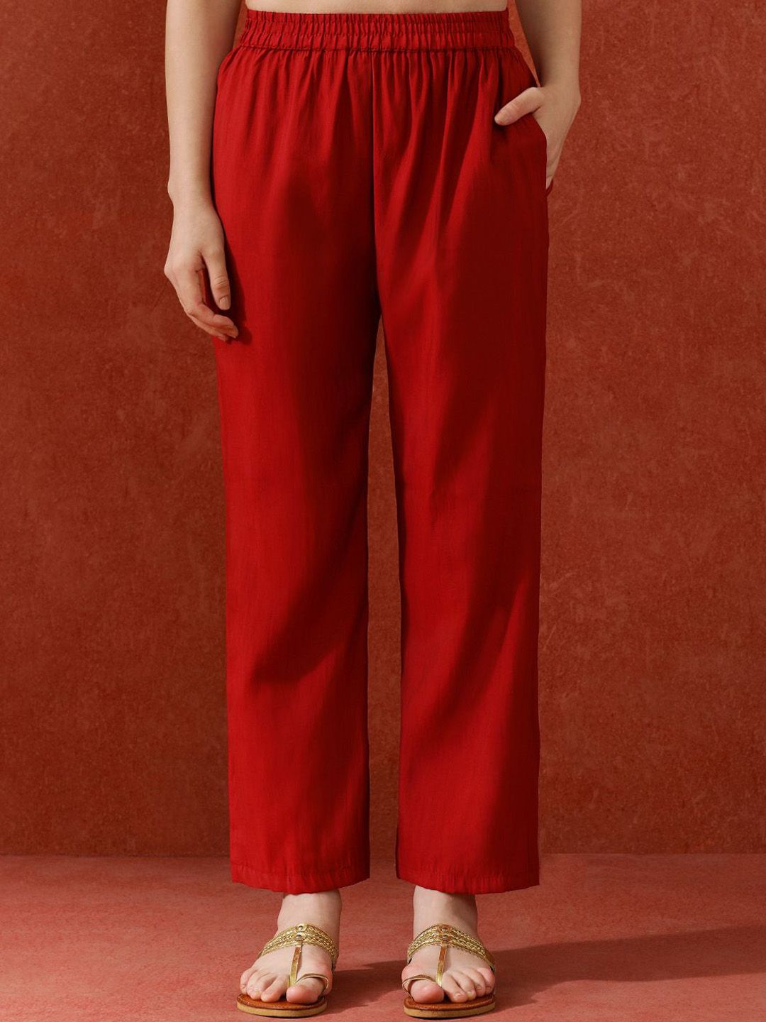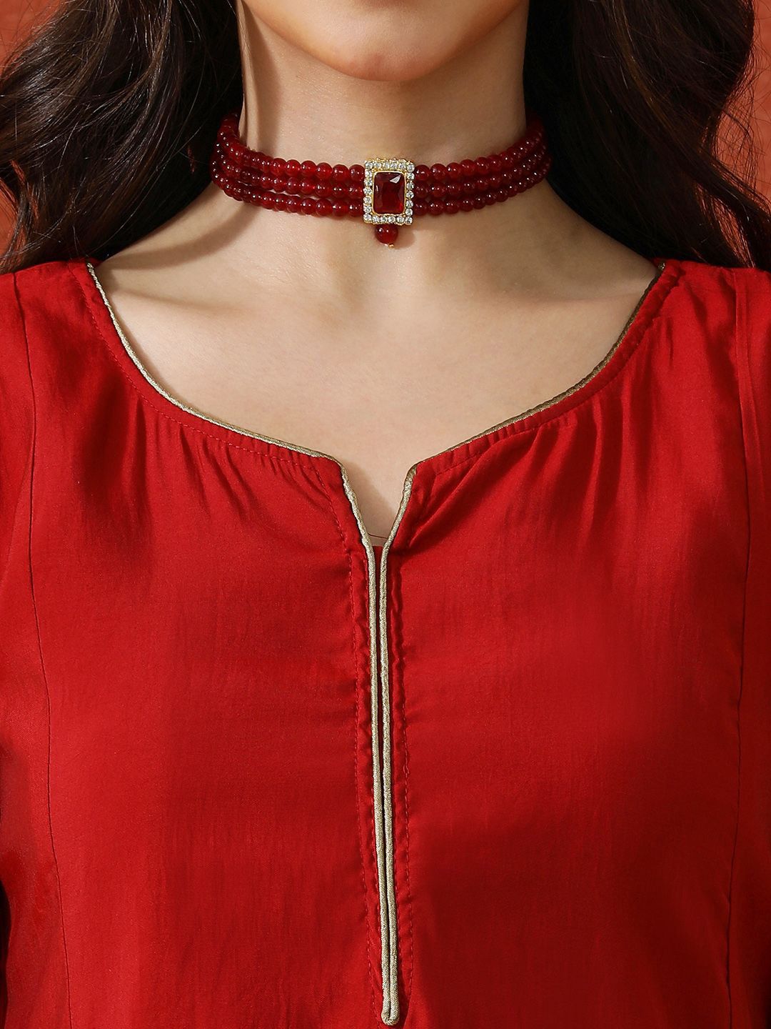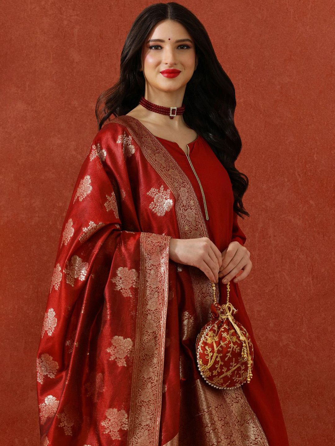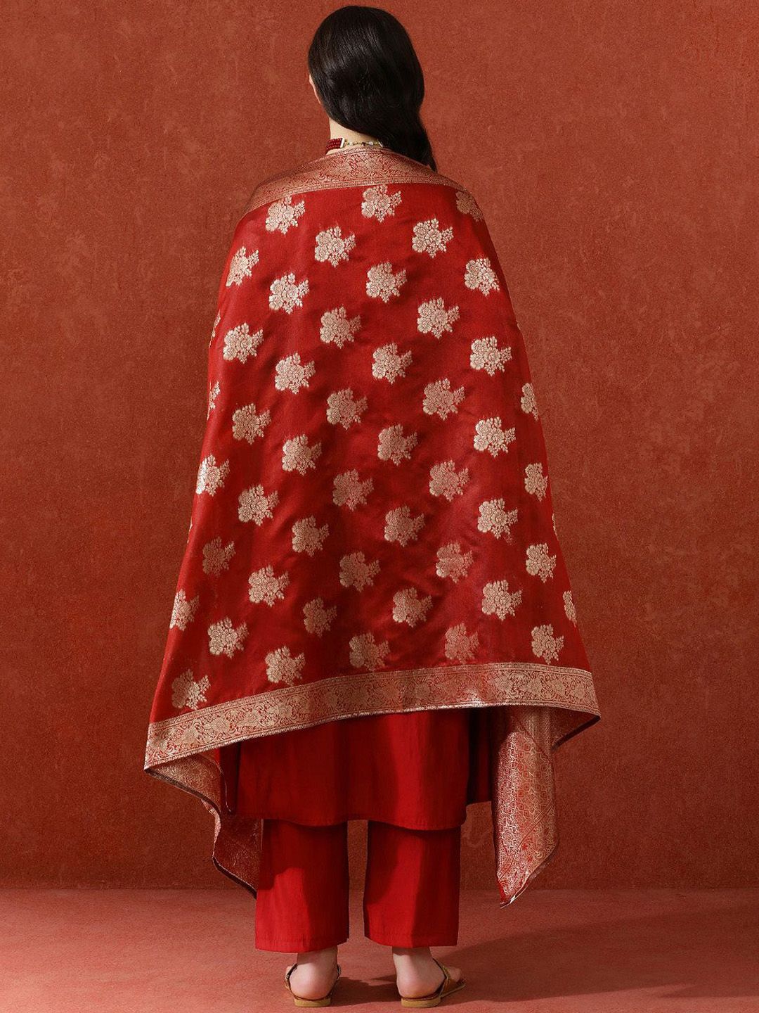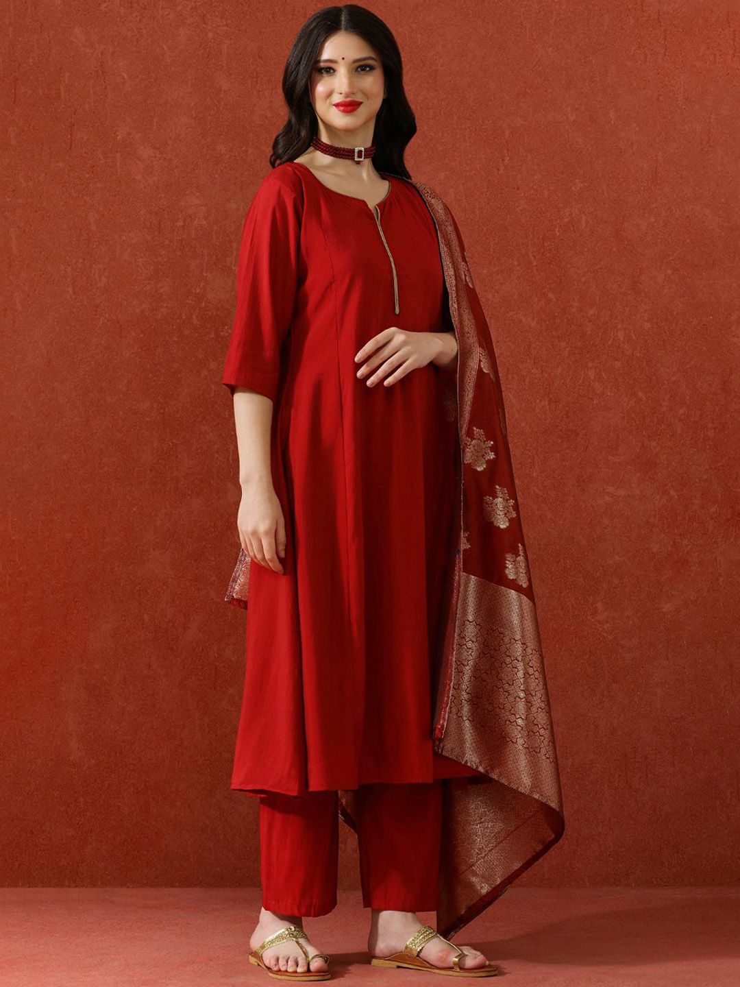 QSH Festive Solid A-Line Kurta & Trousers With Dupatta