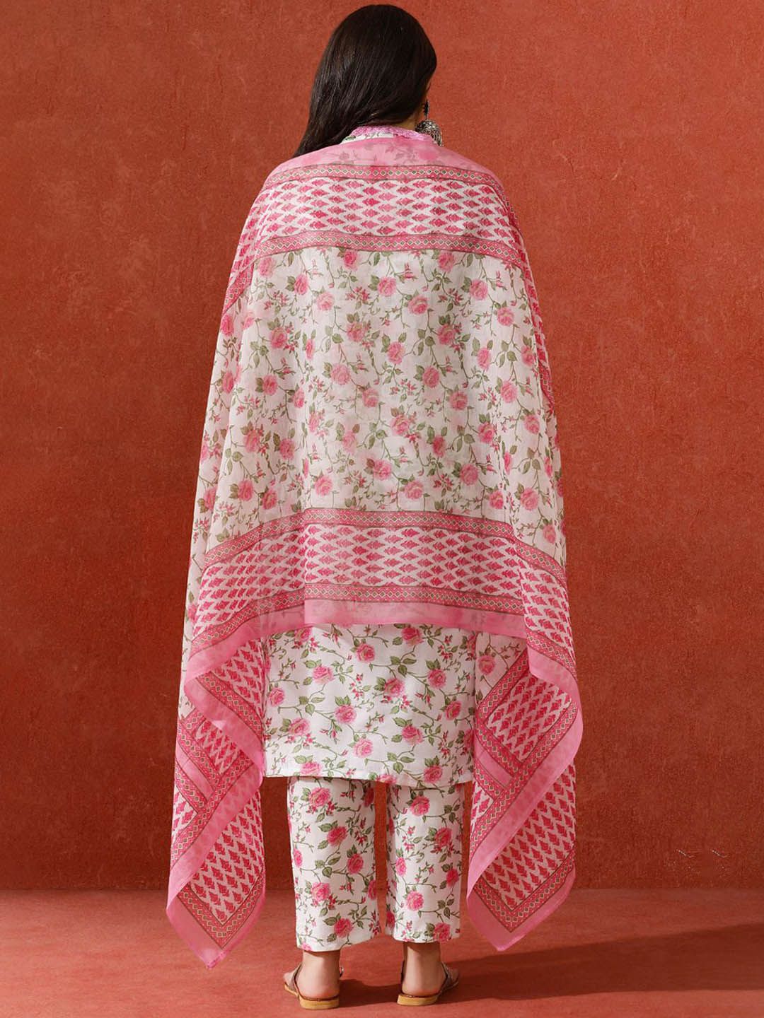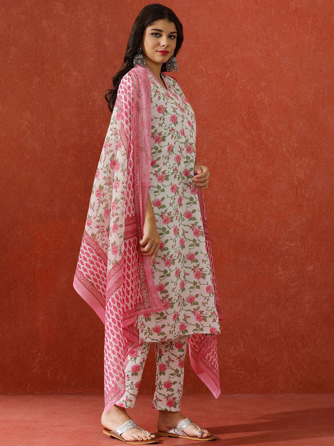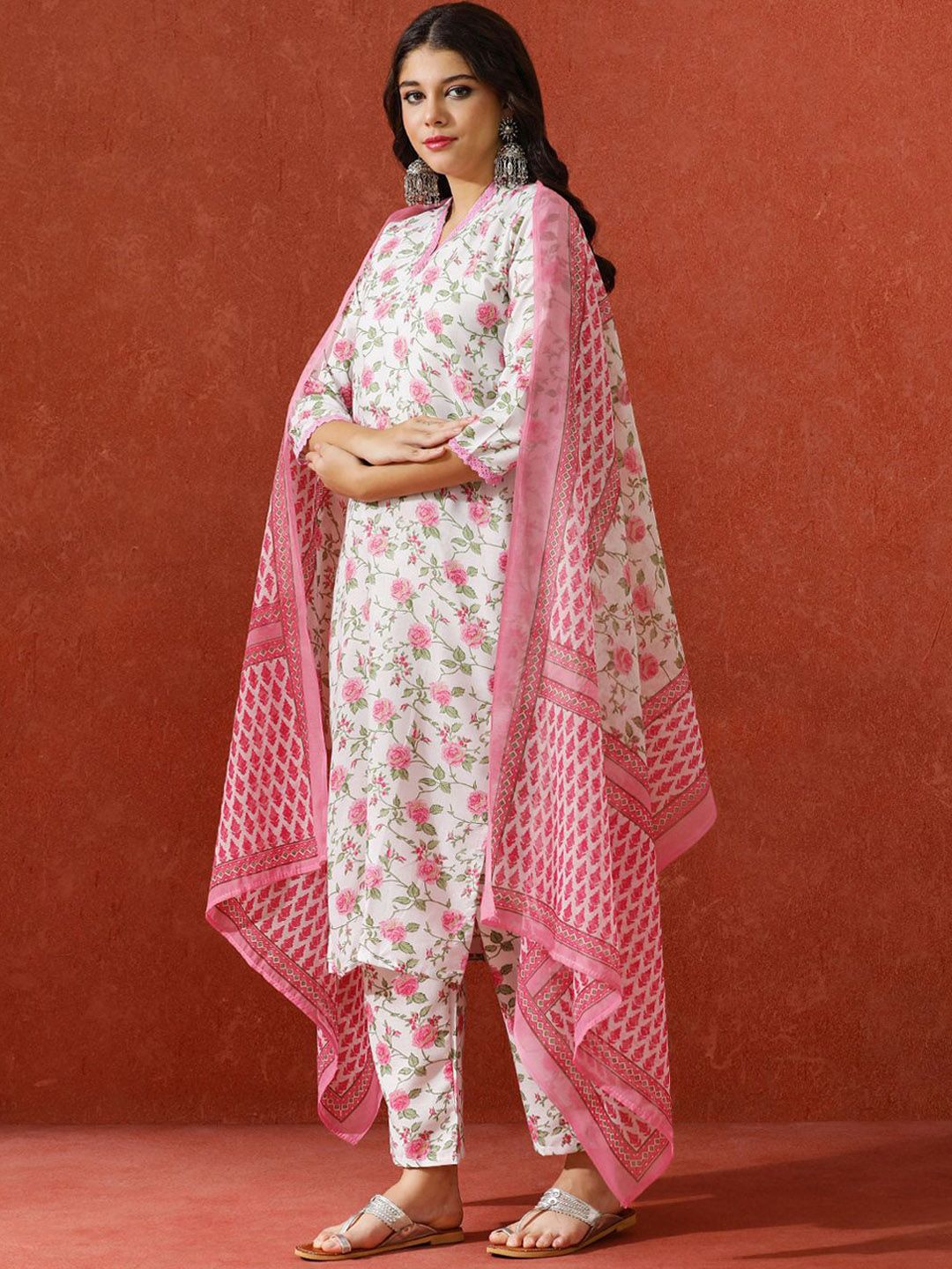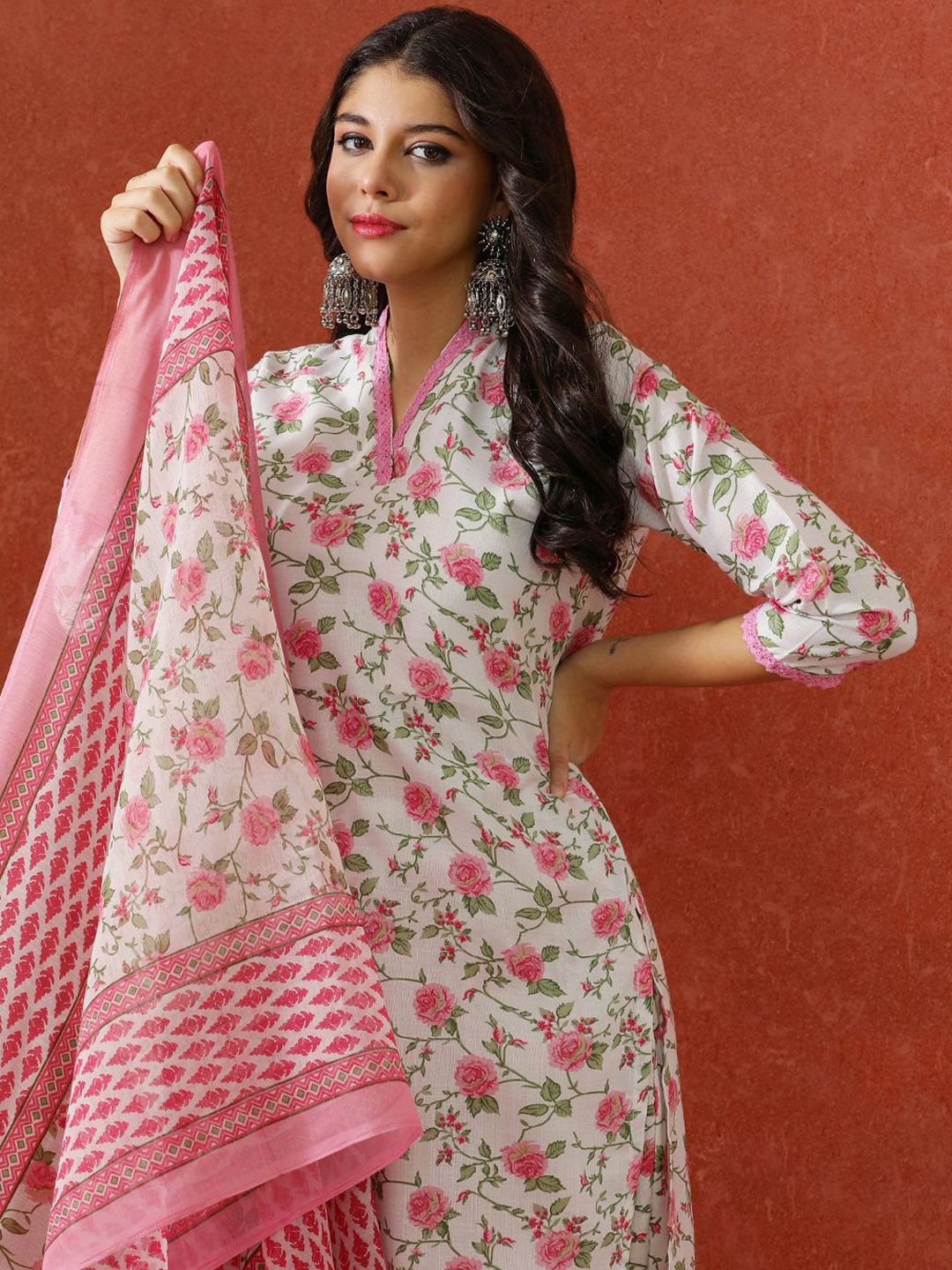 QSH Floral Printed A-Line Festive Kurta & Trousers With Dupatta