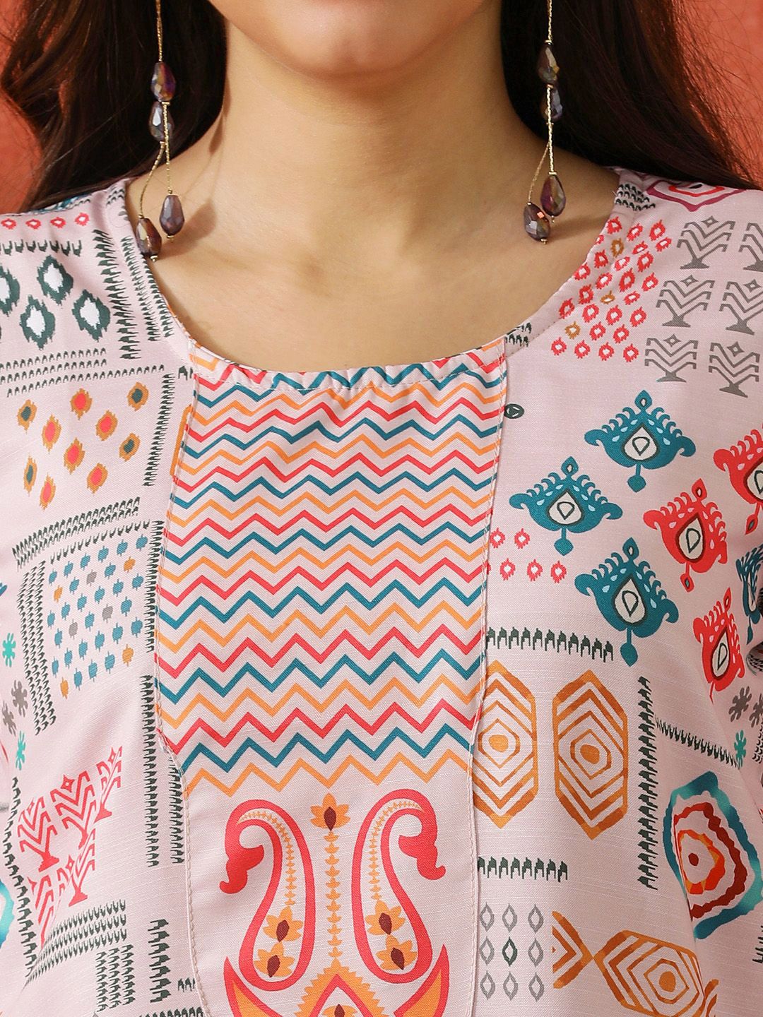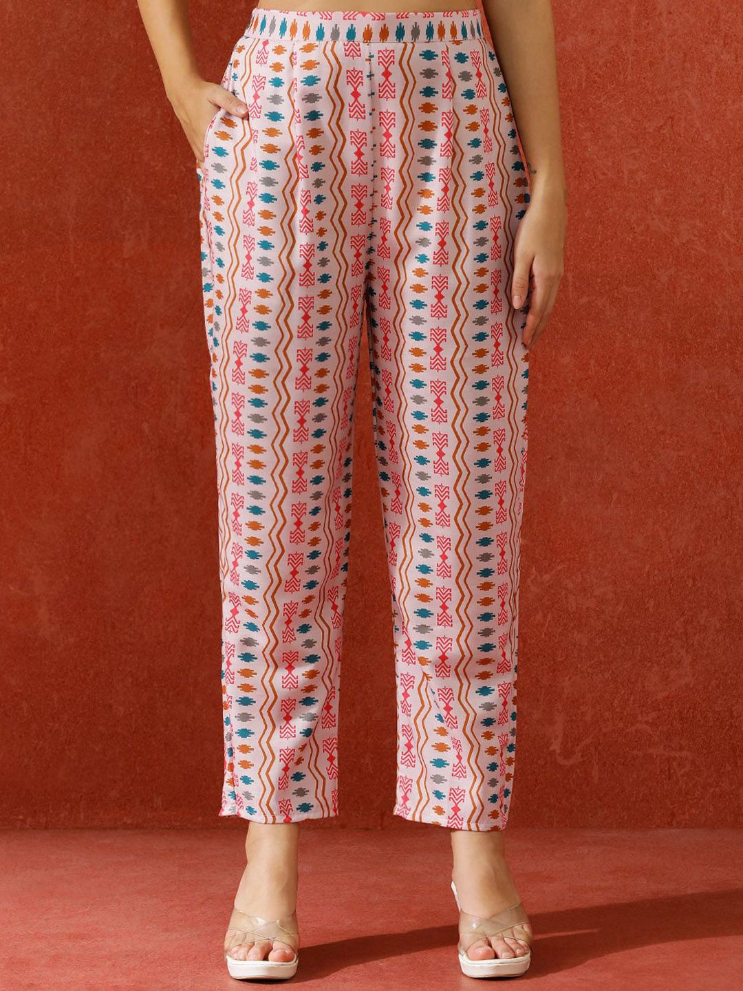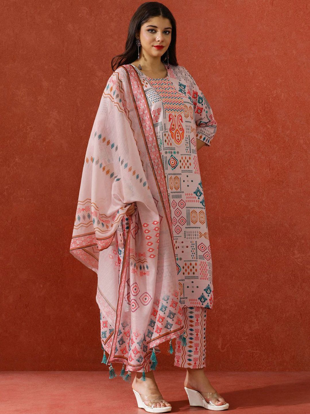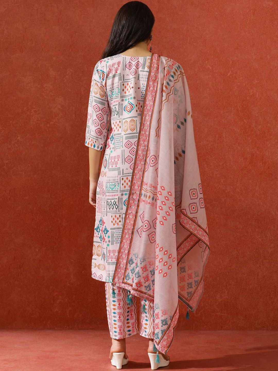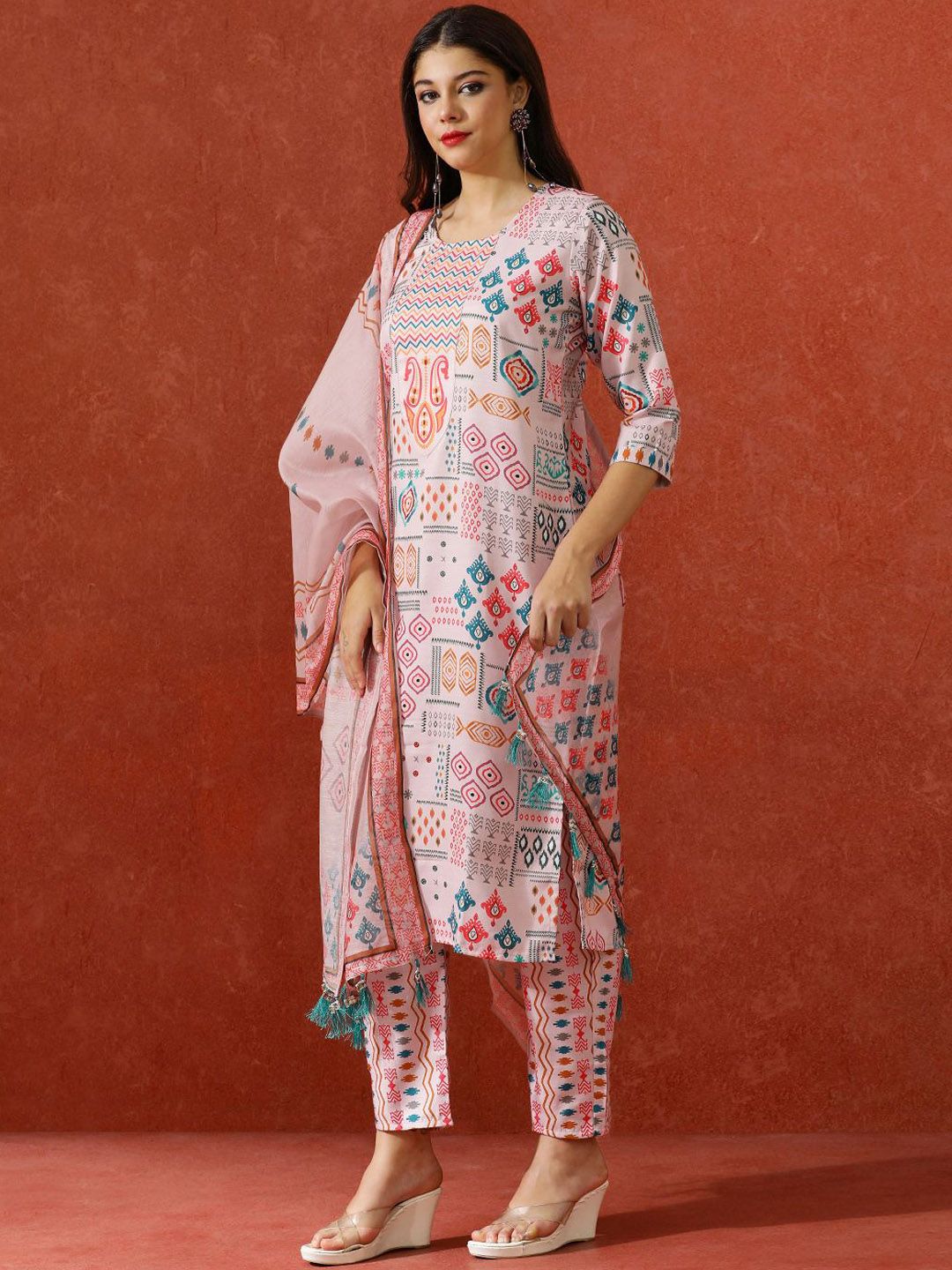 QSH Geometric Printed A-Line Festive Kurta & Trousers With Dupatta