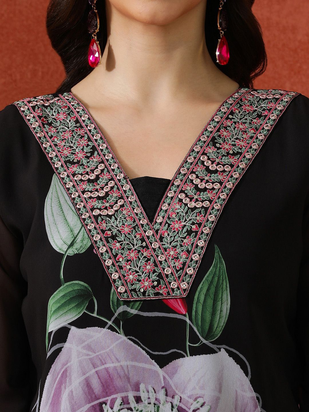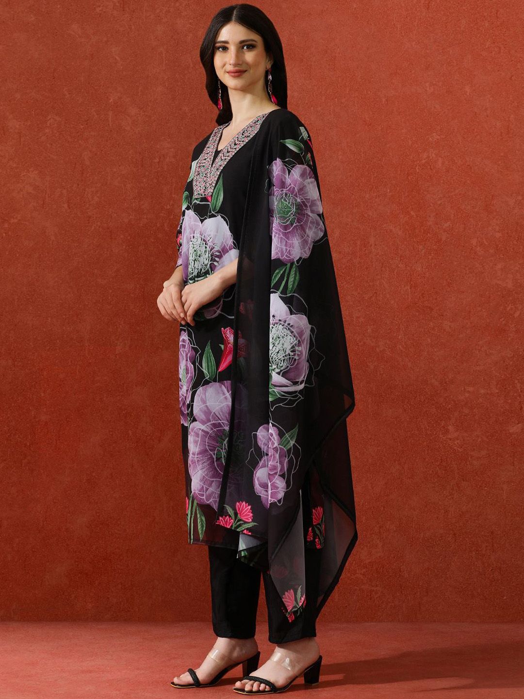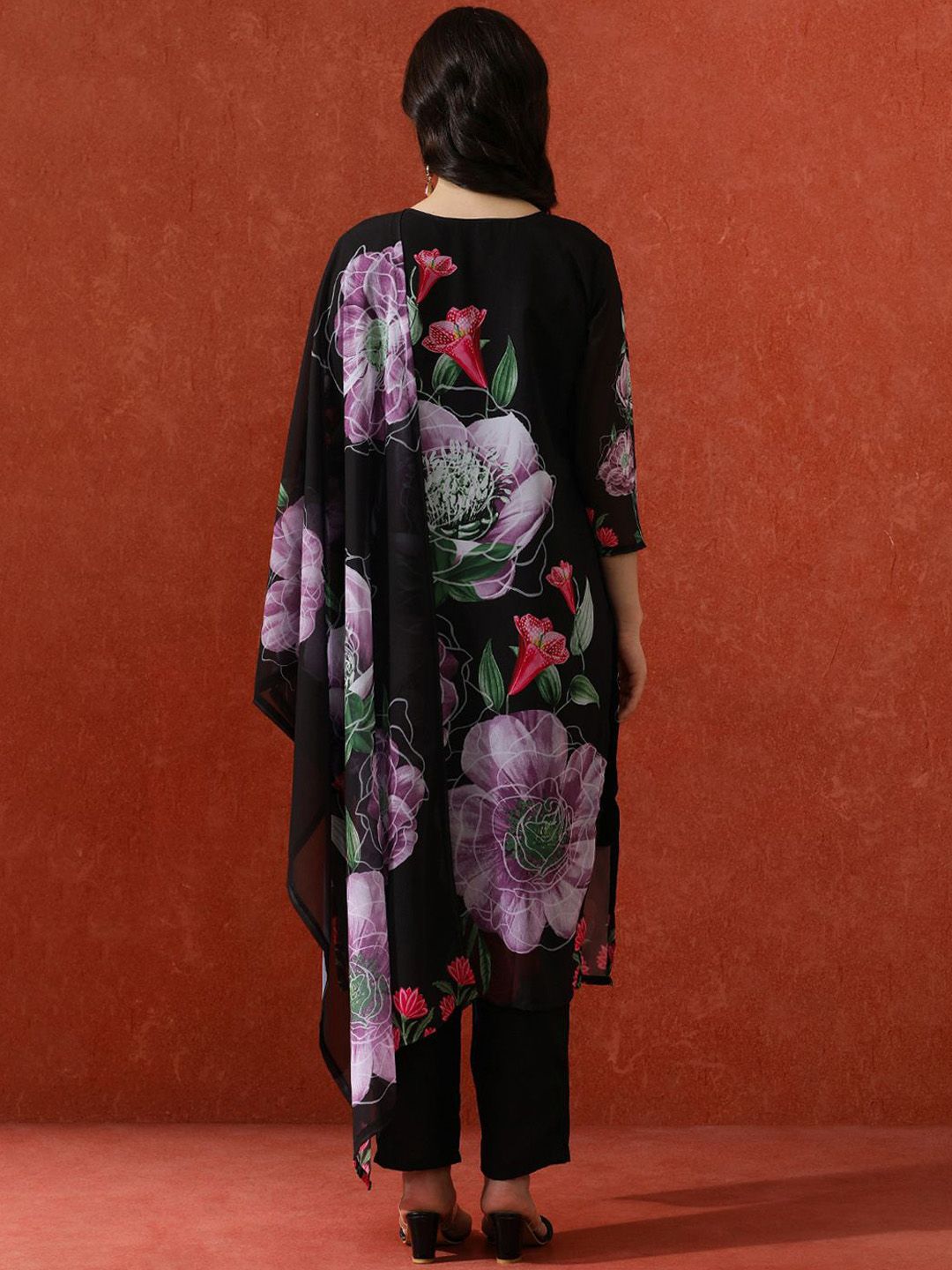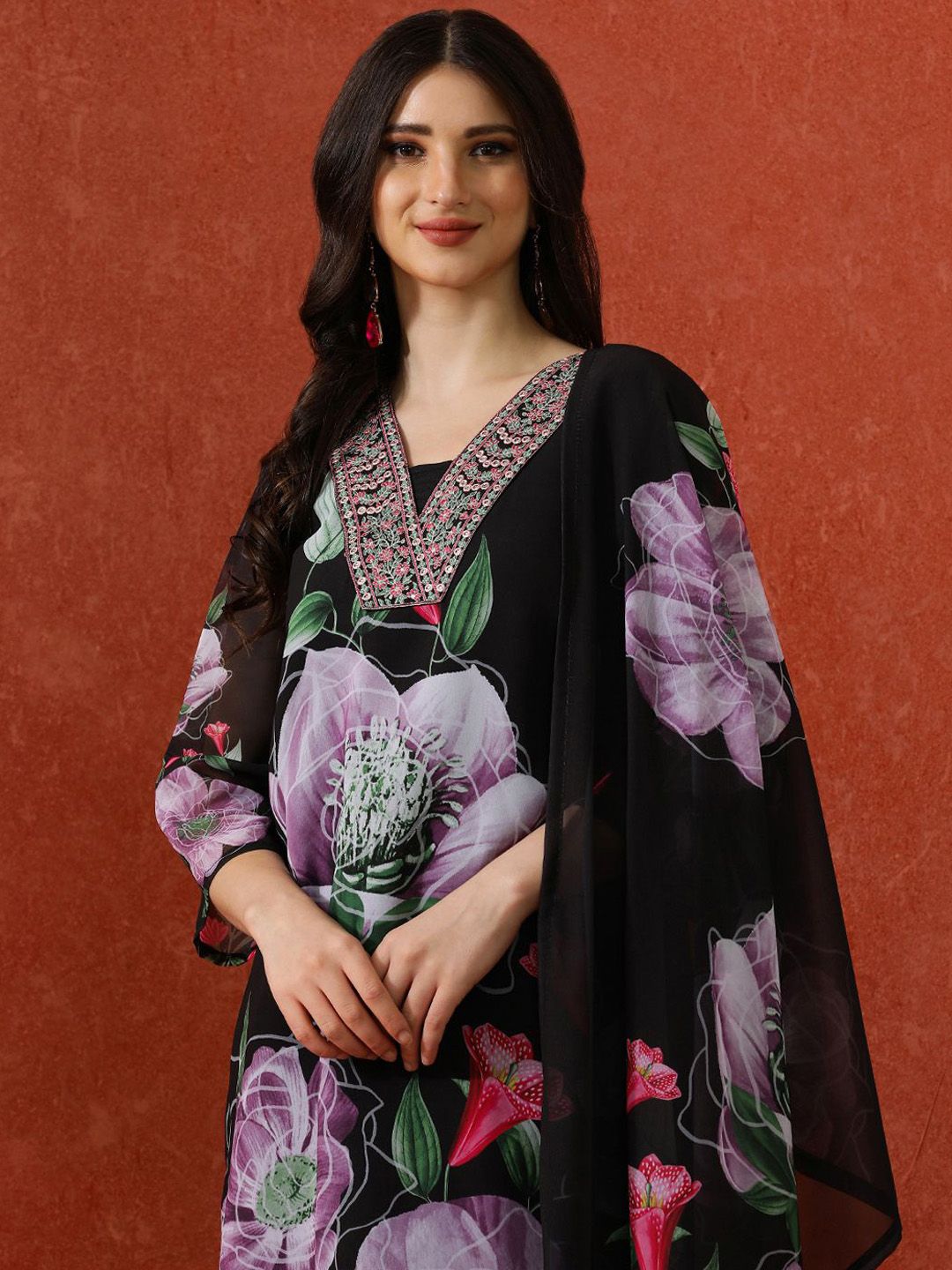 QSH Printed A-Line Floral Festive Kurta & Trousers With Dupatta