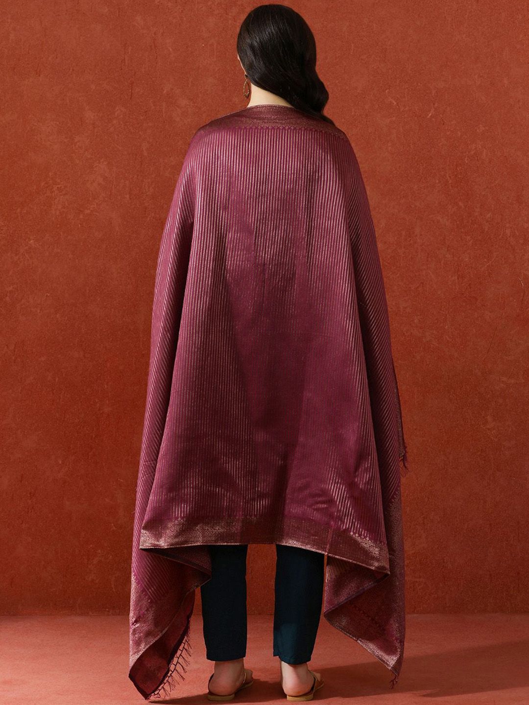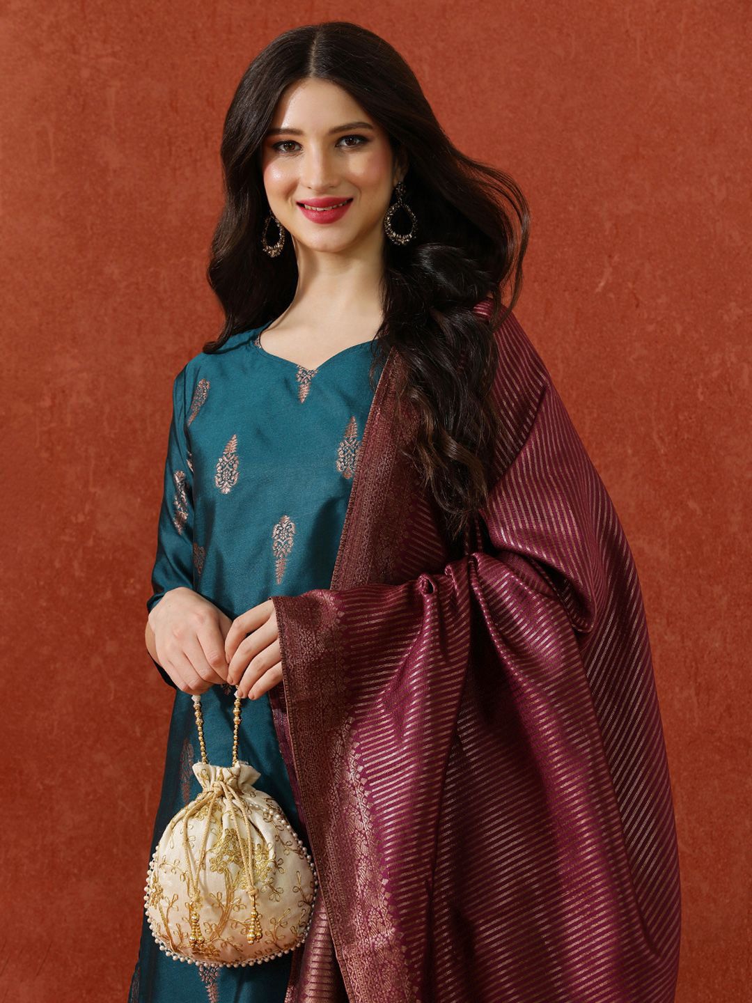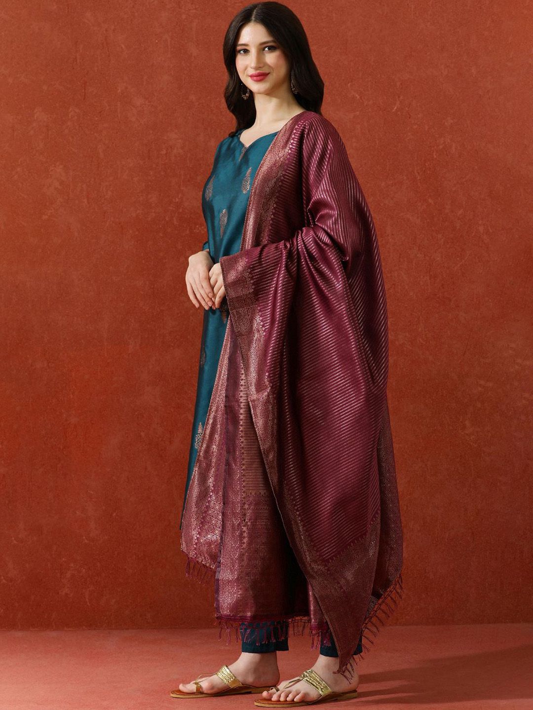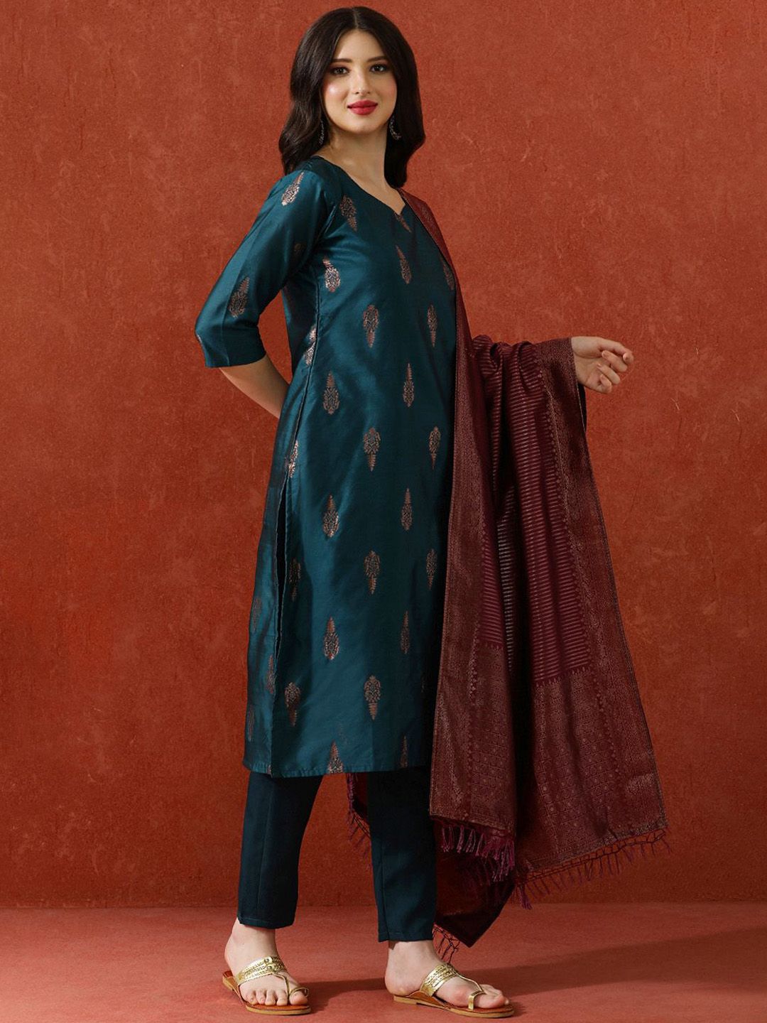 QSH Woven Design A-Line Solid Festive Kurta & Trousers With Dupatta