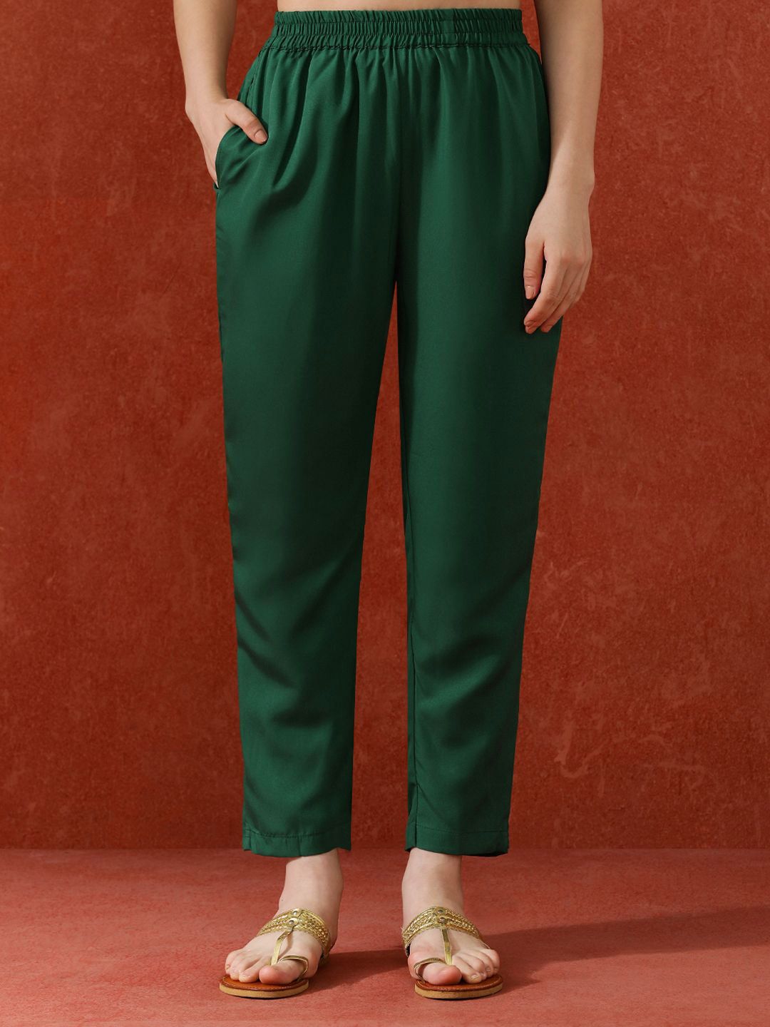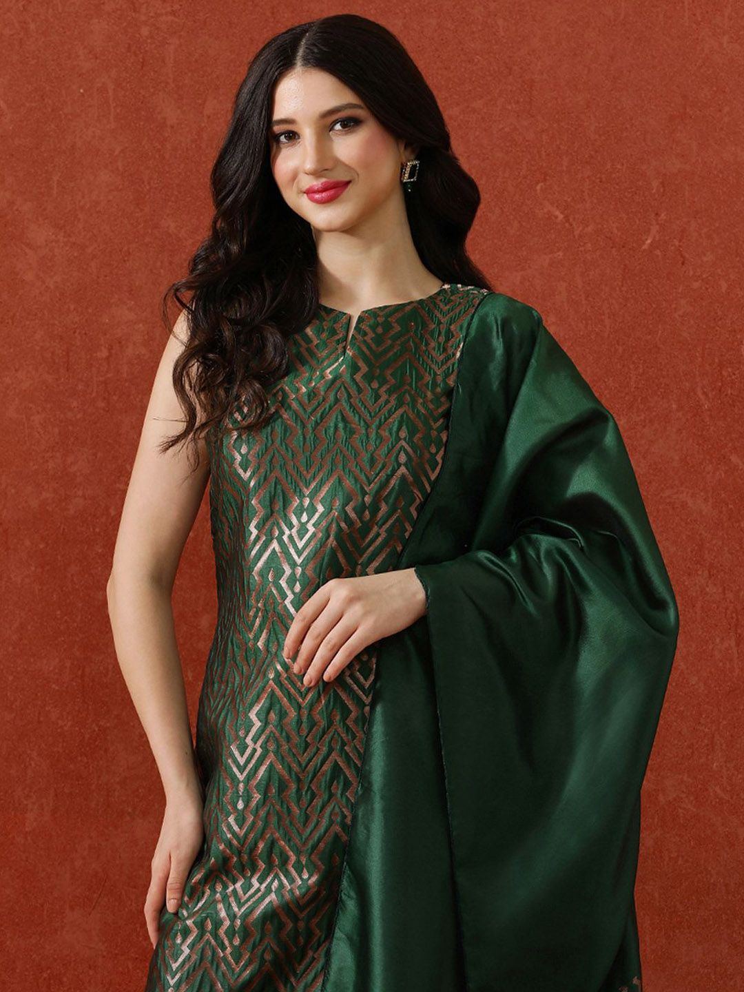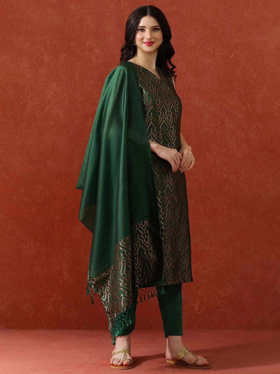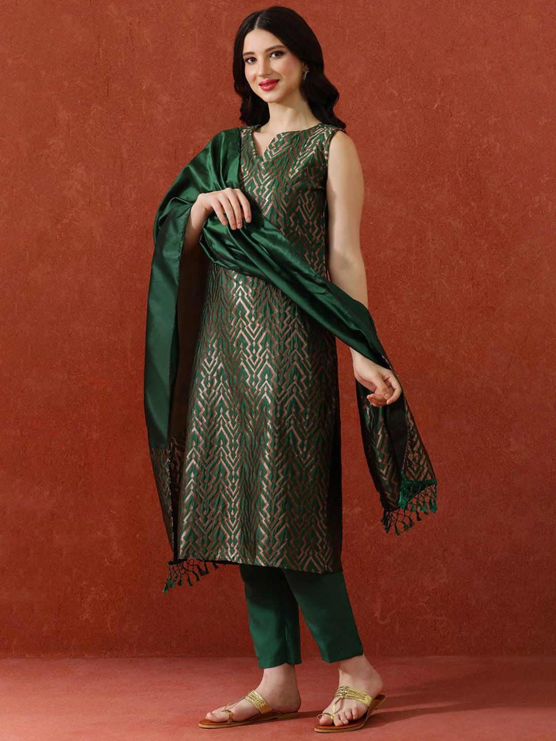 QSH Woven Design A-Line Solid Festive Kurta & Trousers With Dupatta