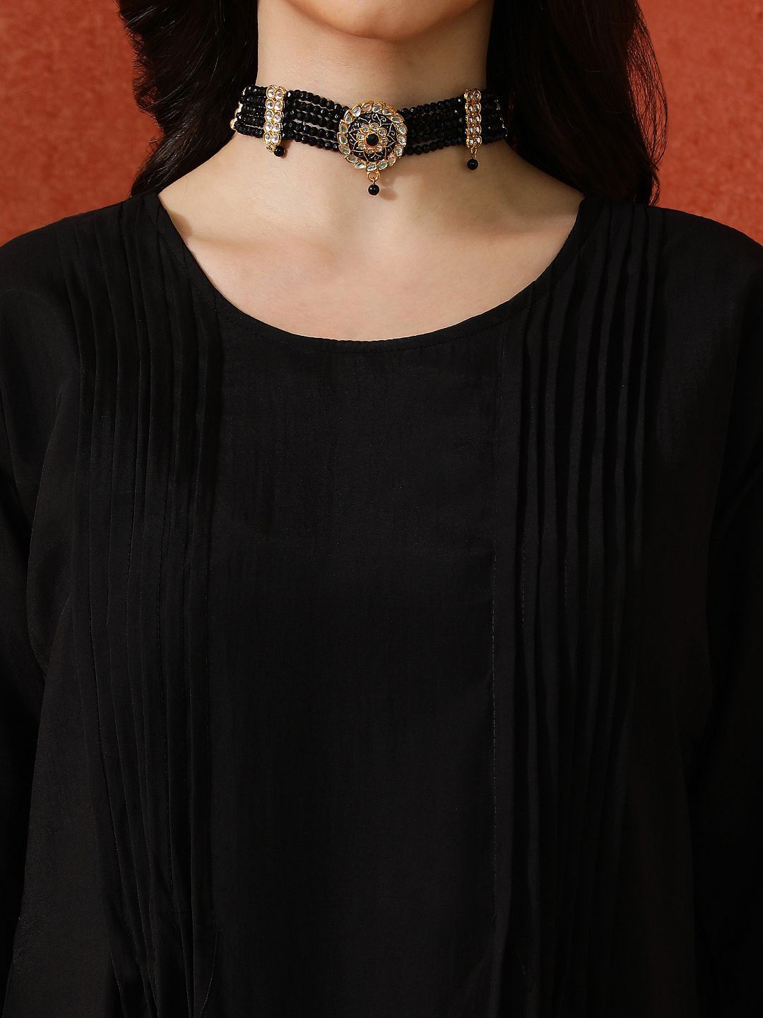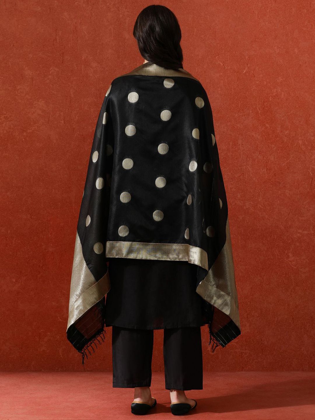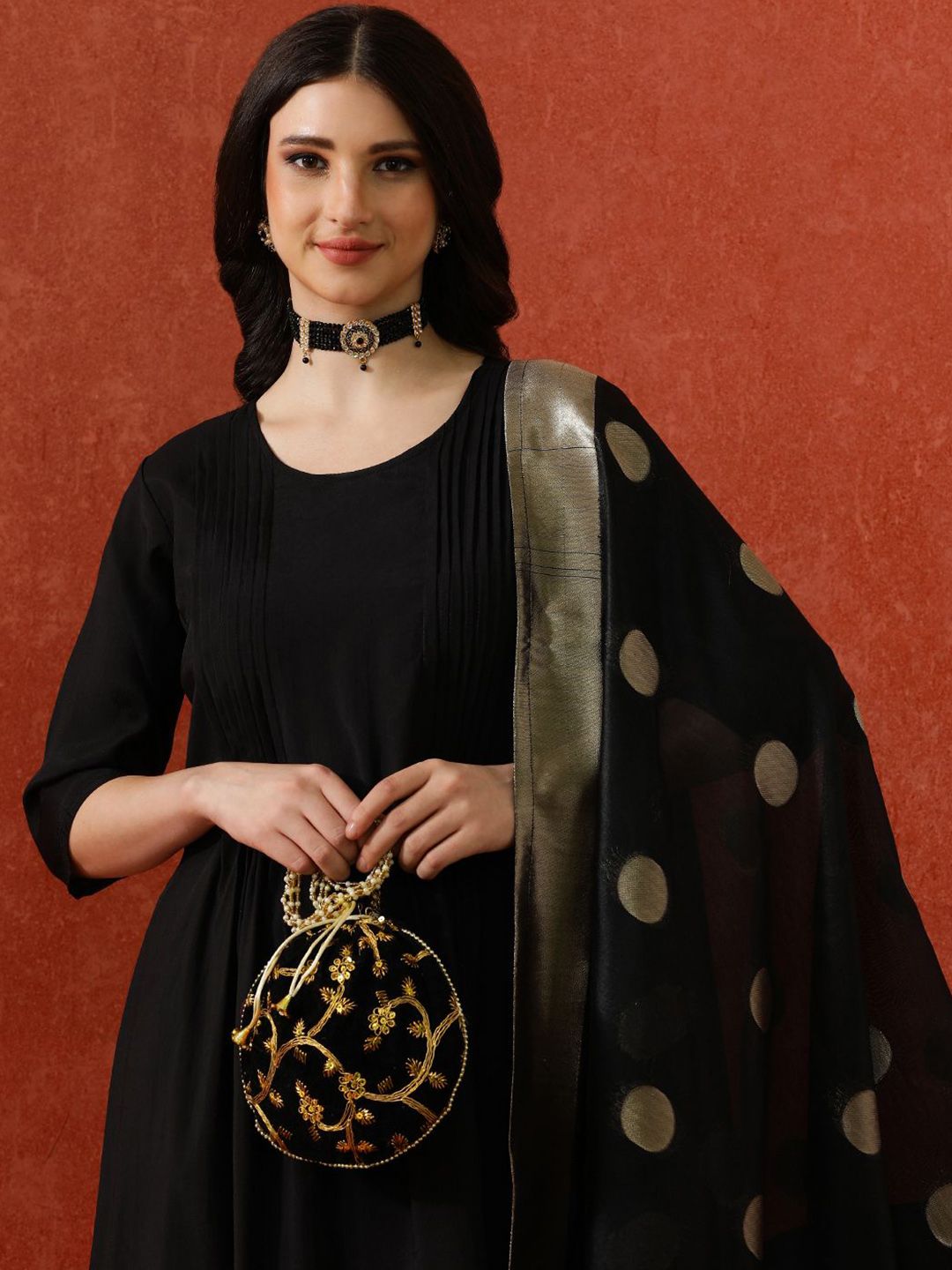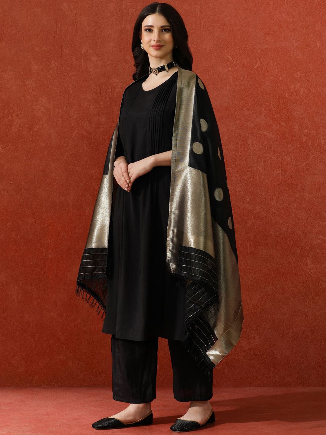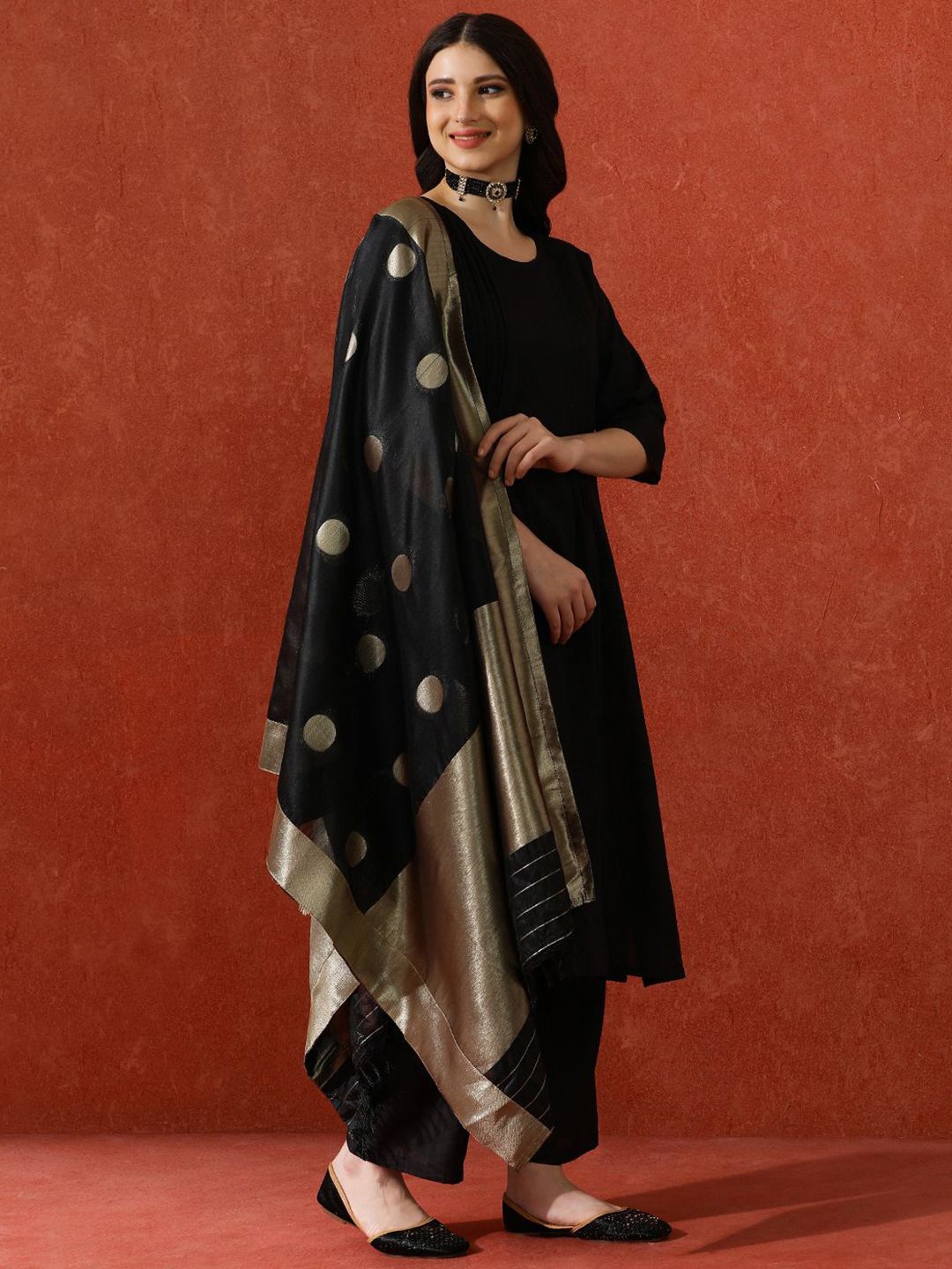 QSH Woven Design A-Line Solid Festive Kurta & Trousers With Dupatta