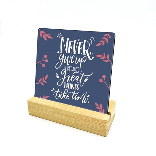 RAG28 Wooden Never Give Up Study Office Table Decor Showpiece for Home Decor Items (Size: 6.5X6 Inches, EK31)