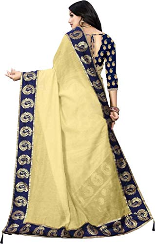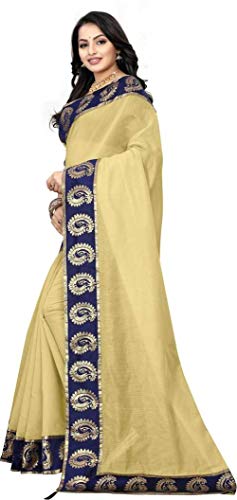 RAJESHWAR FASHION WITH RF Chanderi Cotton Saree With Jequard border & Blouse for Women (Dark Cream)