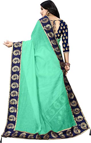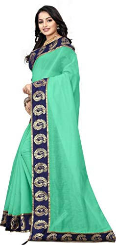 RAJESHWAR FASHION WITH RF Chanderi Cotton Saree With Jequard border & Blouse for Women (Sea Green)