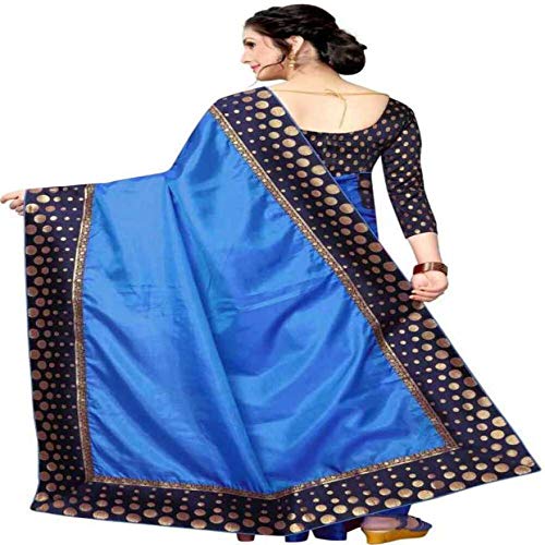 RAJESHWAR FASHION WITH RF Women Chanderi Cotton Sarees With Jequard border & Blouse(Blue)
