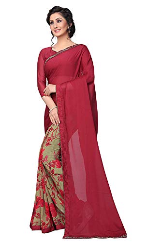 RAJESHWAR FASHION WITH RF Women's Georgette Printed Half Half Saree For Women With Lace Border & Blouse Piece