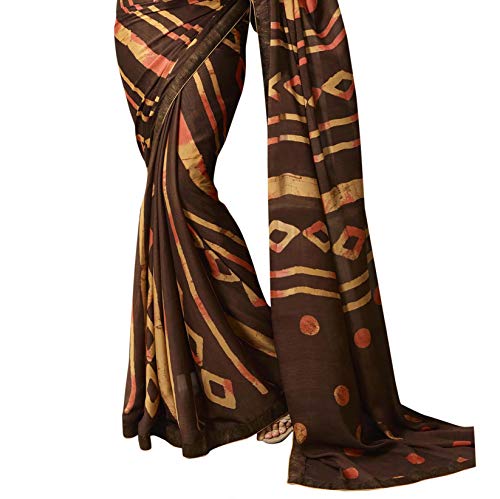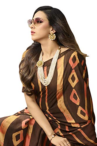 RAJESHWAR FASHION WITH RF Women's Printed Silk SareeWith Blouse(A39 BROWN_Brown)
