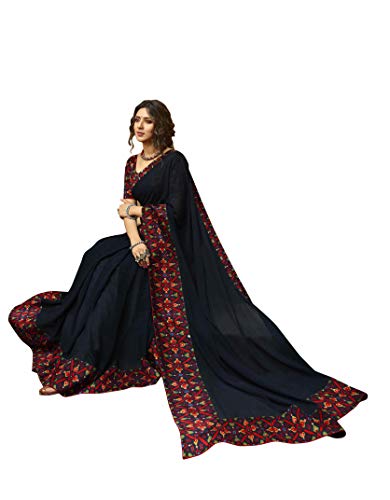 RAJESHWAR FASHION WITH RF Women's Pure Georgette Saree With Digital Print Lace Border & Blouse(Dark Blue)