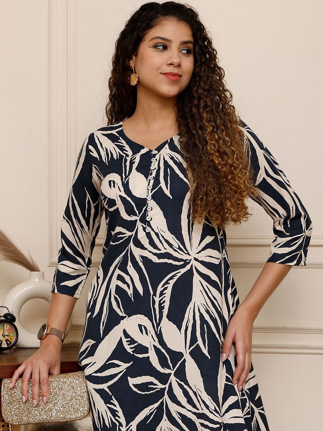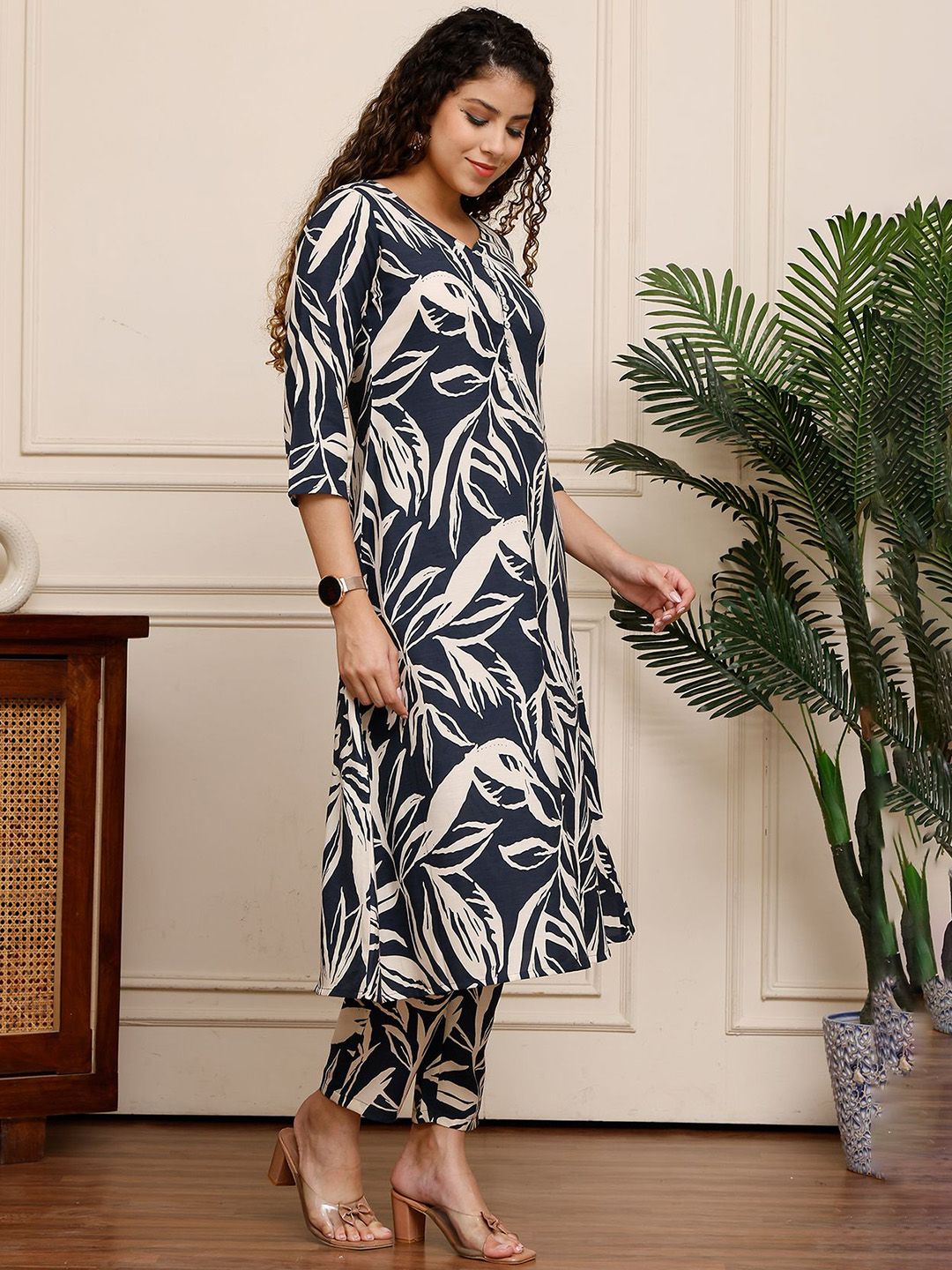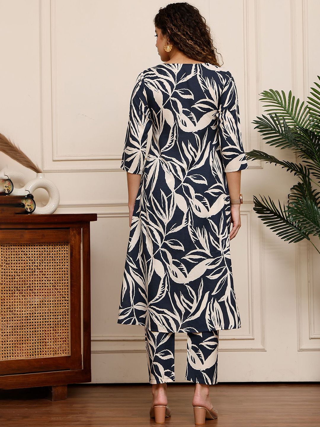 Rajnandini Women Floral Printed A-Line Pure Cotton Kurta with Trousers