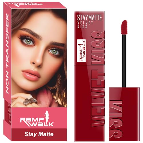 Ramp Walk Velvet Kiss Water & Smudge-Proof Matte Liquid Lipstick Up to 12-Hour Long-Lasting Bold Color for Women (Cherry Red, 3.5 ml)
