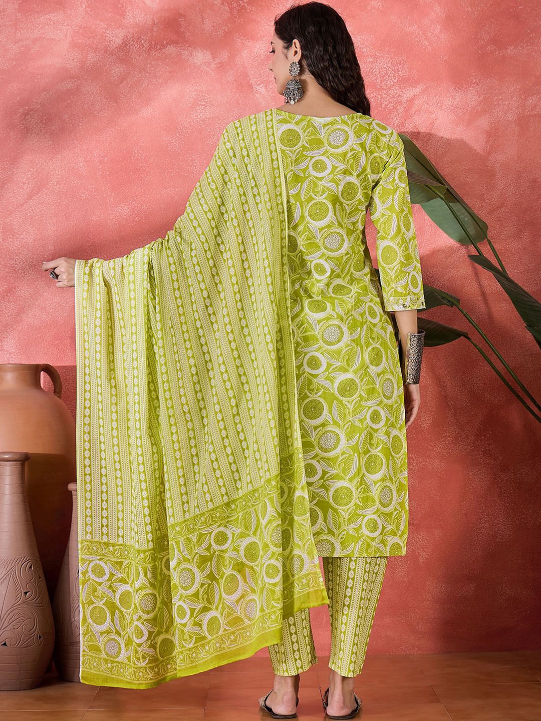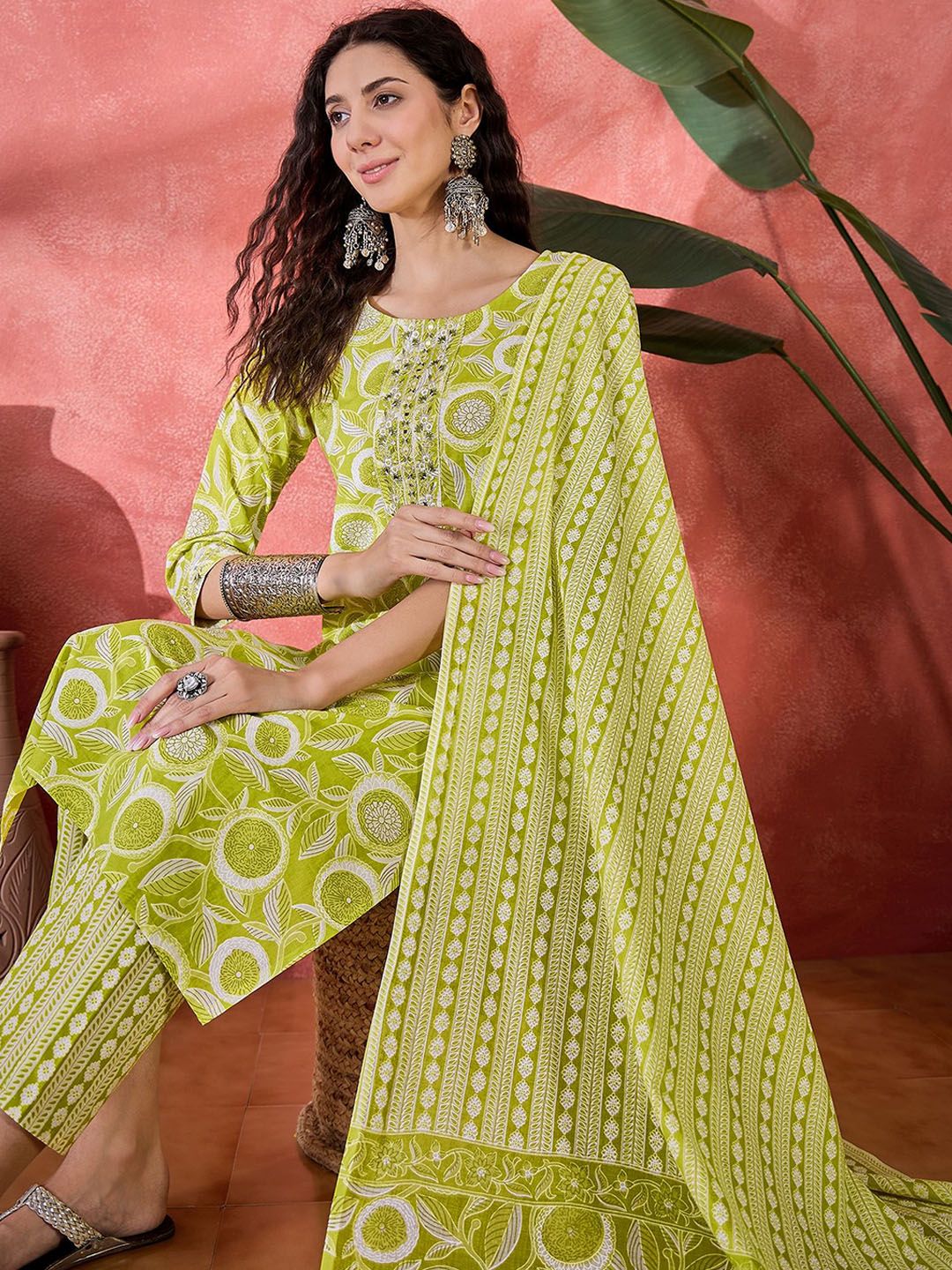 RangDeep Women Printed Regular Pure Cotton Kurta With Trouser & Dupatta