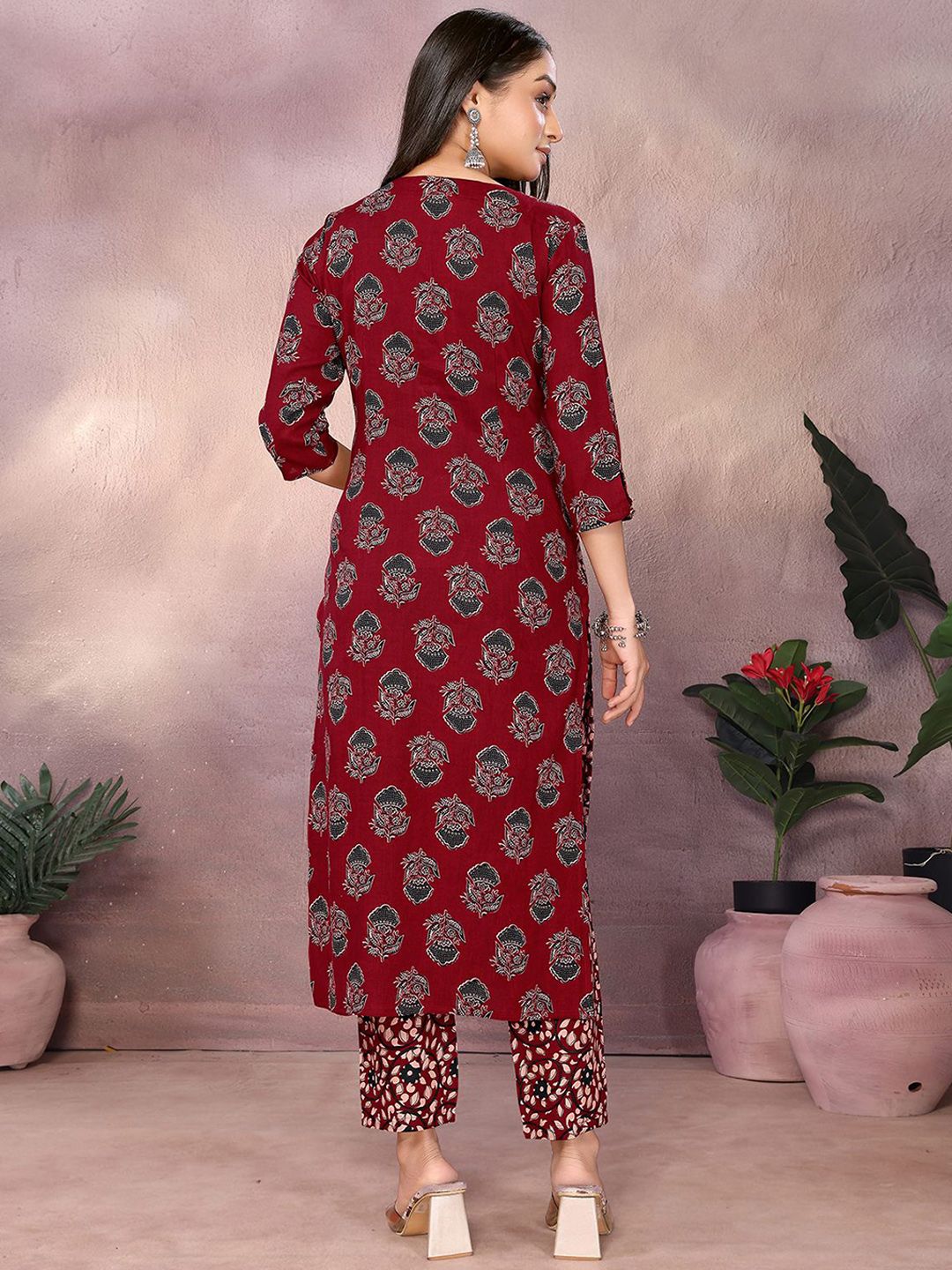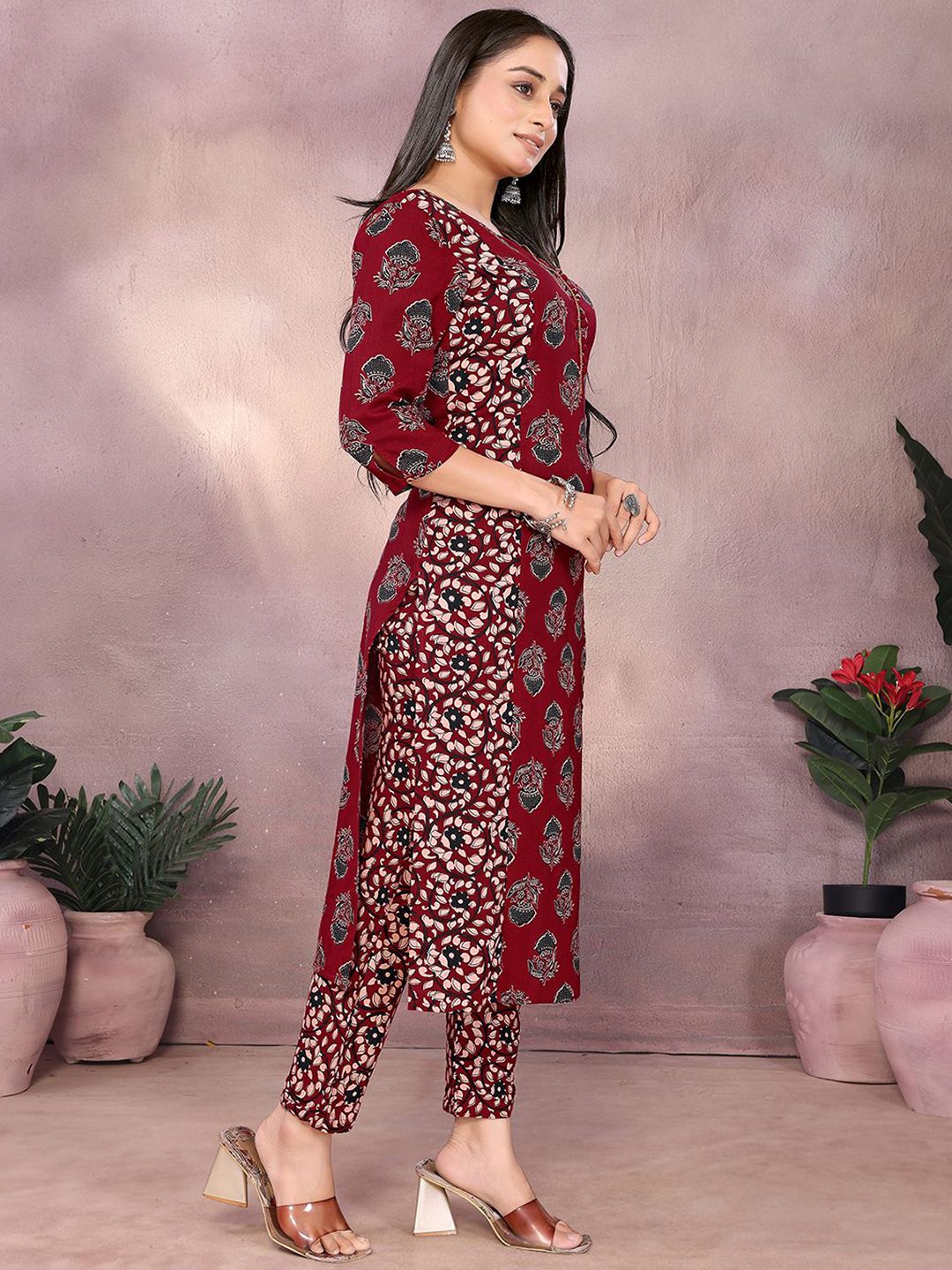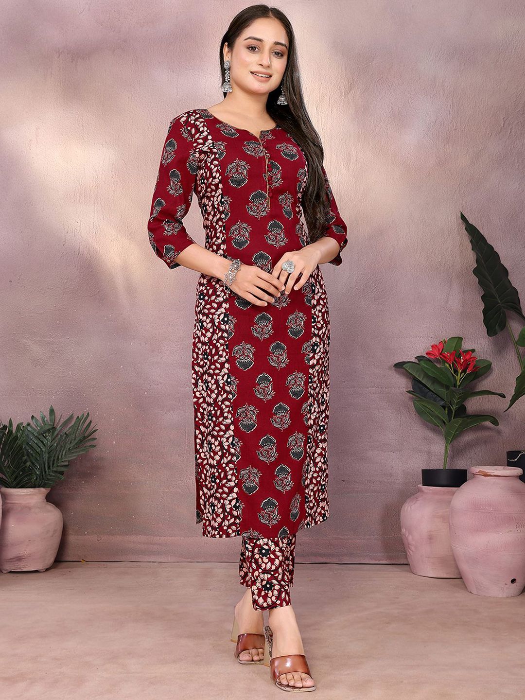Rangita Floral Printed Notch Neck Straight Kurta With Trousers