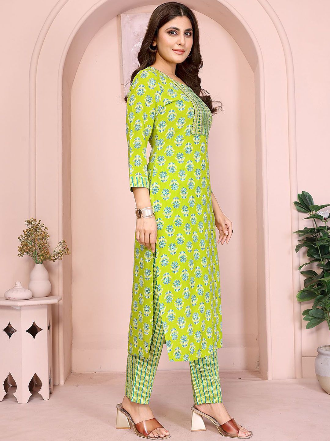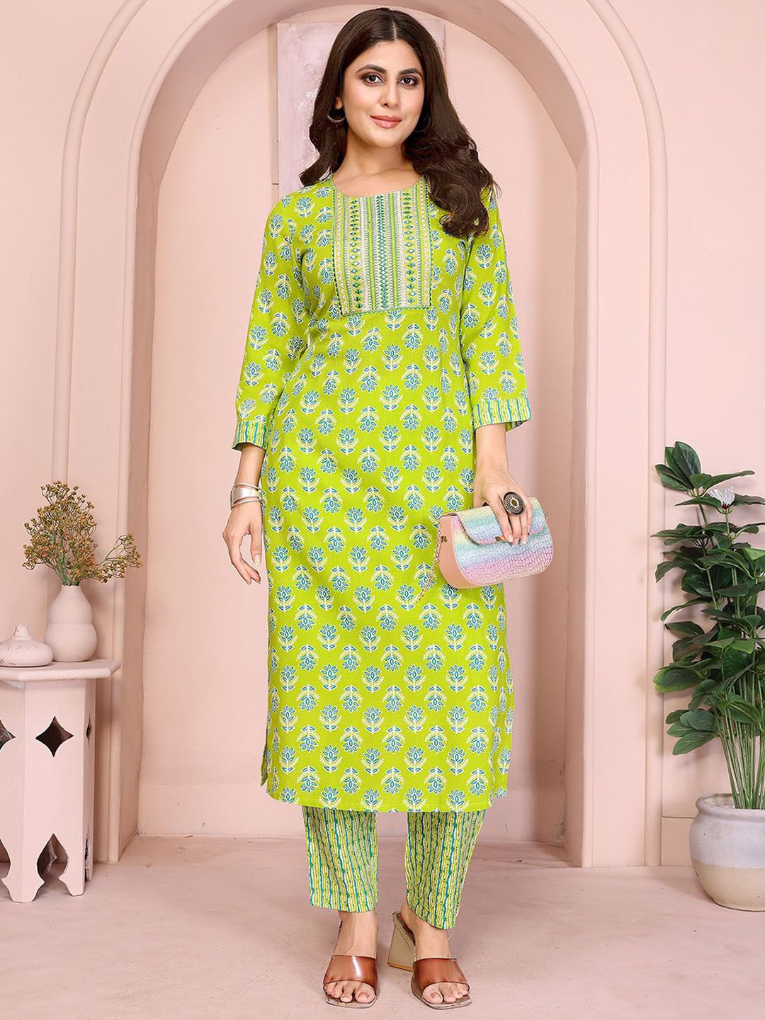 Rangita Floral Printed Thread Work Kurta With Trouser