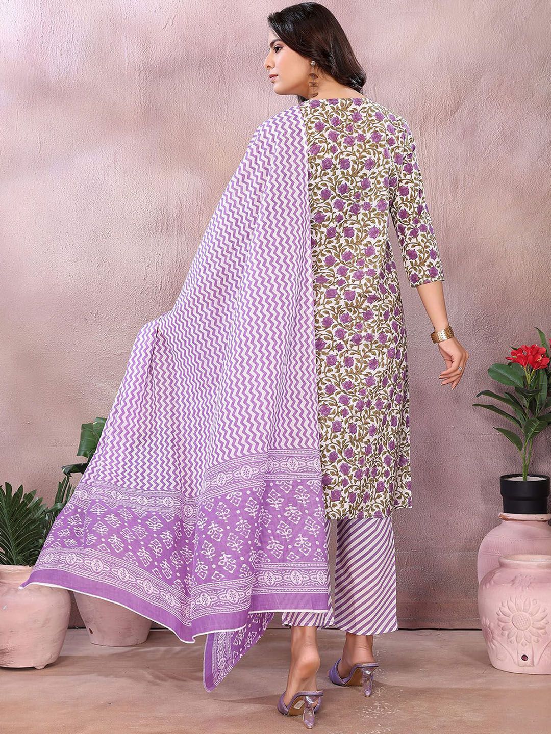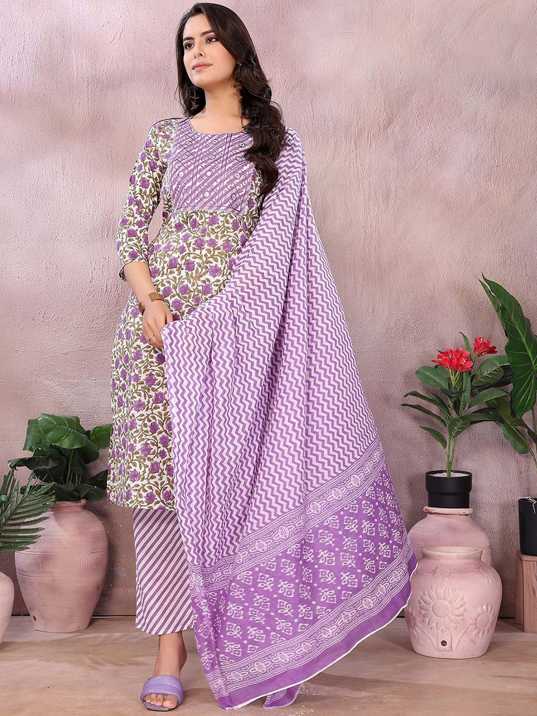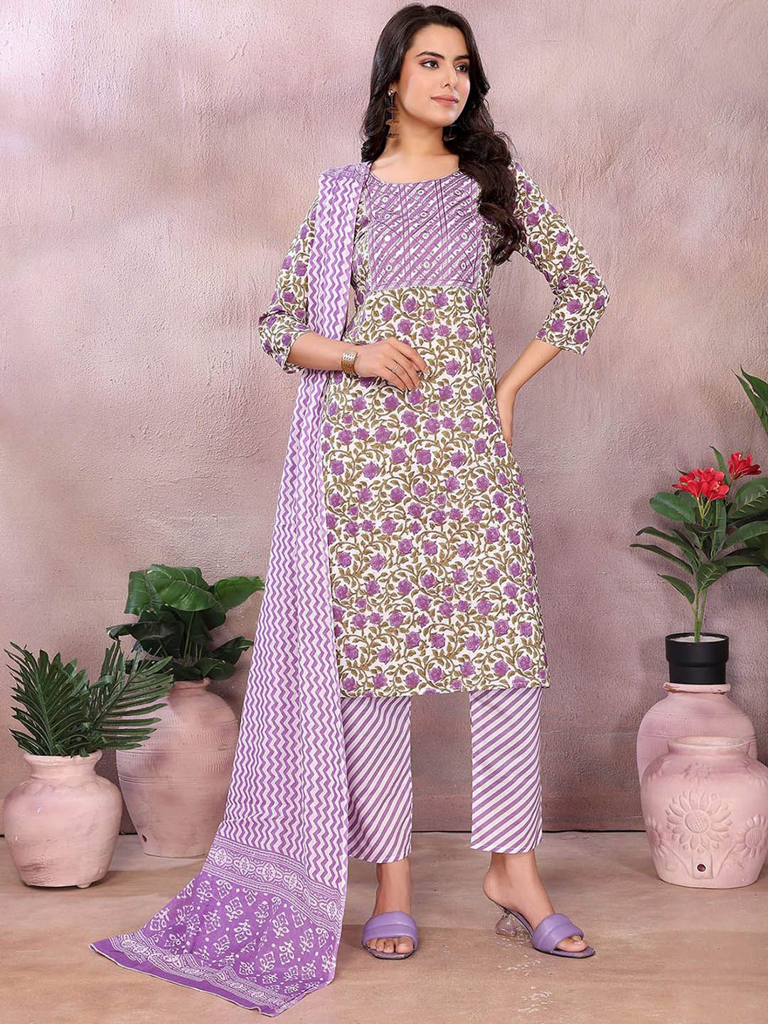 Rangita Women Floral Embroidered Cotton Kurta with Trousers & Dupatta