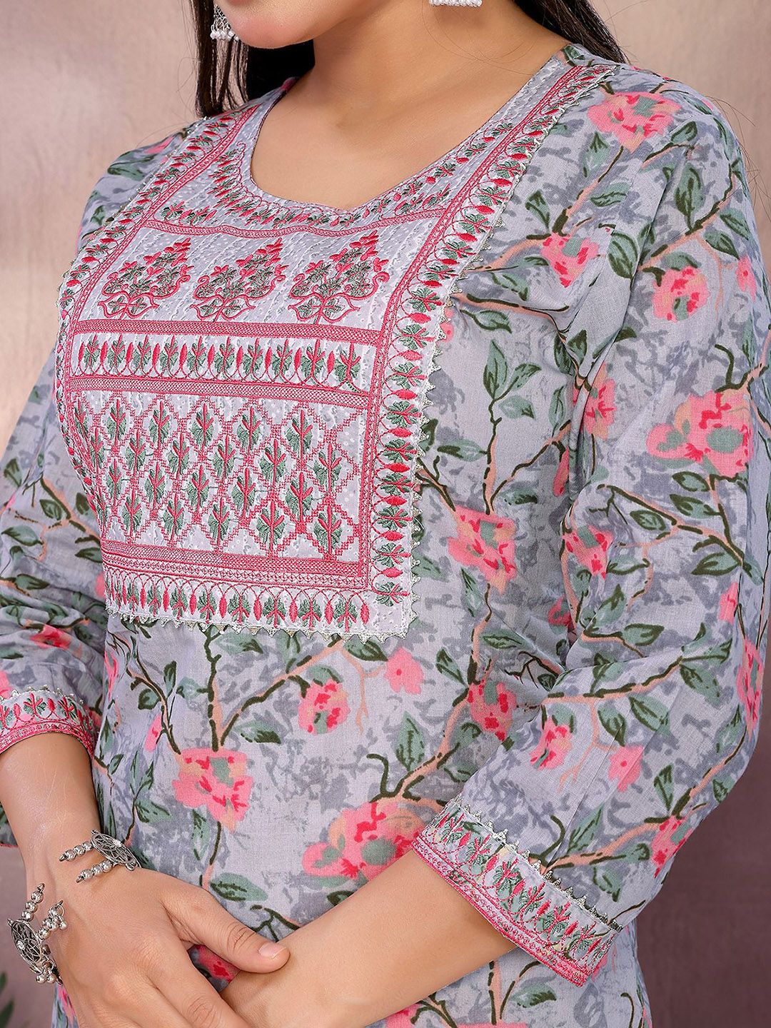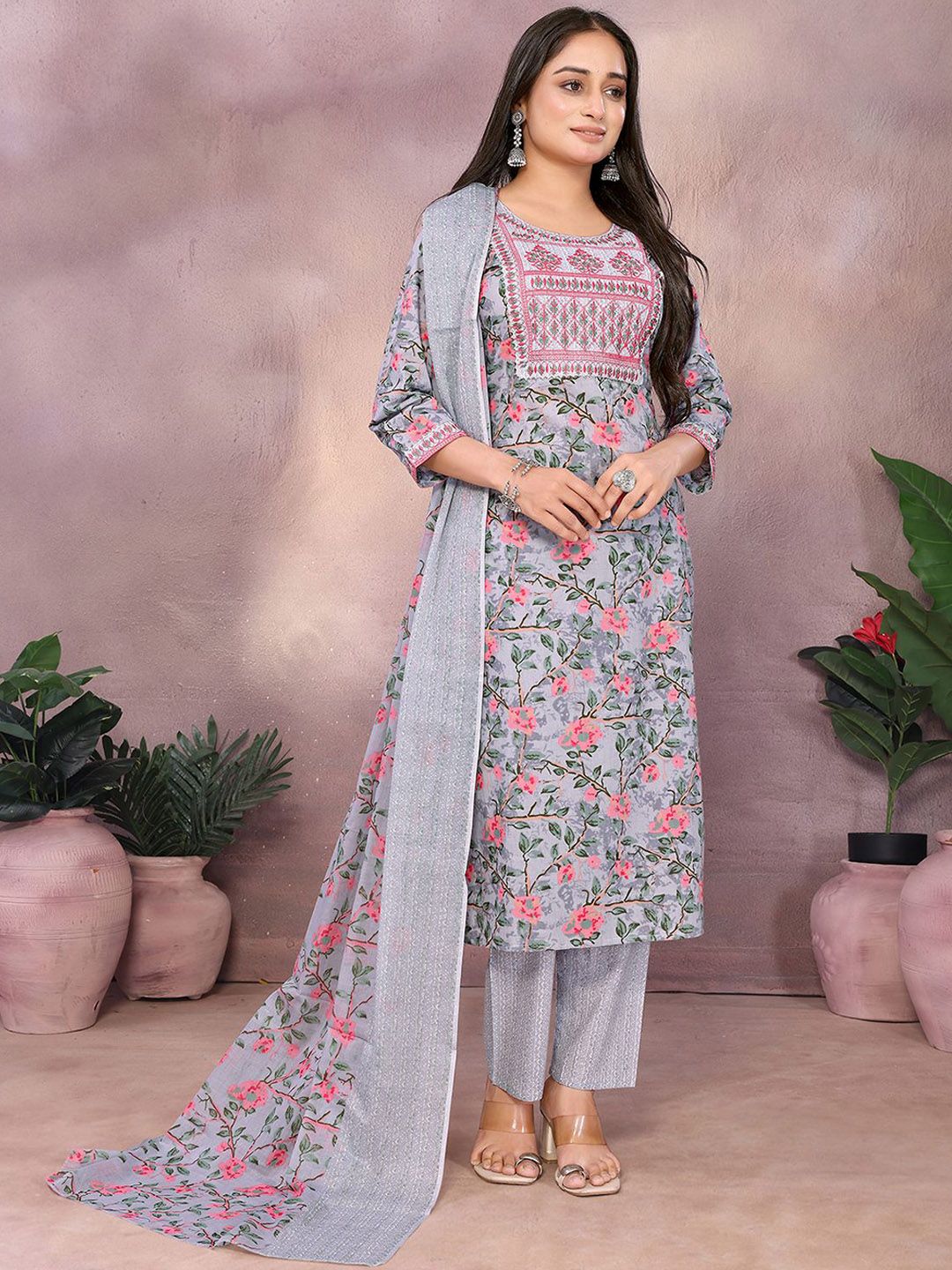 Rangita Women Floral Embroidered Thread Work Kurta with Trousers & With Dupatta