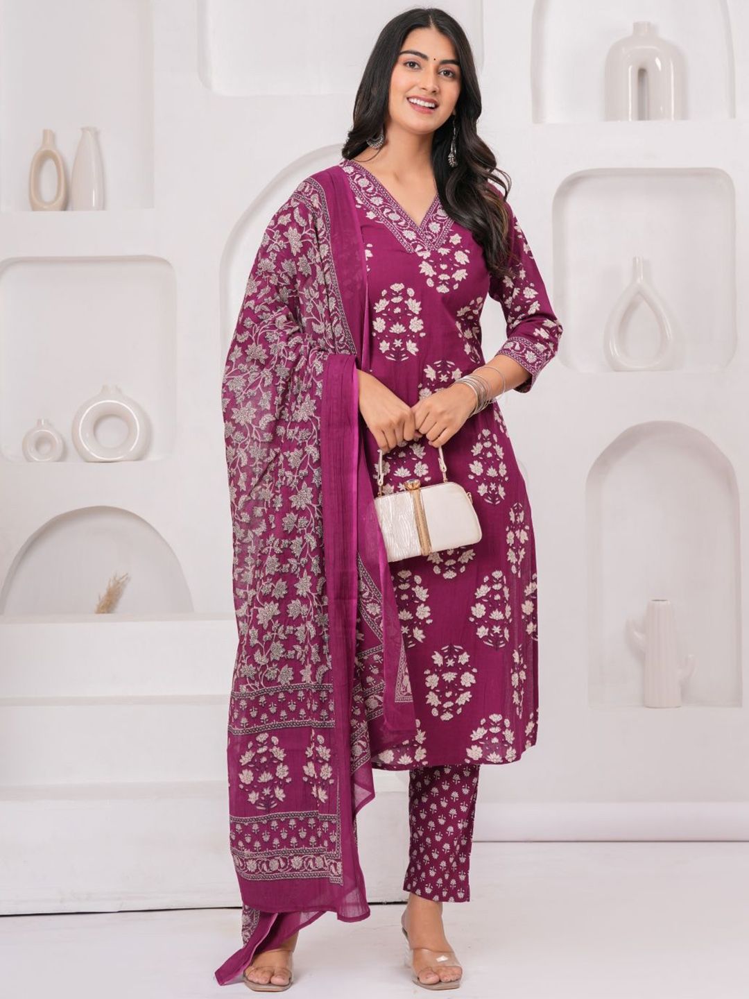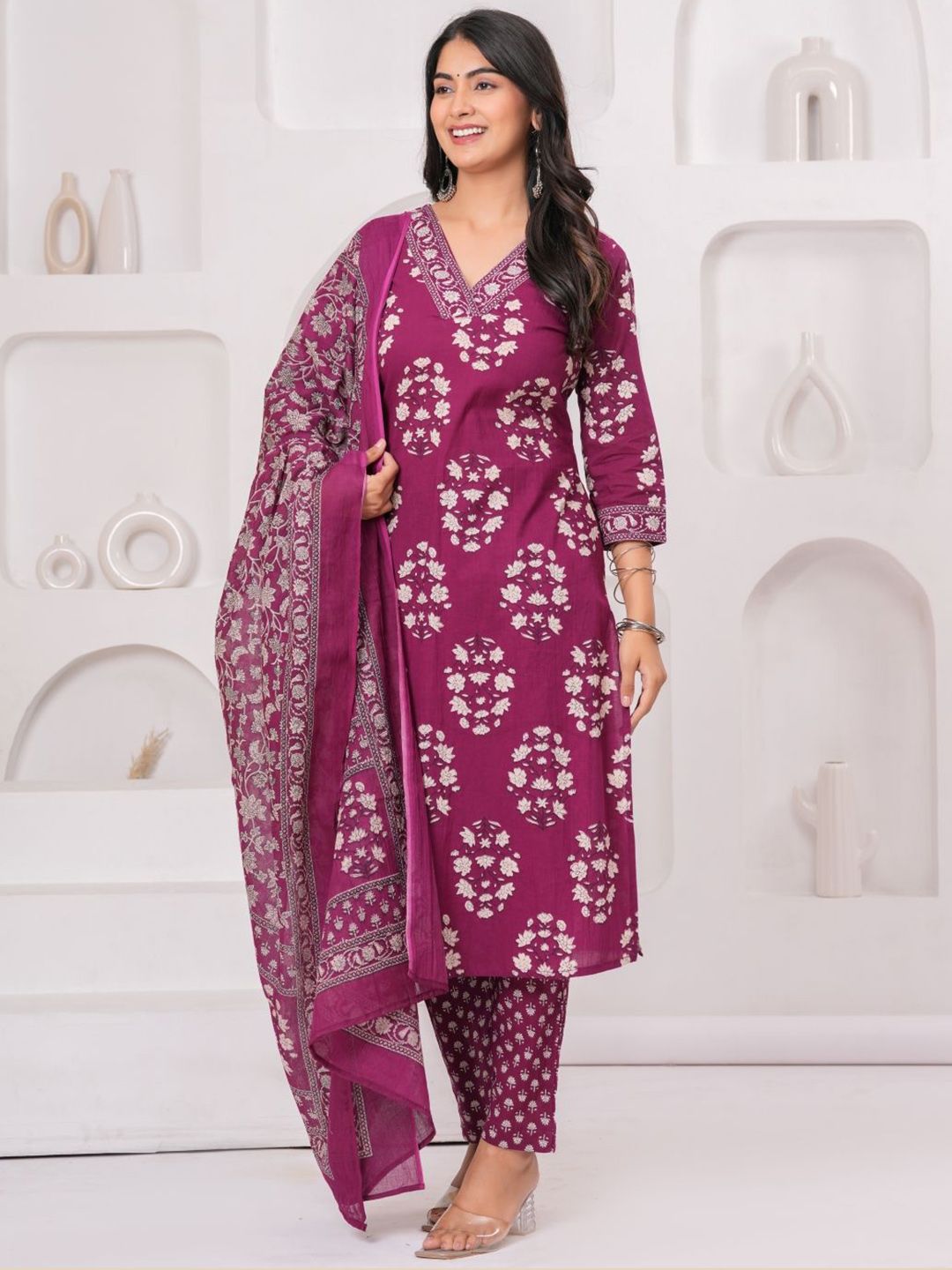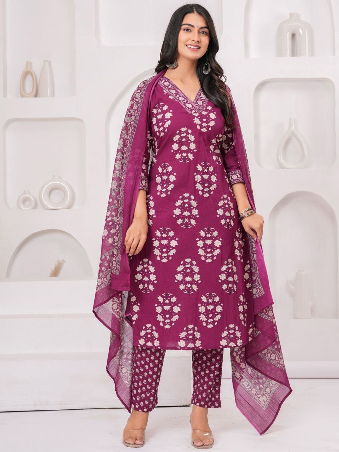 Buy this stylish RANI PRINTS Floral Printed Block Print Pure Cotton Straight Kurta With Trousers & Dupatta at Marincart Nepal. This product offers great quality and value. Perfect for those looking for the latest trends in fashion. Get yours now at unbeatable prices.