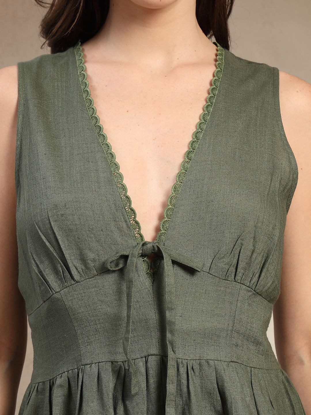 Ranng Women Dark Green Cotton Slub Solid Short Jumpsuit