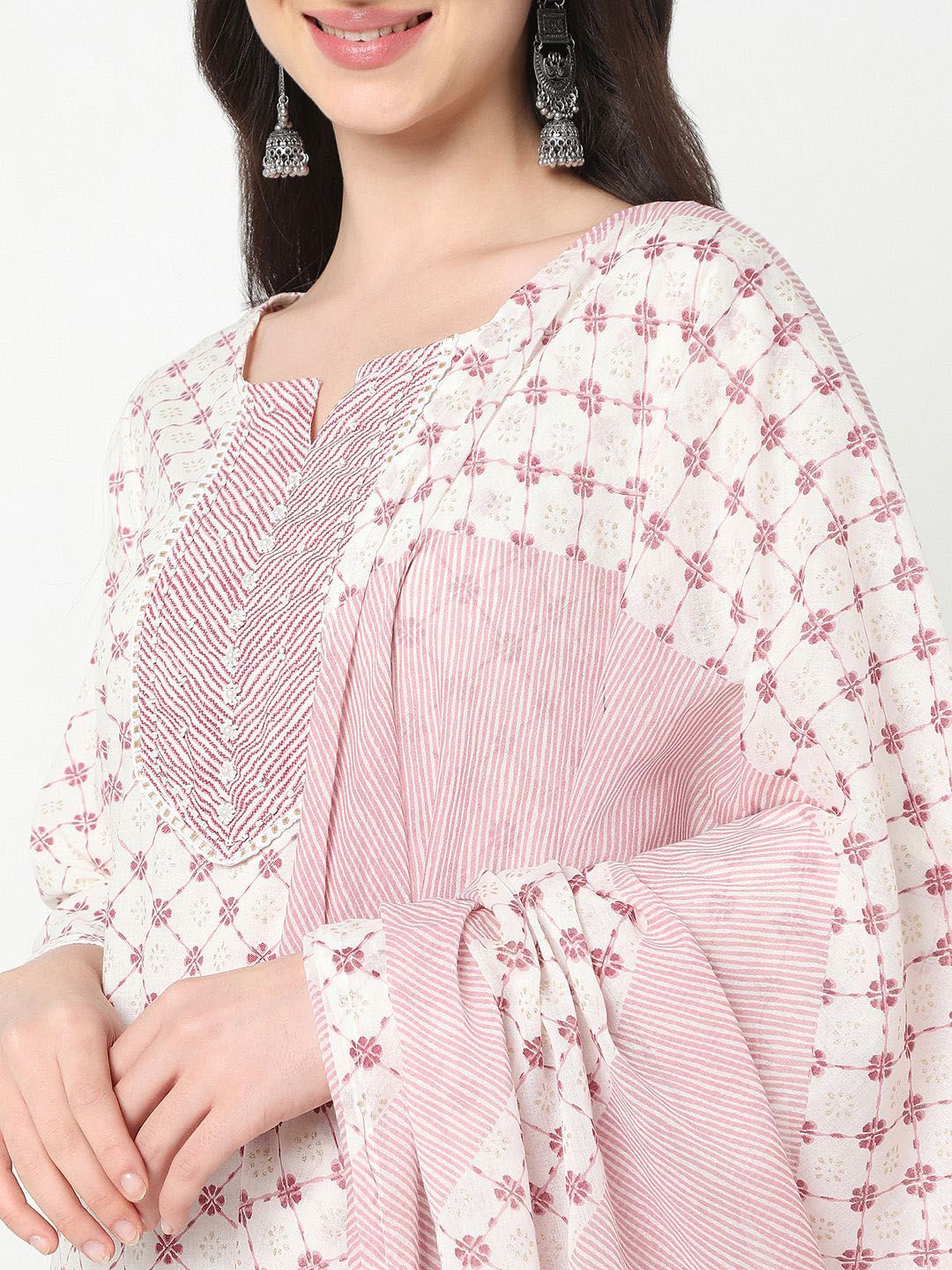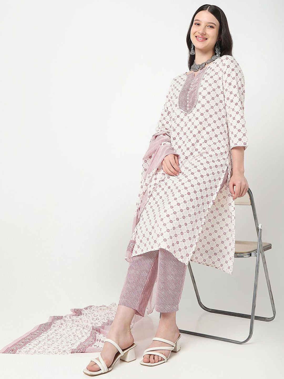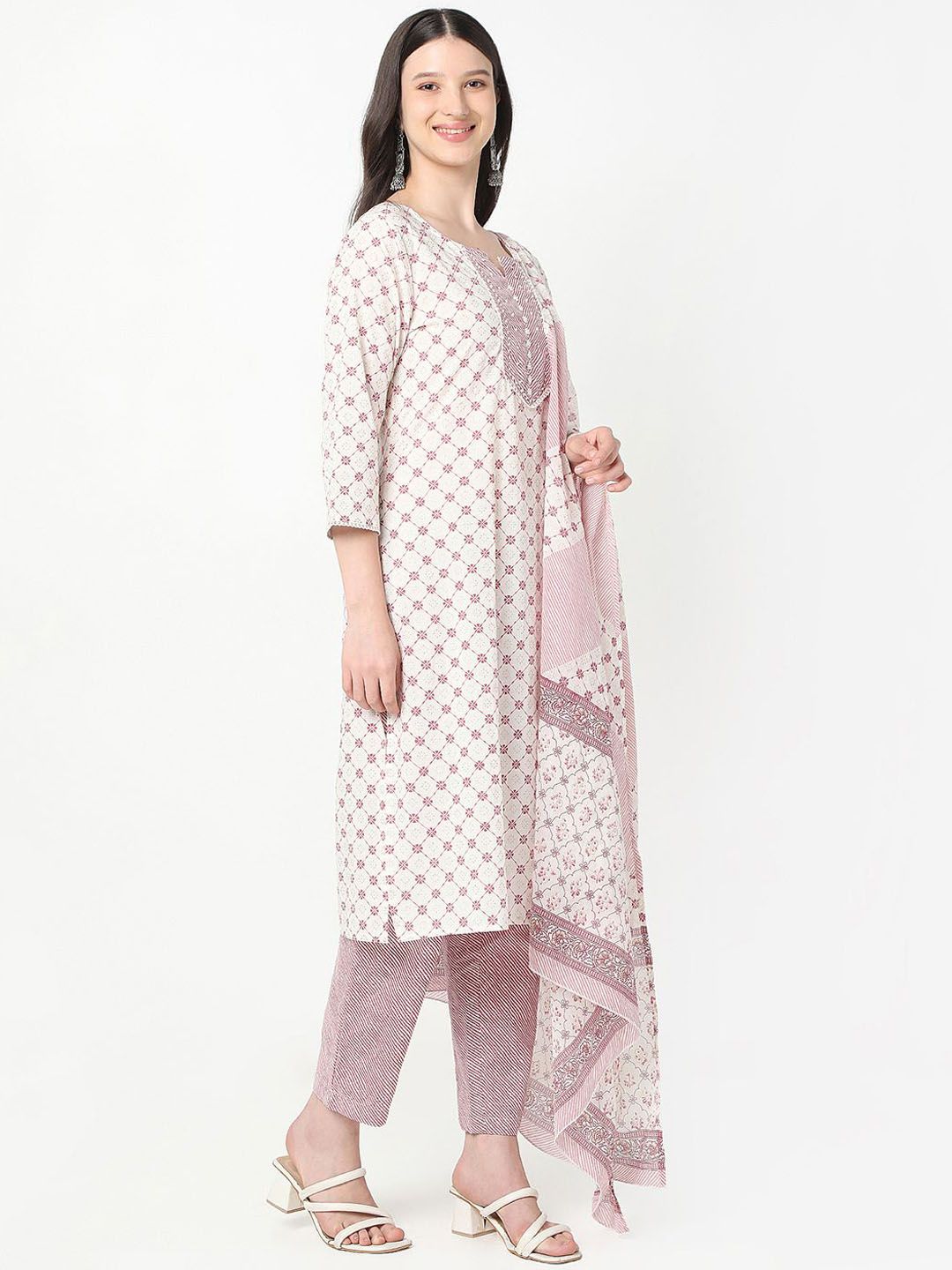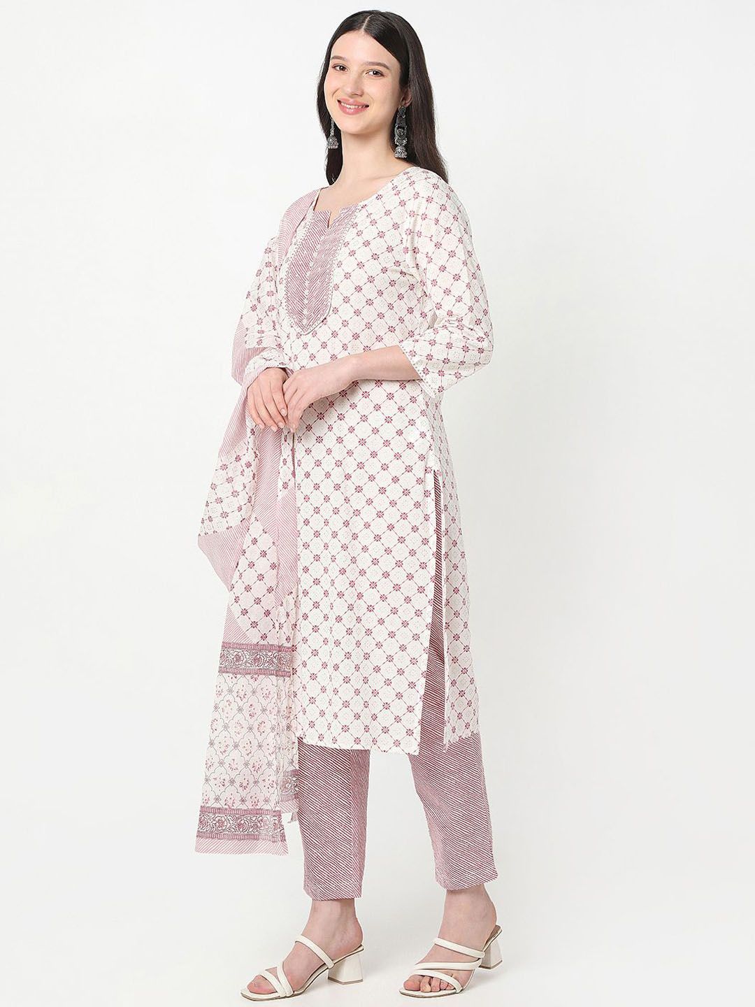 R&B Floral Printed Pure Cotton Kurta With Trousers & Dupatta