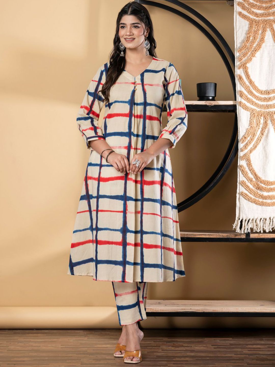 Buy this stylish Readiprint Geometric Printed Pleated V Neck A Line Pure Cotton Kurta With Palazzos at Marincart Nepal. This product offers great quality and value. Perfect for those looking for the latest trends in fashion. Get yours now at unbeatable prices.