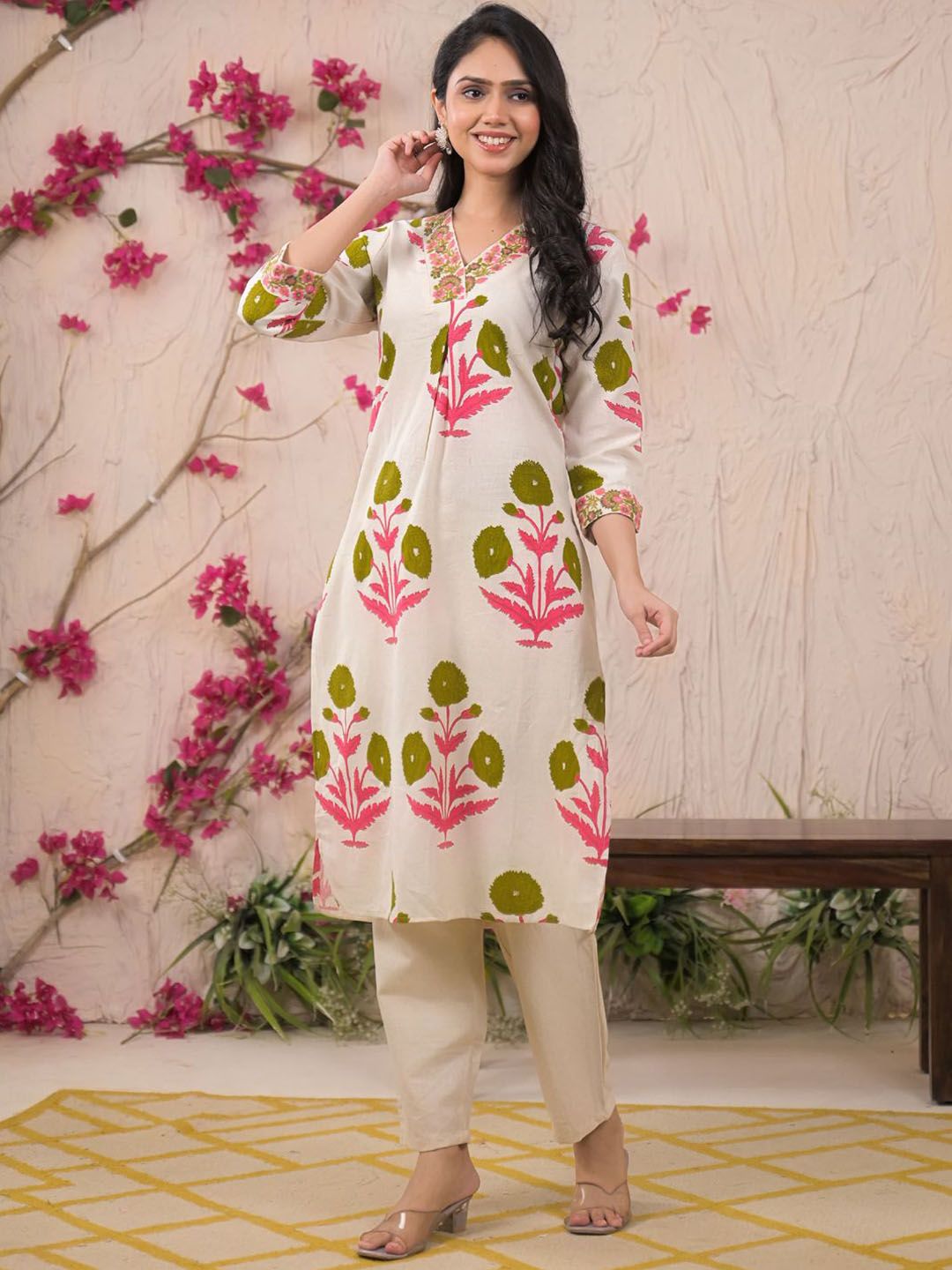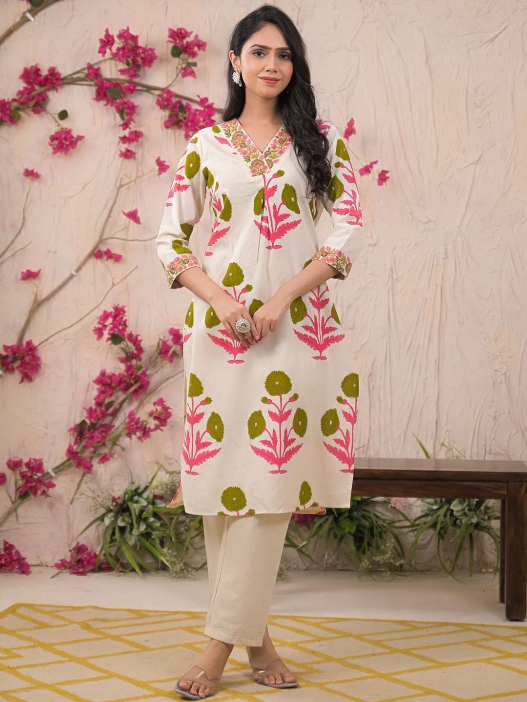 Readiprint Women Floral Printed Regular Sequinned Kurta with Palazzos