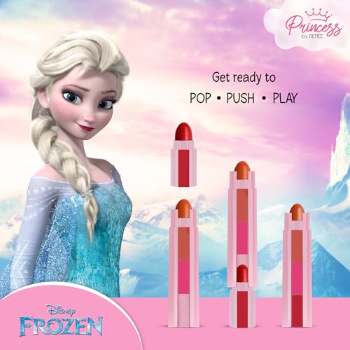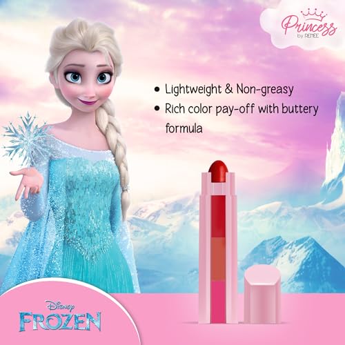 RENEE Disney Frozen Princess By Candy 3-In-1 Tinted Matte Lipstick Elsa For Pre-Teen Girls - 3 Versatile Shades In One Stick With No Parabens - Dermatologically Tested, Peta Certified 4.5G