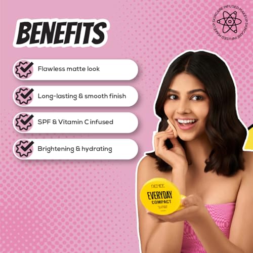 High coverage formula with matte finish: Provides flawless, seamless coverage for an even-toned, matte look every day. Ultralight & silky-smooth formula: Ensures a weightless feel on the skin, making it comfortable for all-day wear. Enriched with Vitamin C & Hyaluronic Acid: Brightens the skin and provides hydration, keeping it healthy and radiant. Protects the skin with SPF 30: Shields against harmful UVA and UVB rays, offering sun protection in a single swipe. Regulates excess oil and shine: Long-lasting powder that controls oil and shine, perfect for quick touch-ups. Available in multiple shades: Specially formulated to match a wide range of Indian skin tones, offering a perfect match for everyone.