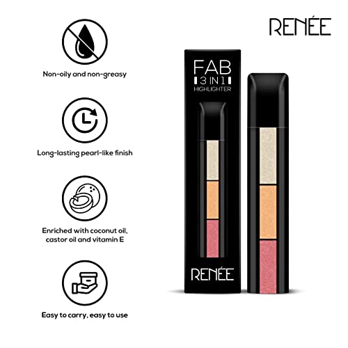 Three Shades in One Stick: Golden, peach, and silver tones blend effortlessly to suit all skin tones and enhance your best features with a radiant glow. Nourishing Ingredients: Infused with Vitamin E, coconut oil, and castor oil, it hydrates, protects, and enhances your skin’s natural texture. Non-Sticky & Lightweight: This highlighter glides smoothly, providing a weightless finish that doesn’t interfere with your base makeup. Long-Lasting Radiance: Achieve a pearl-like shimmer that stays vibrant and crease-free throughout the day, perfect for any occasion. Compact & Travel-Friendly: Its sleek and portable design makes it easy to carry, ensuring you can highlight on the go without any hassle. Multi-Use Highlighter: Ideal for cheeks, brow bones, eyes, and collarbones, this stick offers versatile applications to match your unique style.