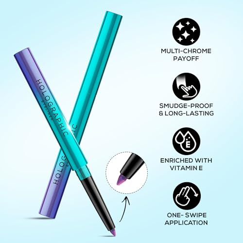 Adds intense holographic shine: Unleash your inner sparkle with RENEE Holographic Eyeliner that delivers an intense holographic shine. Smudgeproof & long-lasting: Designed to be smudgeproof and long-lasting, it ensures that your eye makeup stays flawless and vibrant throughout the day and night. Its unique formula resists smudging and fading, giving you a bold, eye-catching look with minimal touch-ups required. Enriched with Vitamin E: This innovative eyeliner not only delivers a bold, futuristic look with its iridescent finish but also nourishes and protects the delicate skin around the eyes. The addition of vitamin E provides antioxidant benefits, helping to keep the skin moisturized and preventing free radical damage. Ideal for creating eye-catching, statement makeup looks, this holographic eyeliner combines beauty and skincare for a radiant, healthy glow. Glides smoothly giving one-swipe application: With its smooth application and long-lasting formula, this eyeliner creates a dazzling, multidimensional effect that catches the light and turns heads.