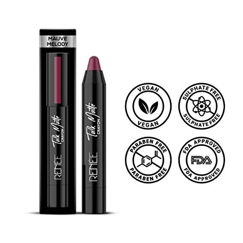 RENEE Talk Matte Crayon Lipstick - Mauve Melody, 4.5gm | Hydrating and Long-Lasting Matte Lip Color | Enriched with Vitamin E, Jojoba Oil & Cocoa Butter