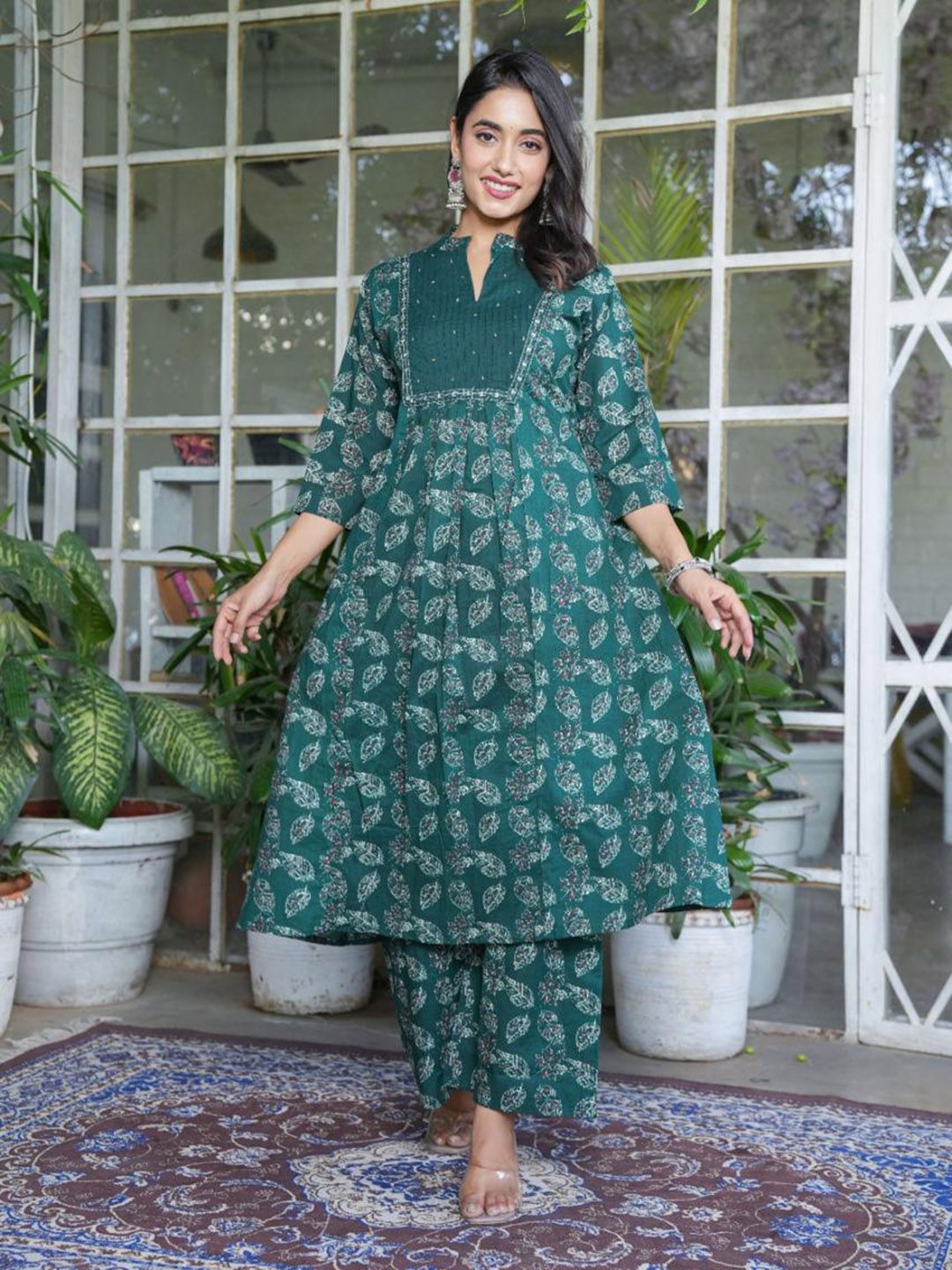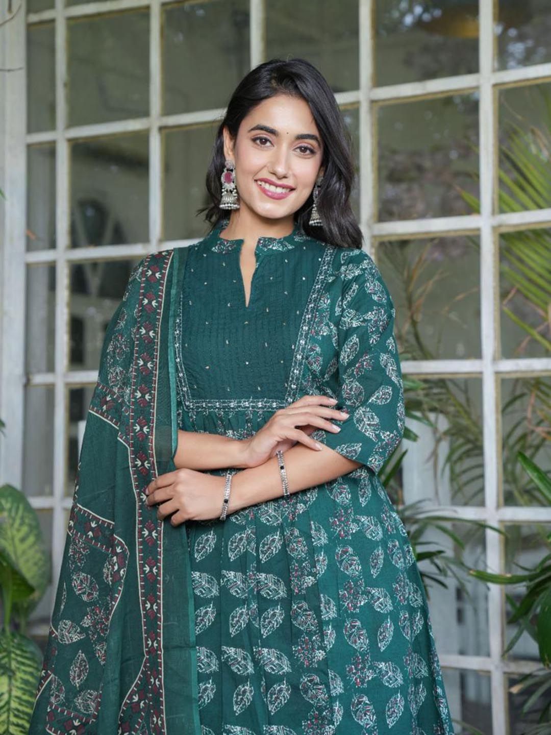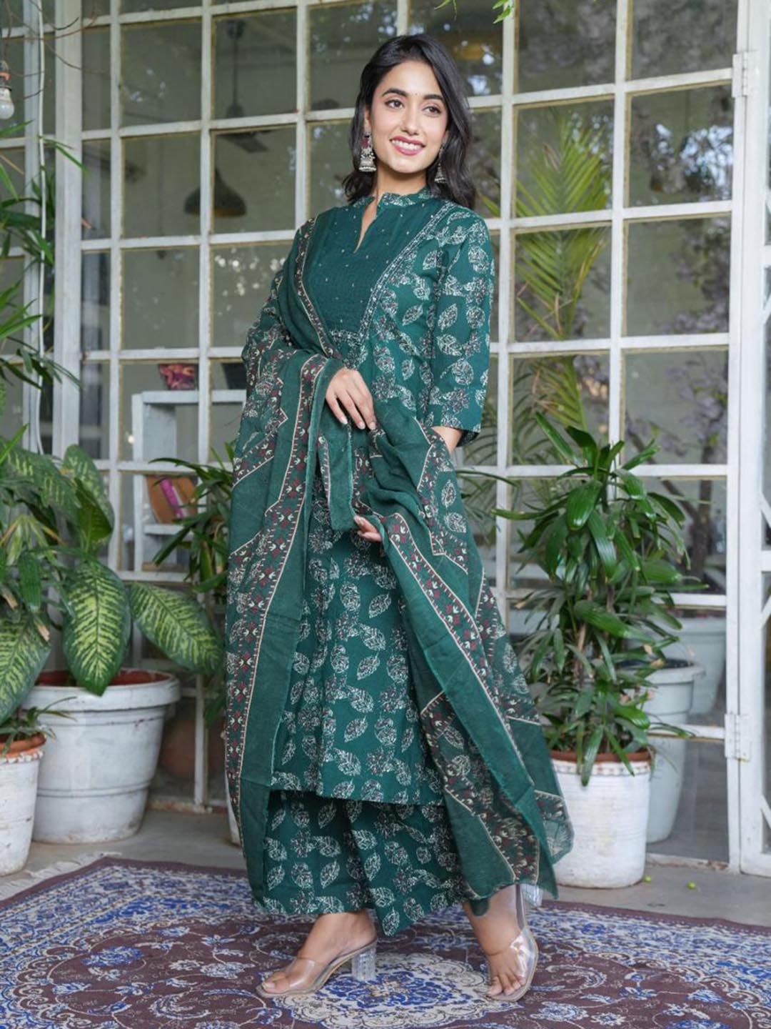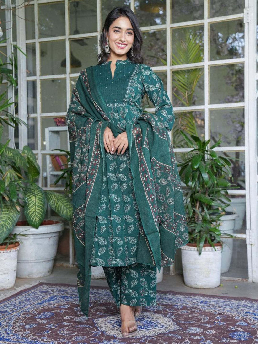 RESHAA Women Floral Printed Cotton A-Line Kurta with Pyjamas & Dupatta