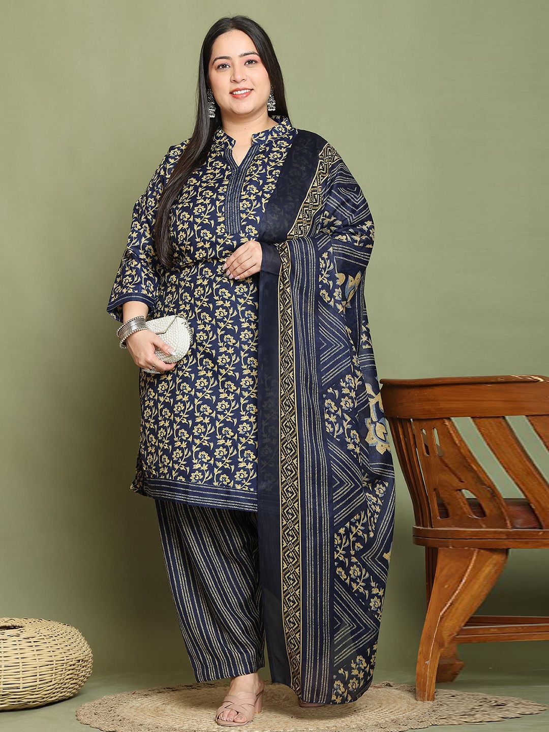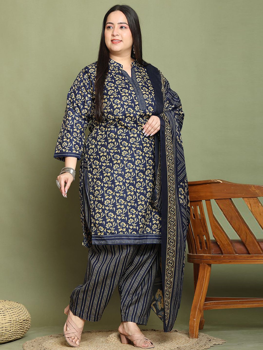 Roly Poly Women Plus Size Floral Printed Regular Kurta & Salwar With Dupatta