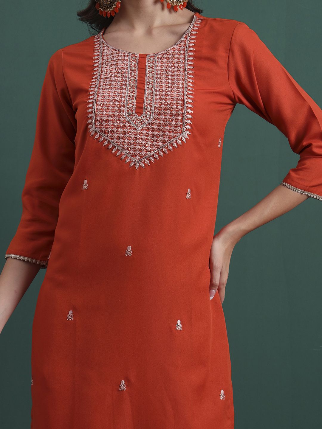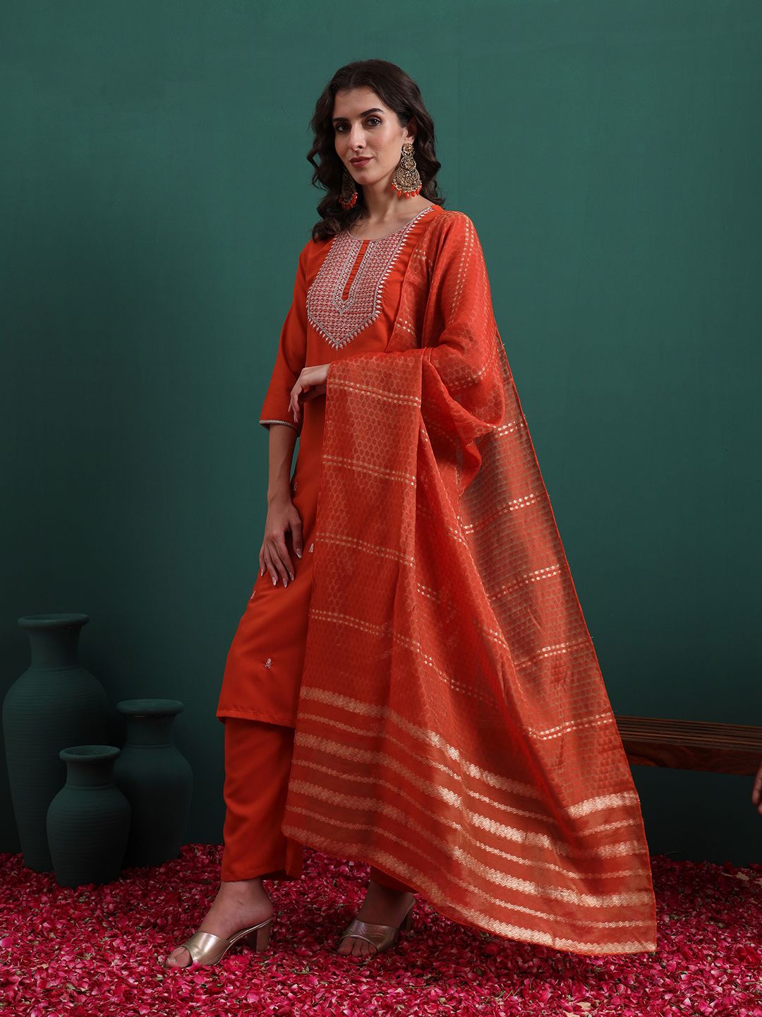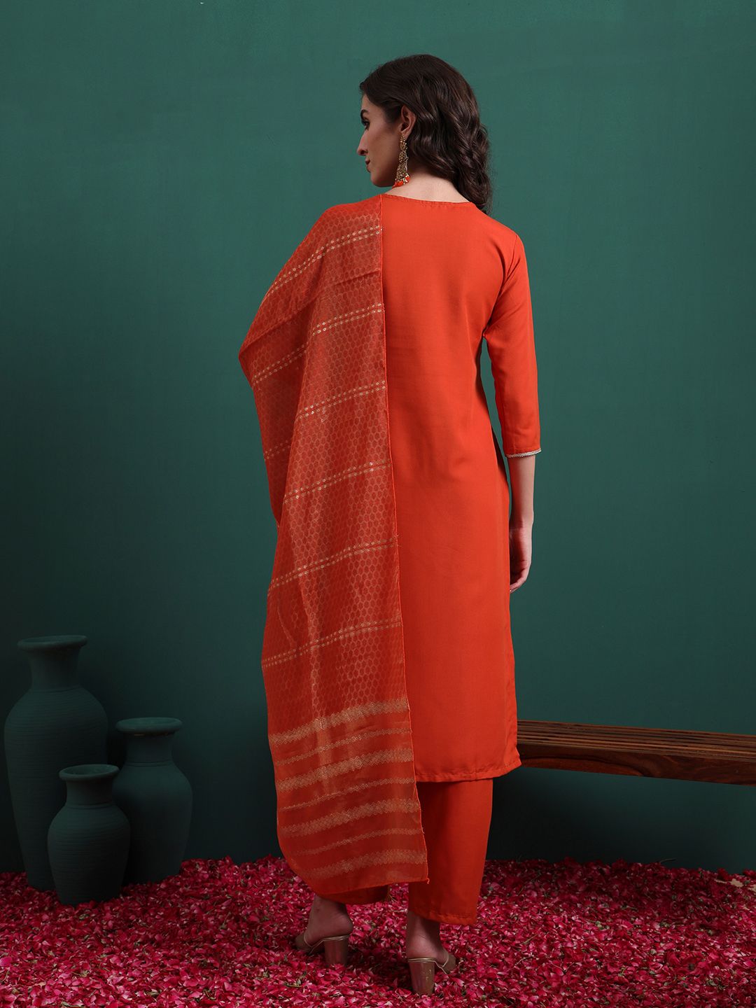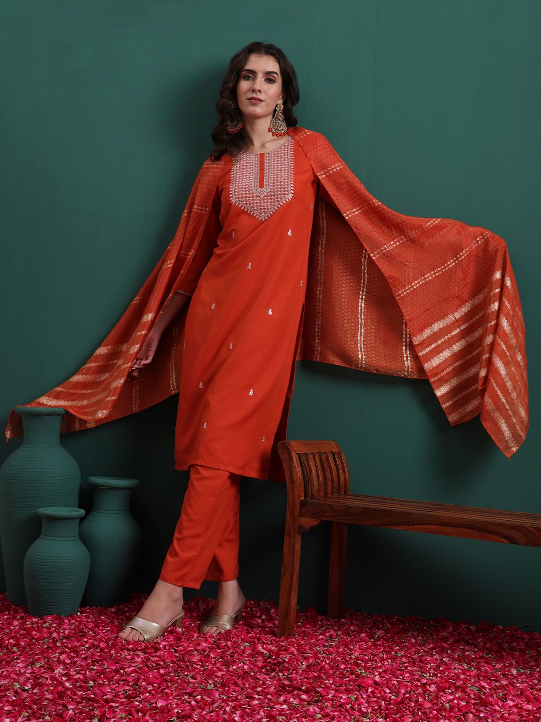 Royal Export Ethnic Motifs Embroidered Sequinned Straight Kurta With Trousers & Dupatta