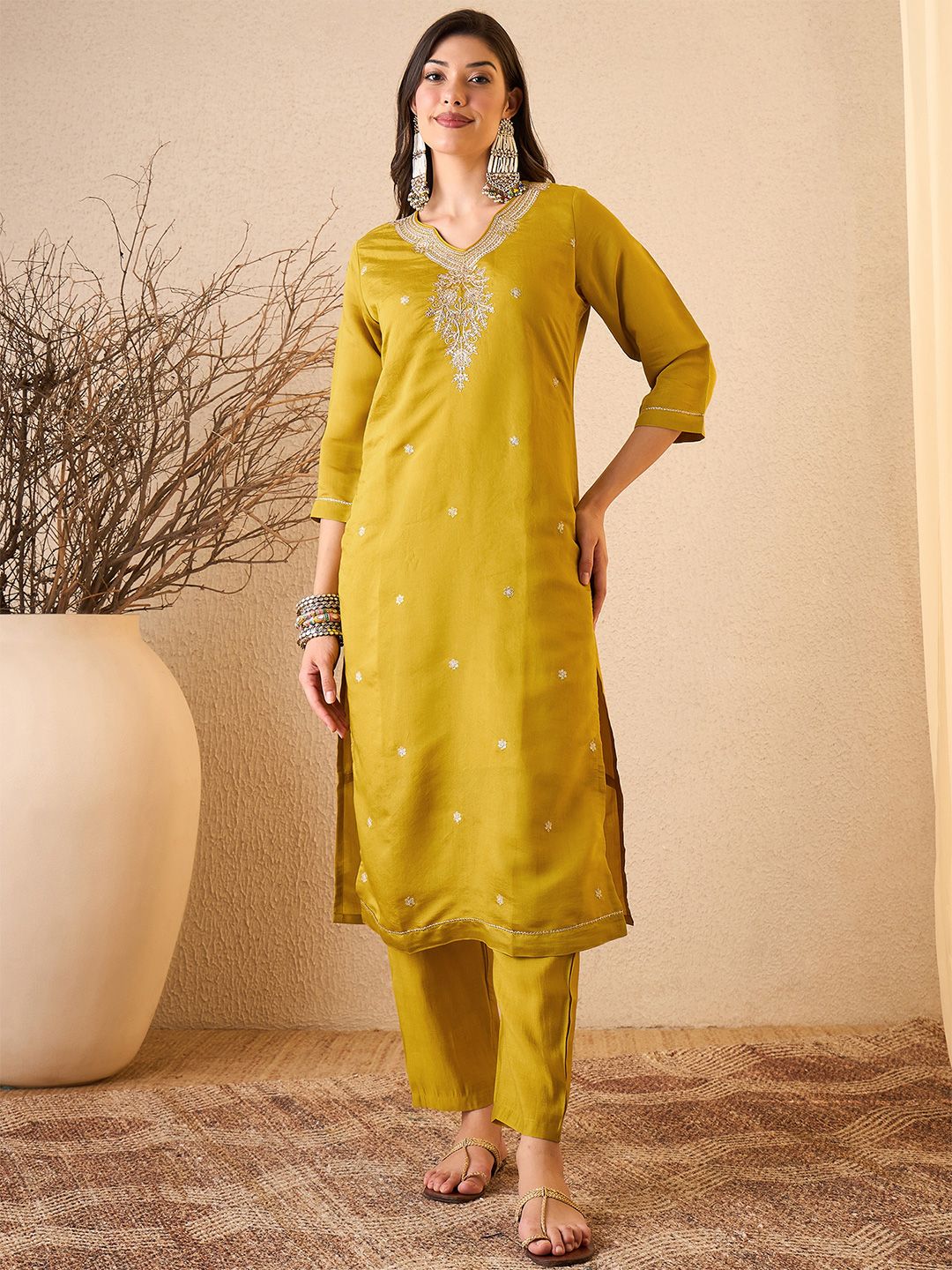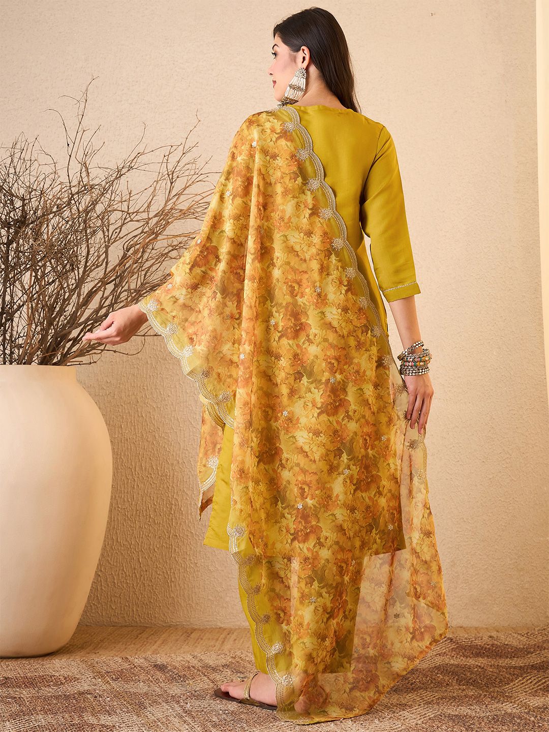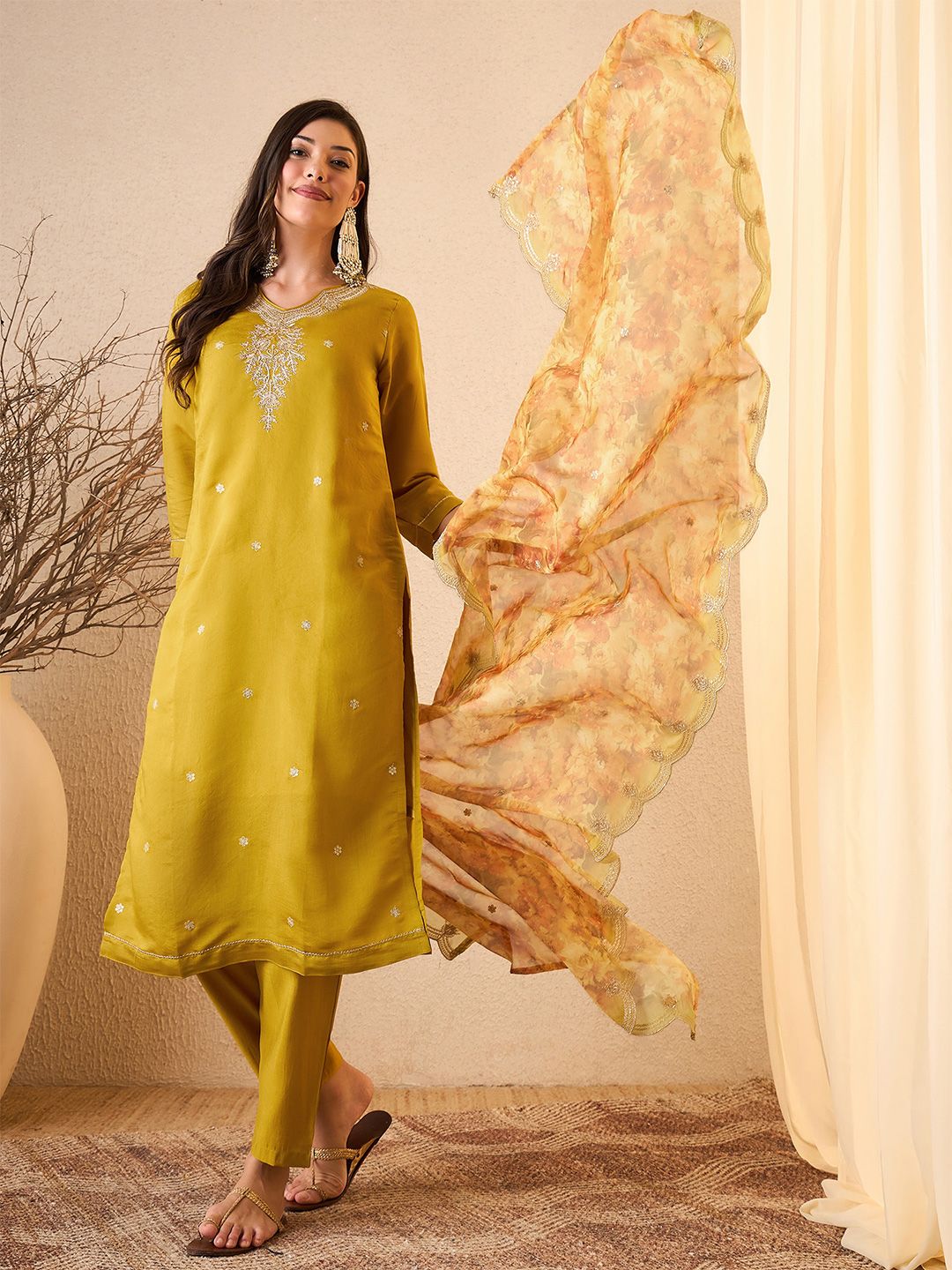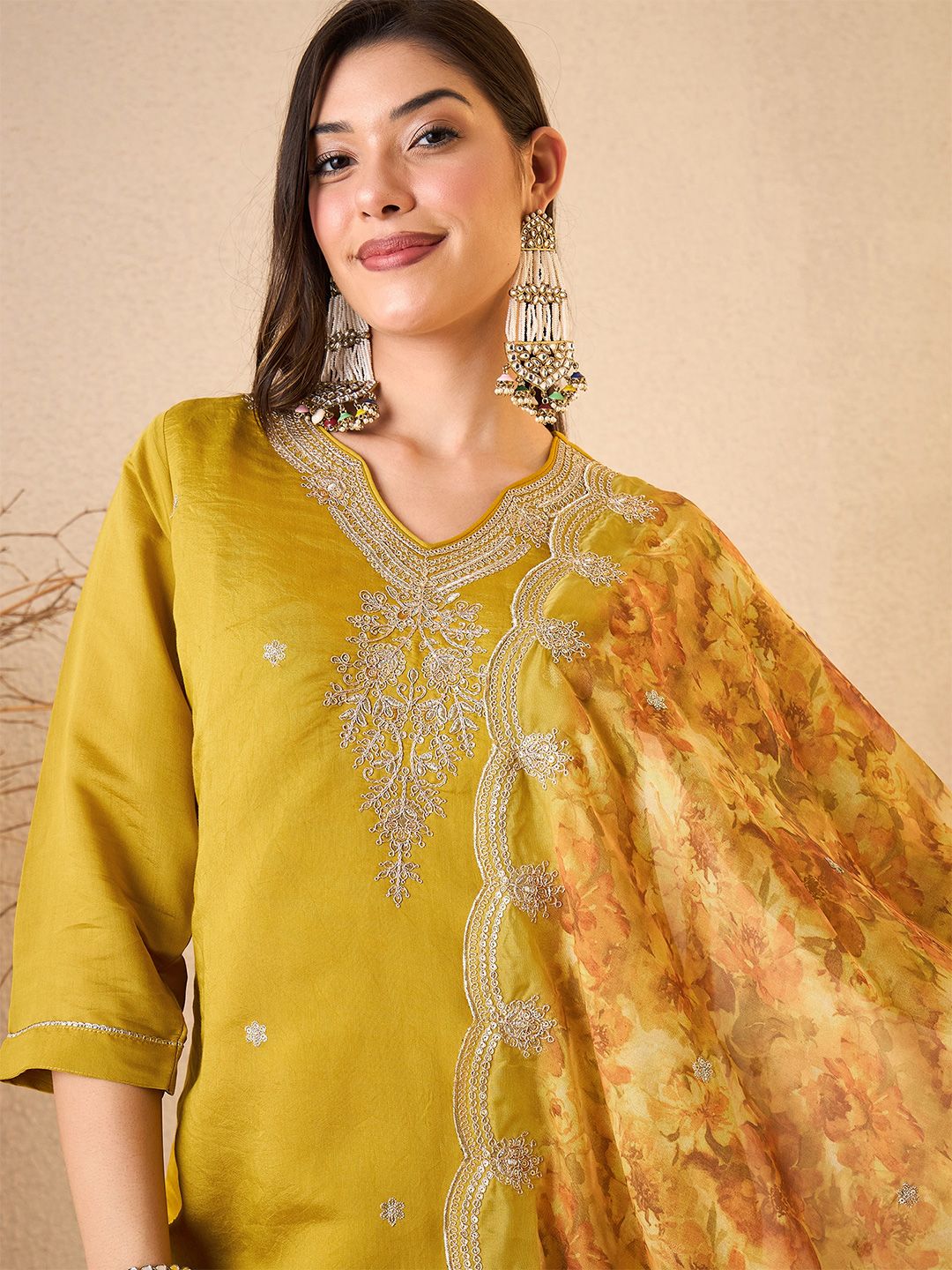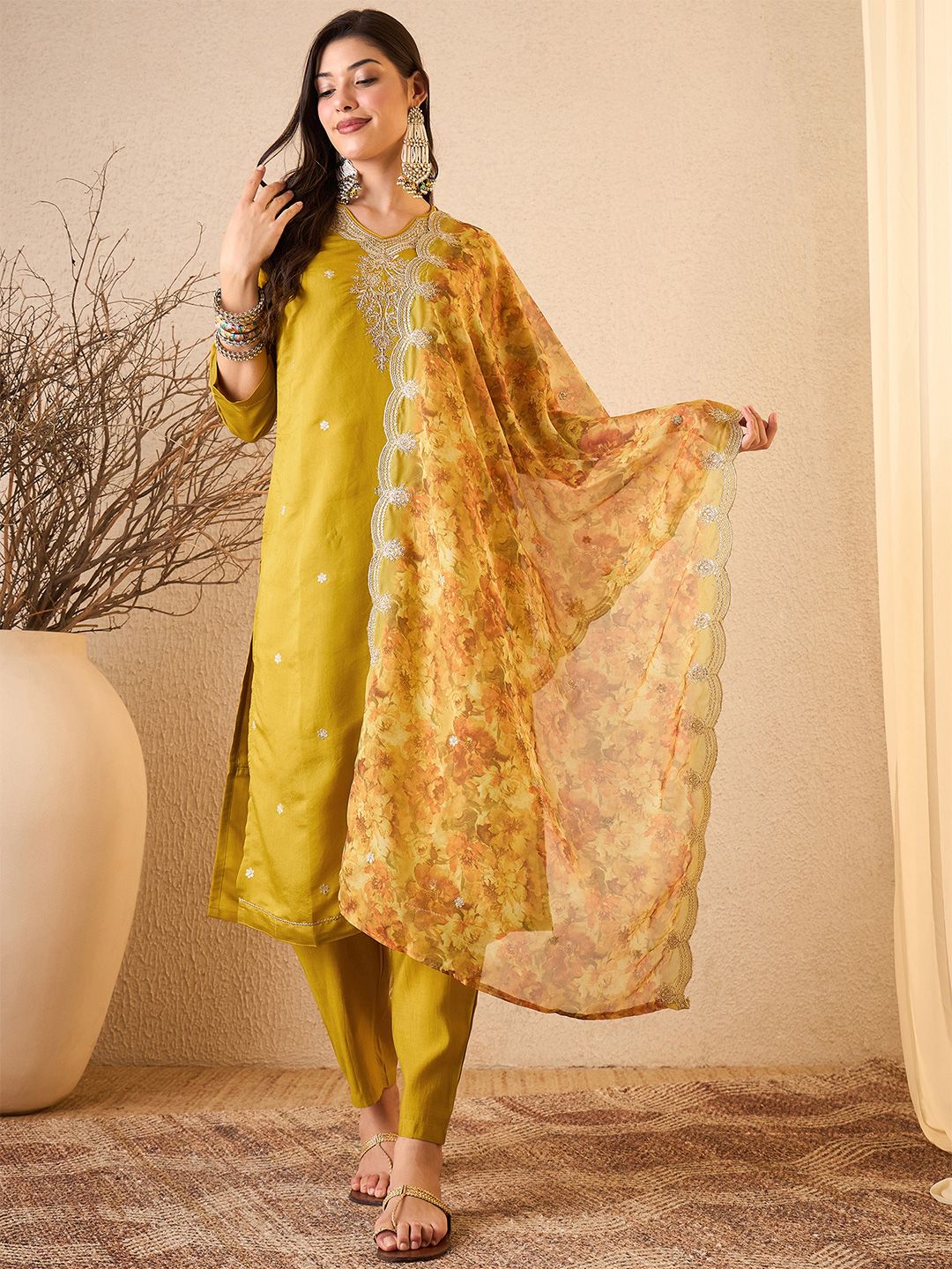 Royal Export Women Floral Embroidered Straight Kurta with Trousers & Dupatta