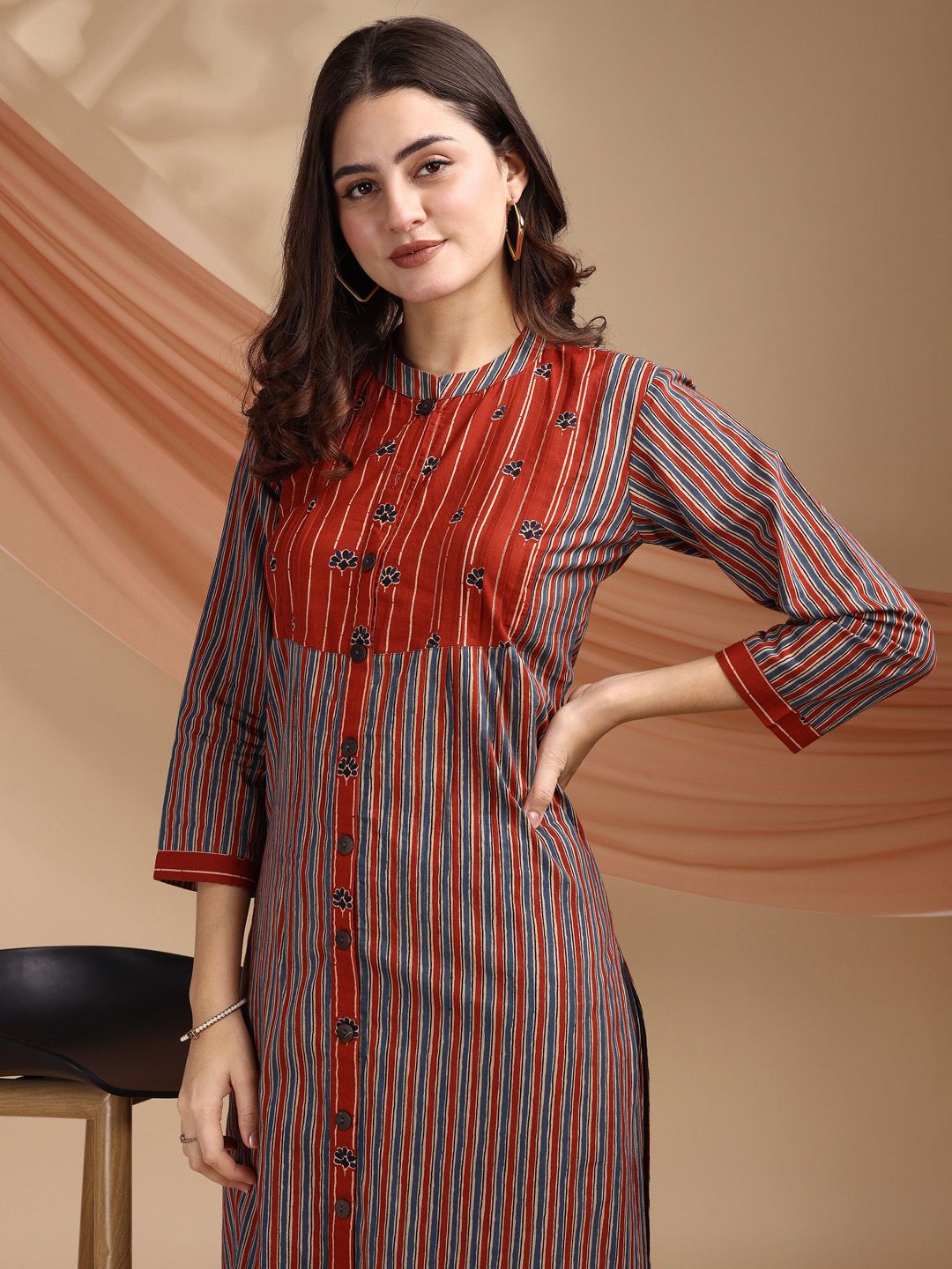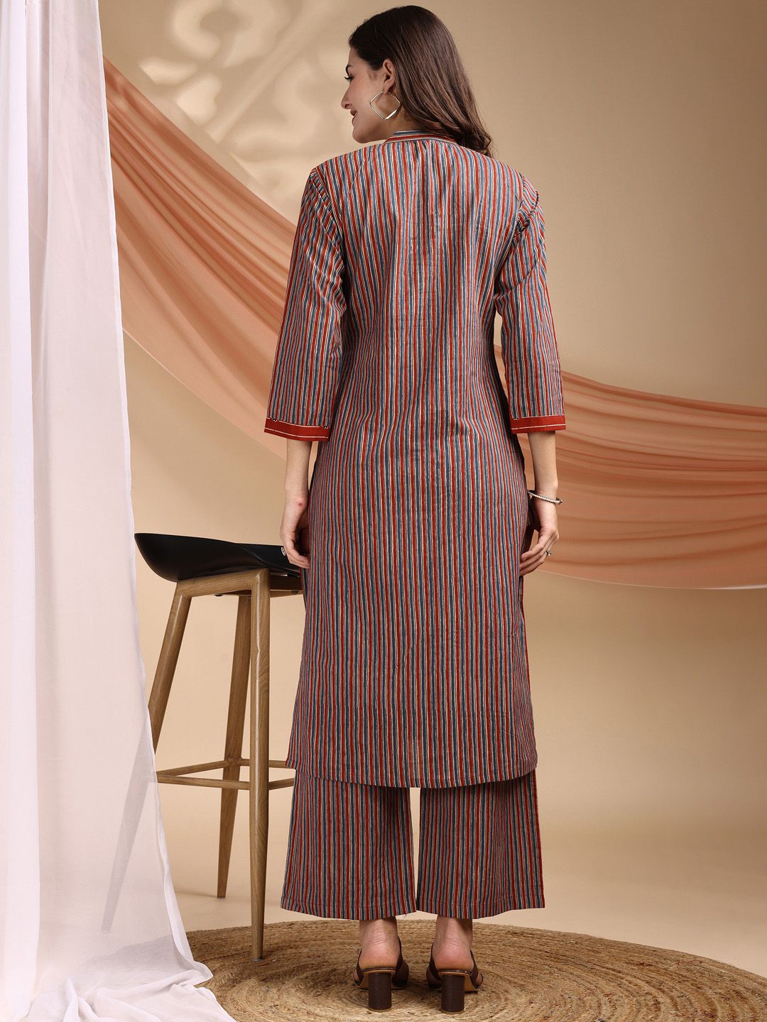 Saanjh Geometric Printed Mandarin Collar Pure Cotton Kurta With Trousers