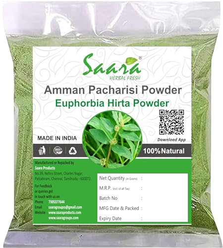 Saara HERBAL FRESH Amman Pacharisi Powder 400g | Euphorbia Hirta Powder | Dudhi Powder, Used for warts pimples and wounds (Pack of 4 X 100g)