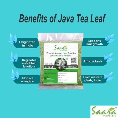Saara HERBAL FRESH Poonai Meesai Powder, 400g, Cat Whiskers Plant, Orthosiphon Stamineus, Java Tea Leaf, Seeraga Tulsi Powder, (pack of 4 x 100g)