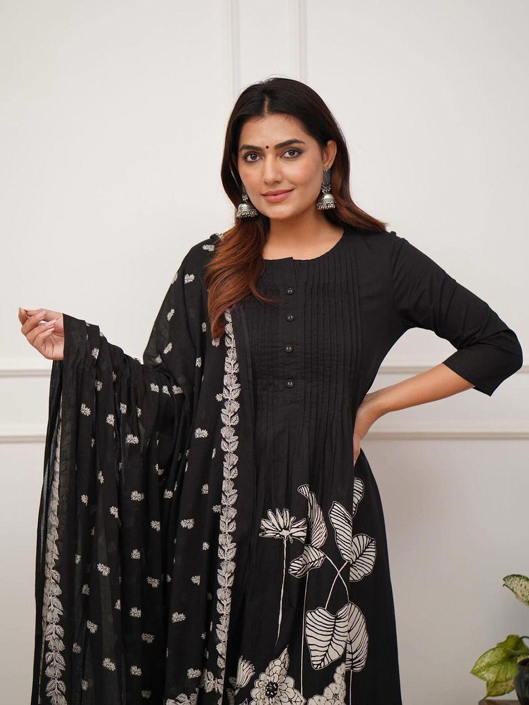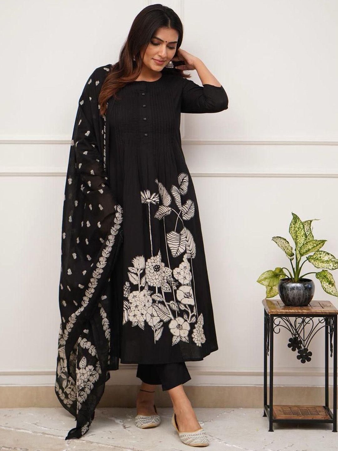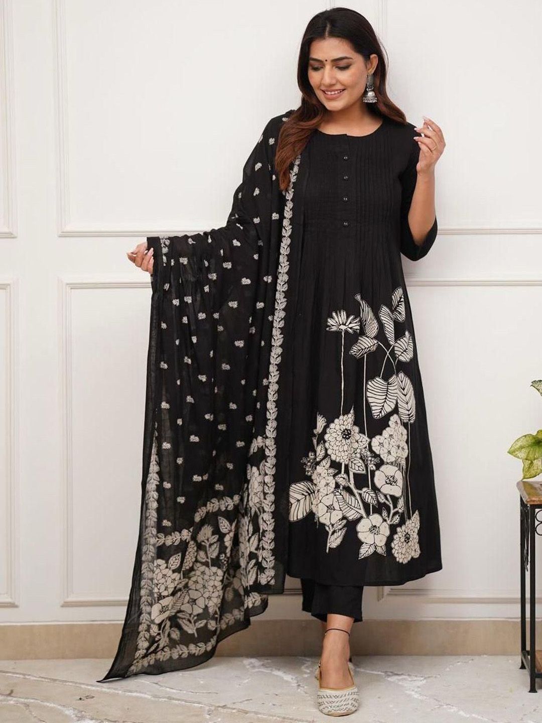 Samhitas Women Floral Embroidered Kurta with Trousers & Dupatta