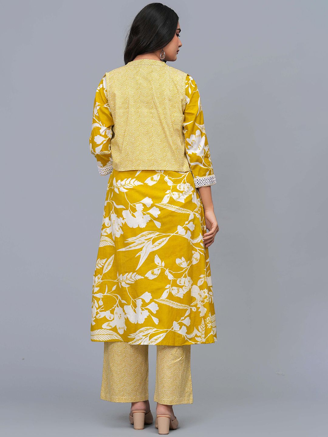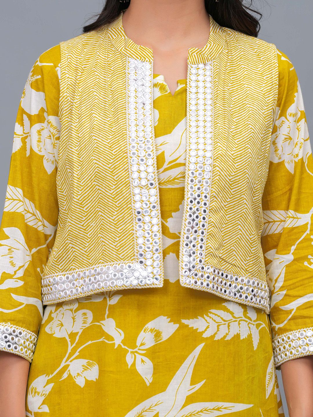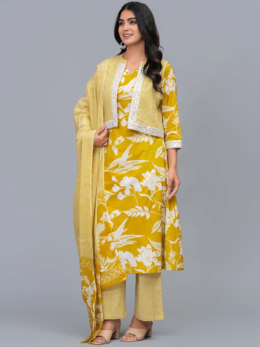 Sanganeri Kurti Women Floral Printed A-Line Kurta with Palazzos & Dupatta & Jacket