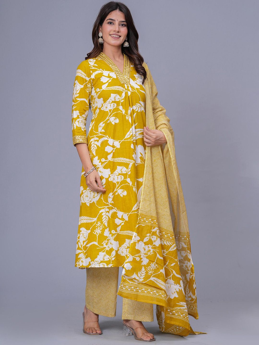 Buy this stylish Sanganeri Kurti Women Floral Printed A-Line Kurta with Palazzos & Dupatta at Marincart Nepal. This product offers great quality and value. Perfect for those looking for the latest trends in fashion. Get yours now at unbeatable prices.