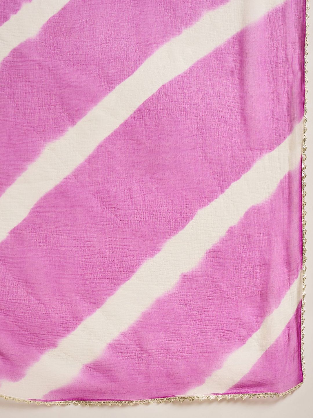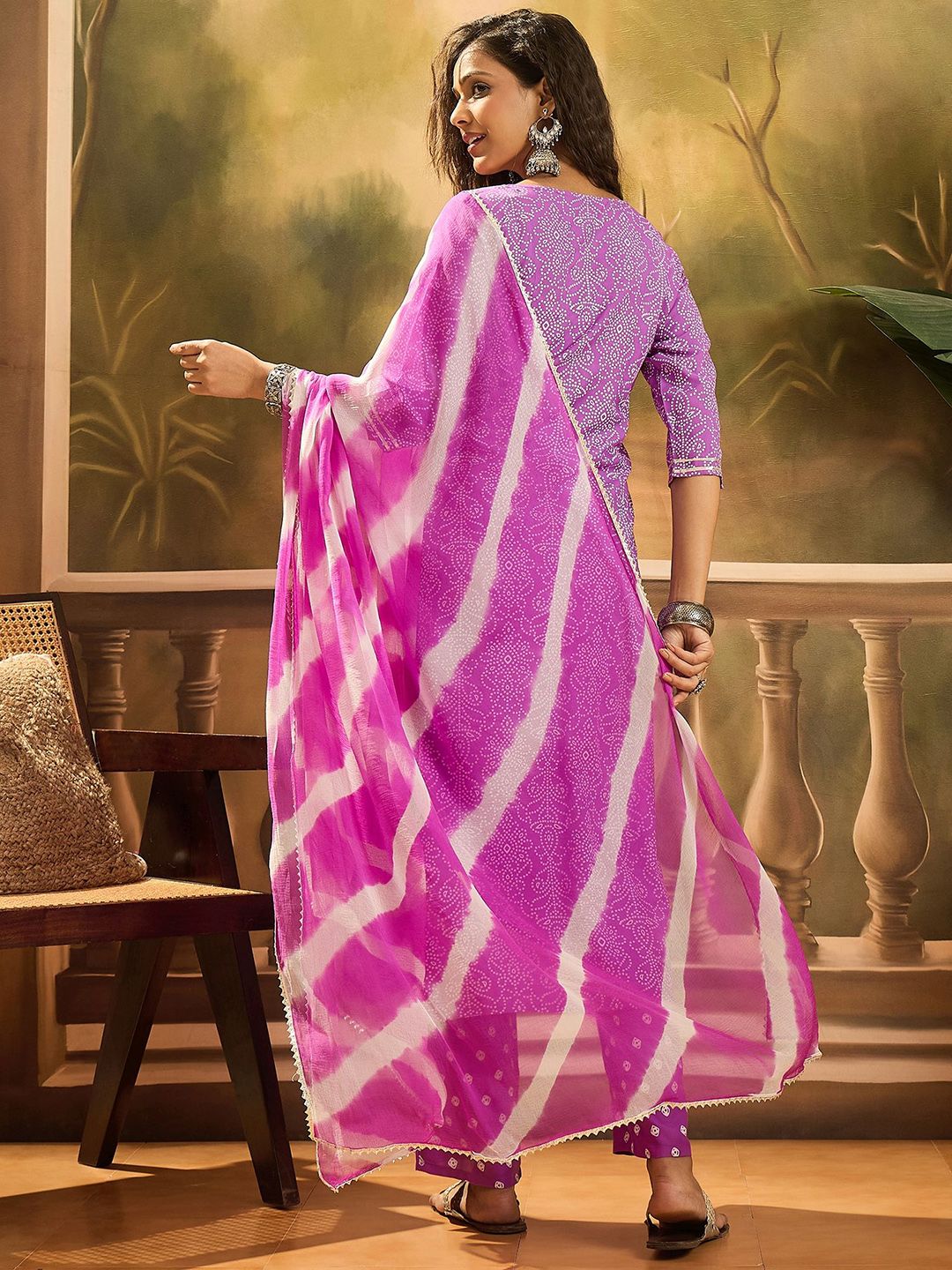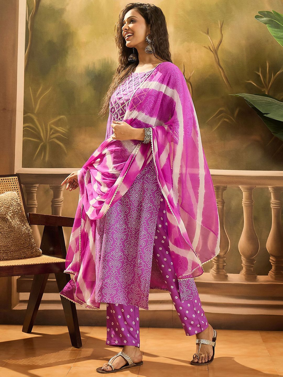 Sangria Bandhej Women Bandhani Print Straight Kurta with Trouser & Dupatta
