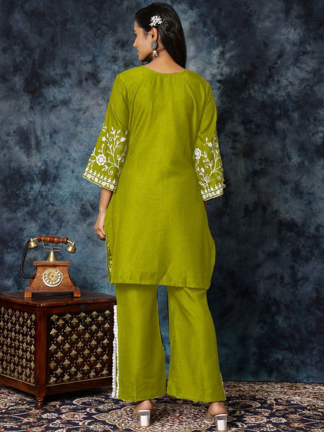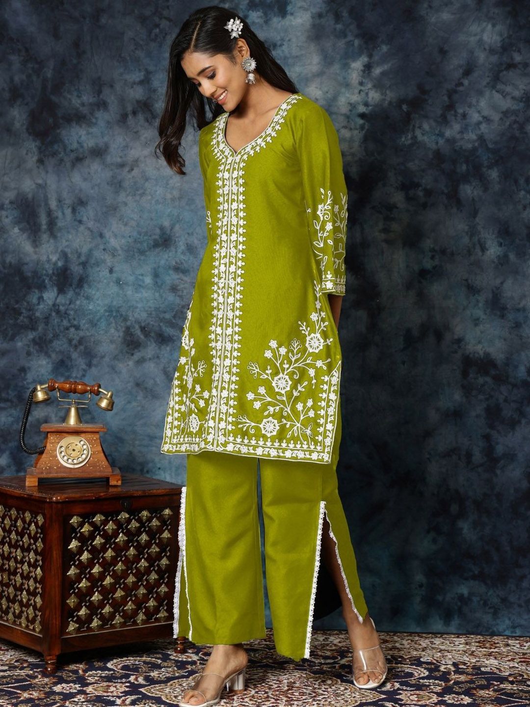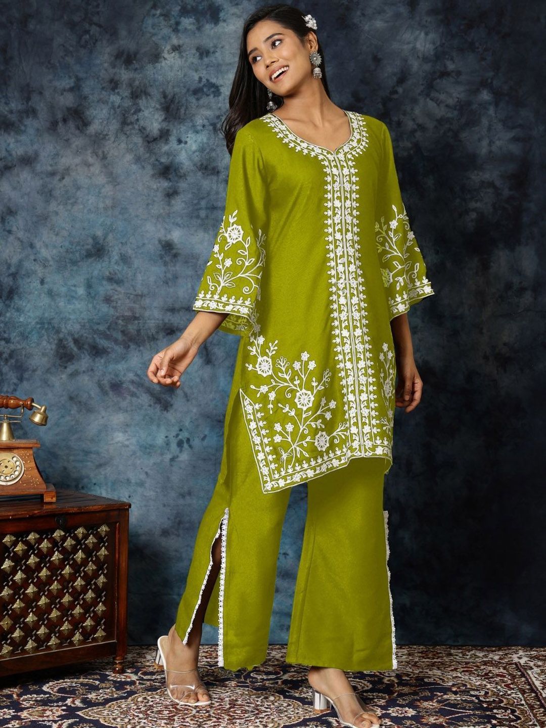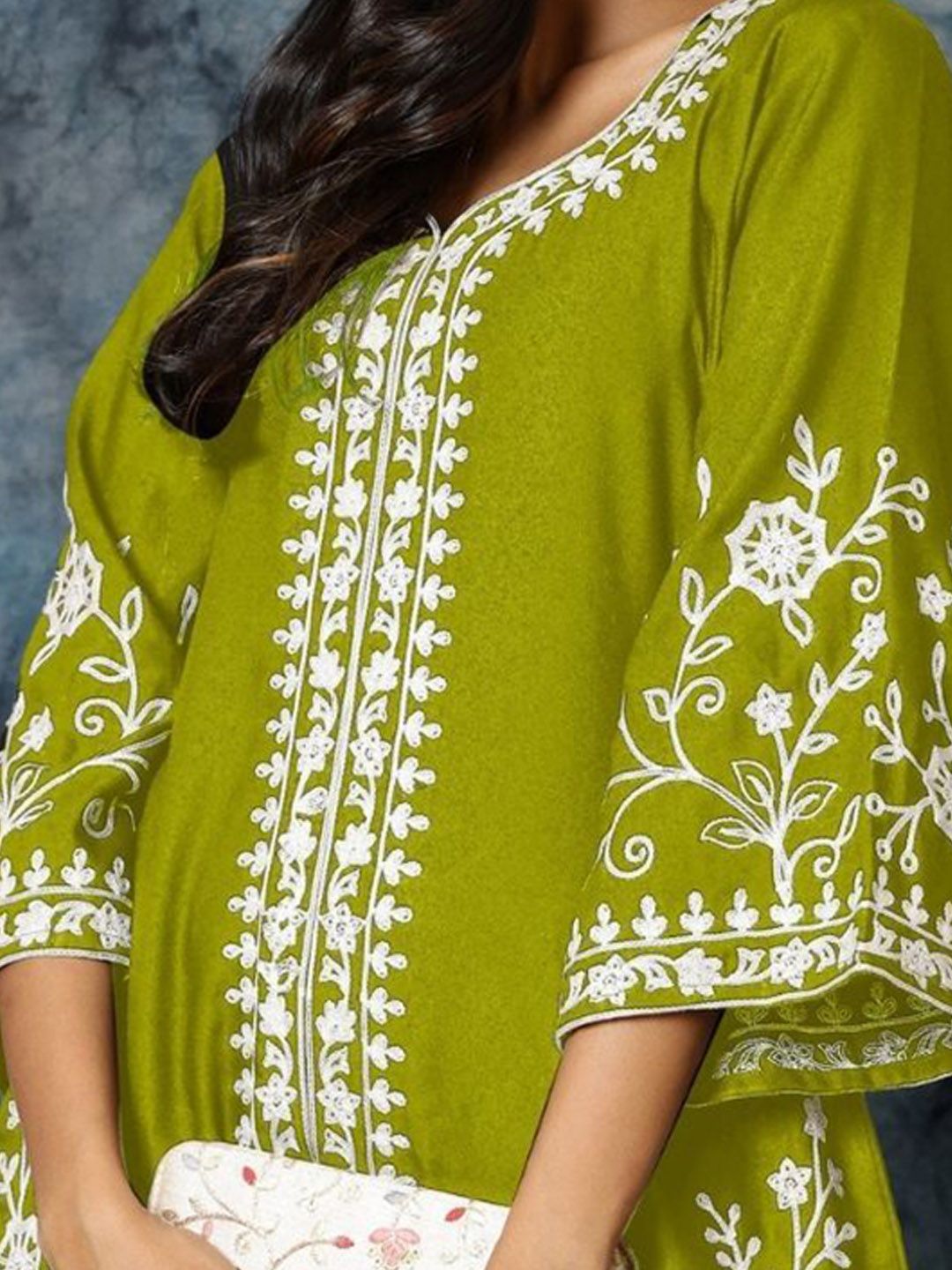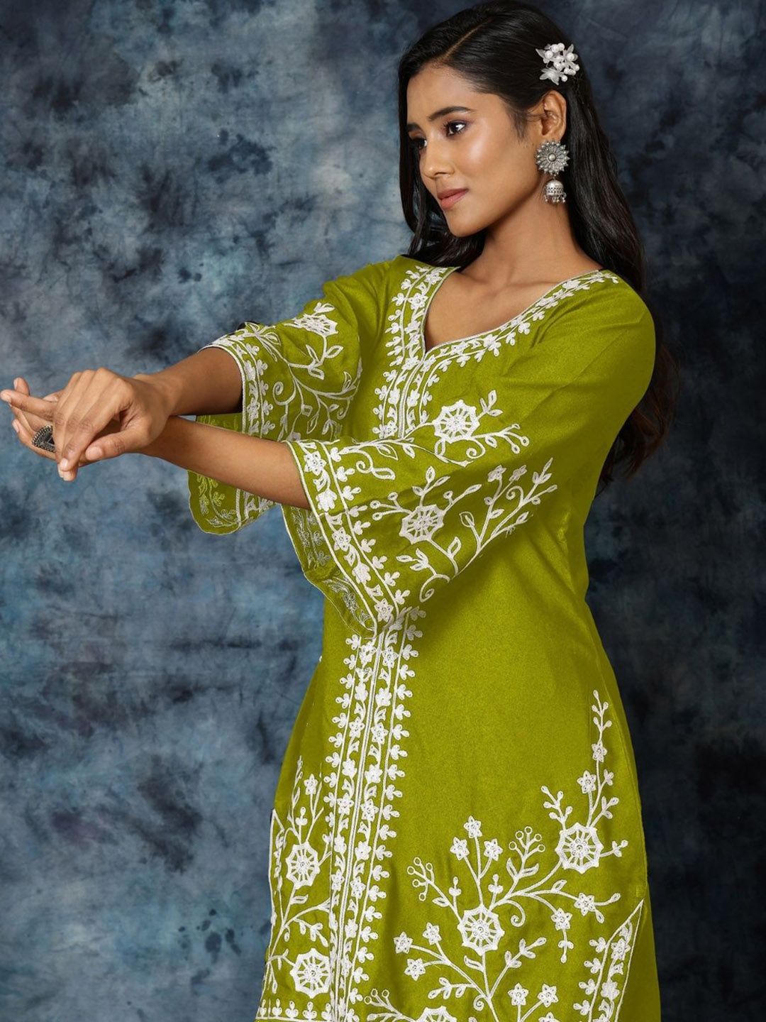 Sangria Chikankari Embroidered A-Line Kurta & Palazzos