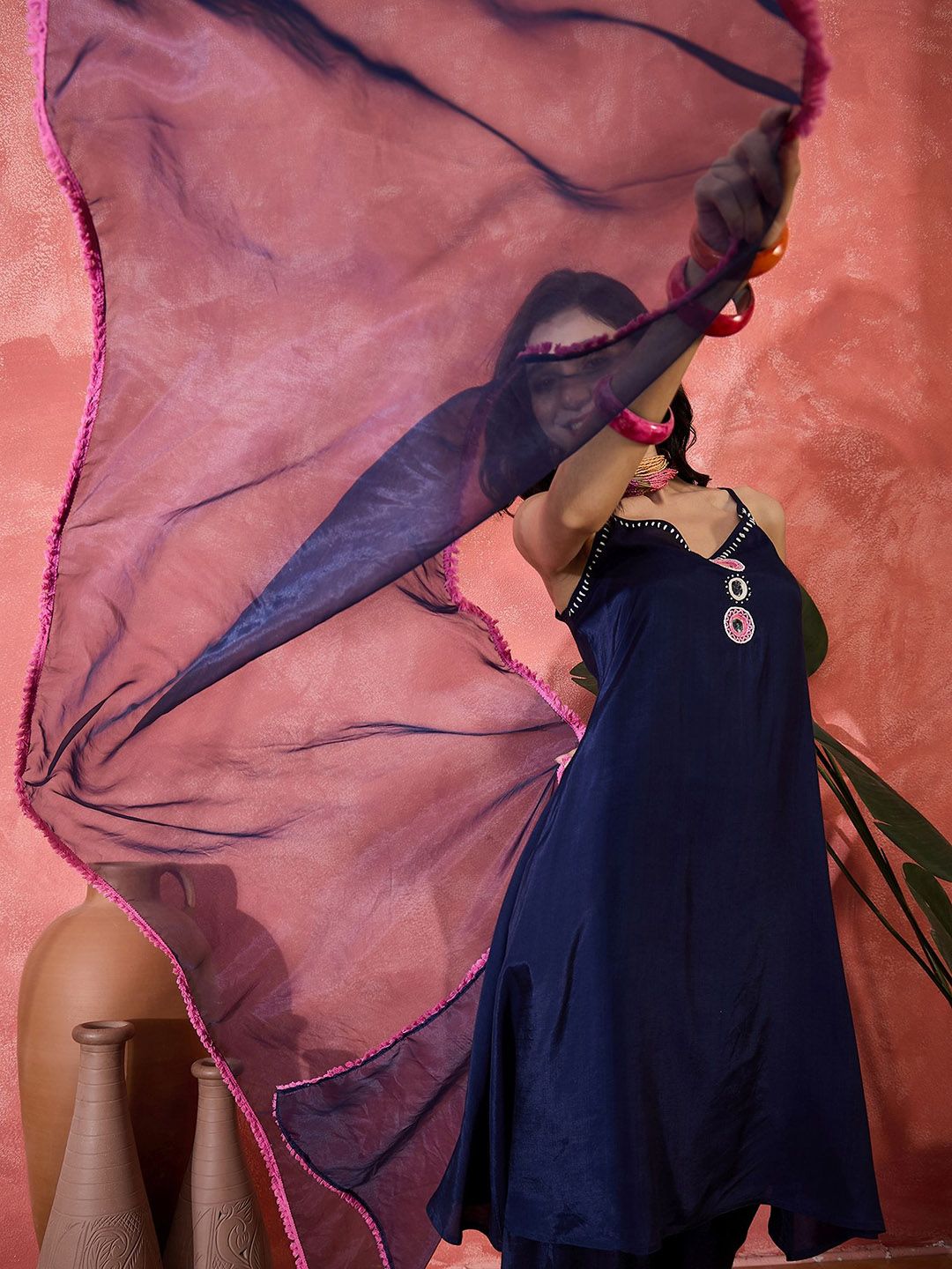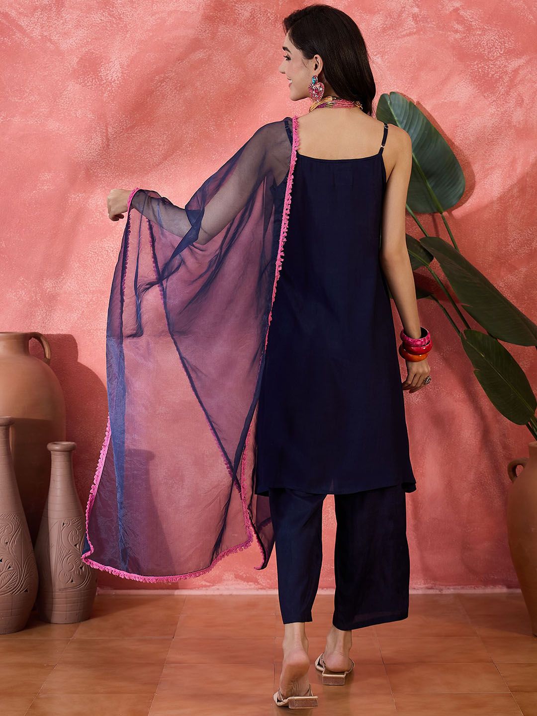 Sangria Embroidered Shoulder Straps Kurta With Trouser And Dupatta
