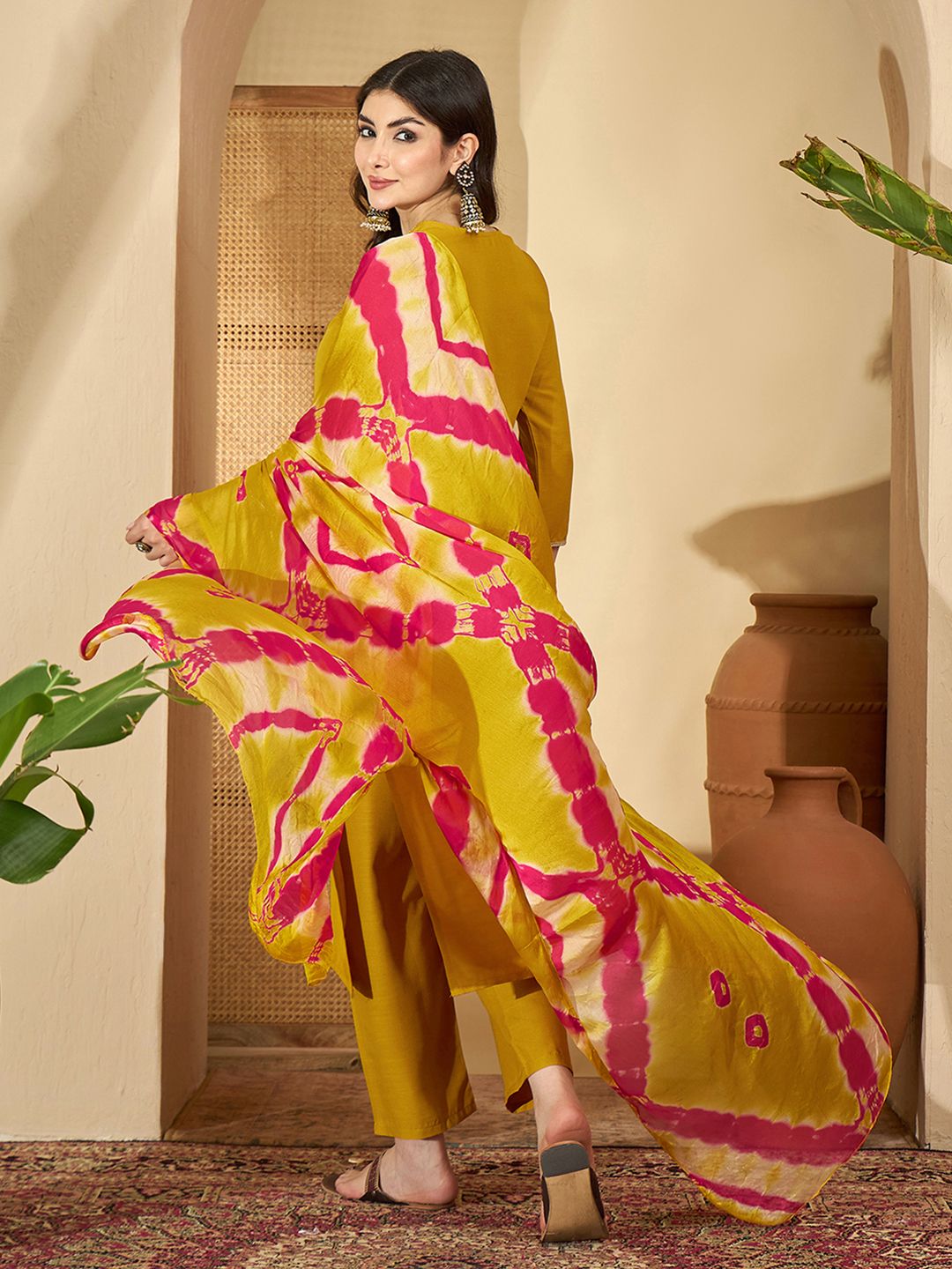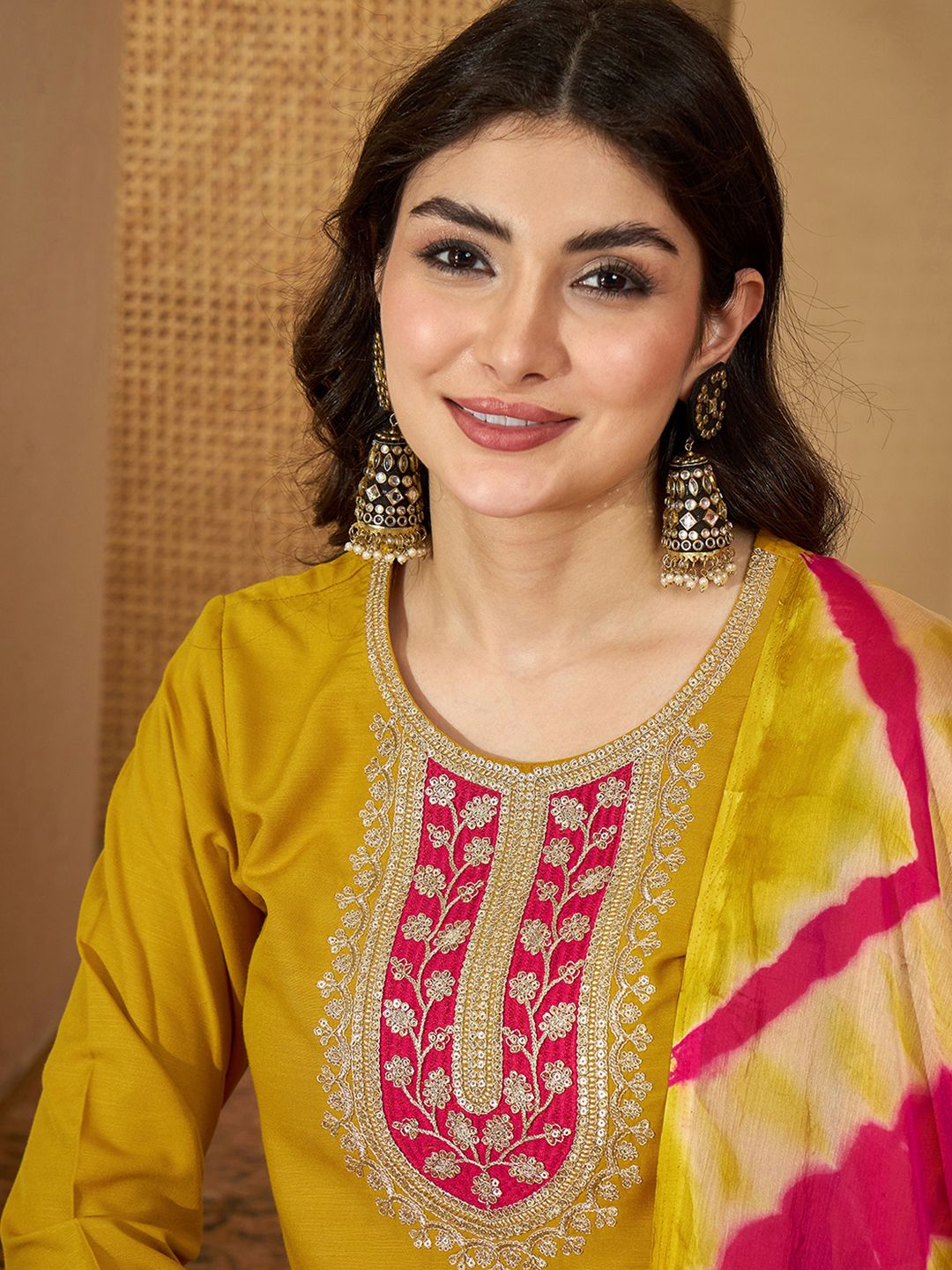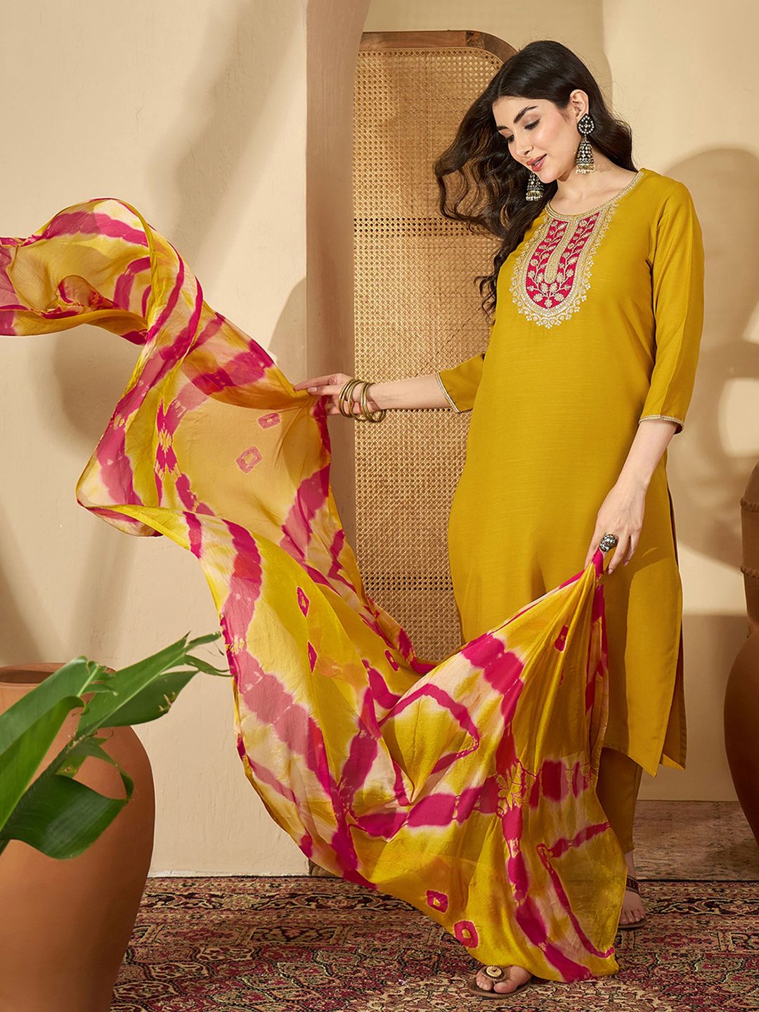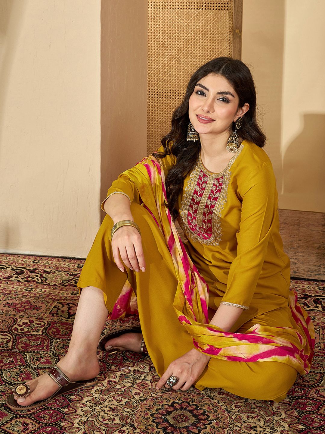 Sangria Embroidered Straight Kurta With Trouser & Dupatta