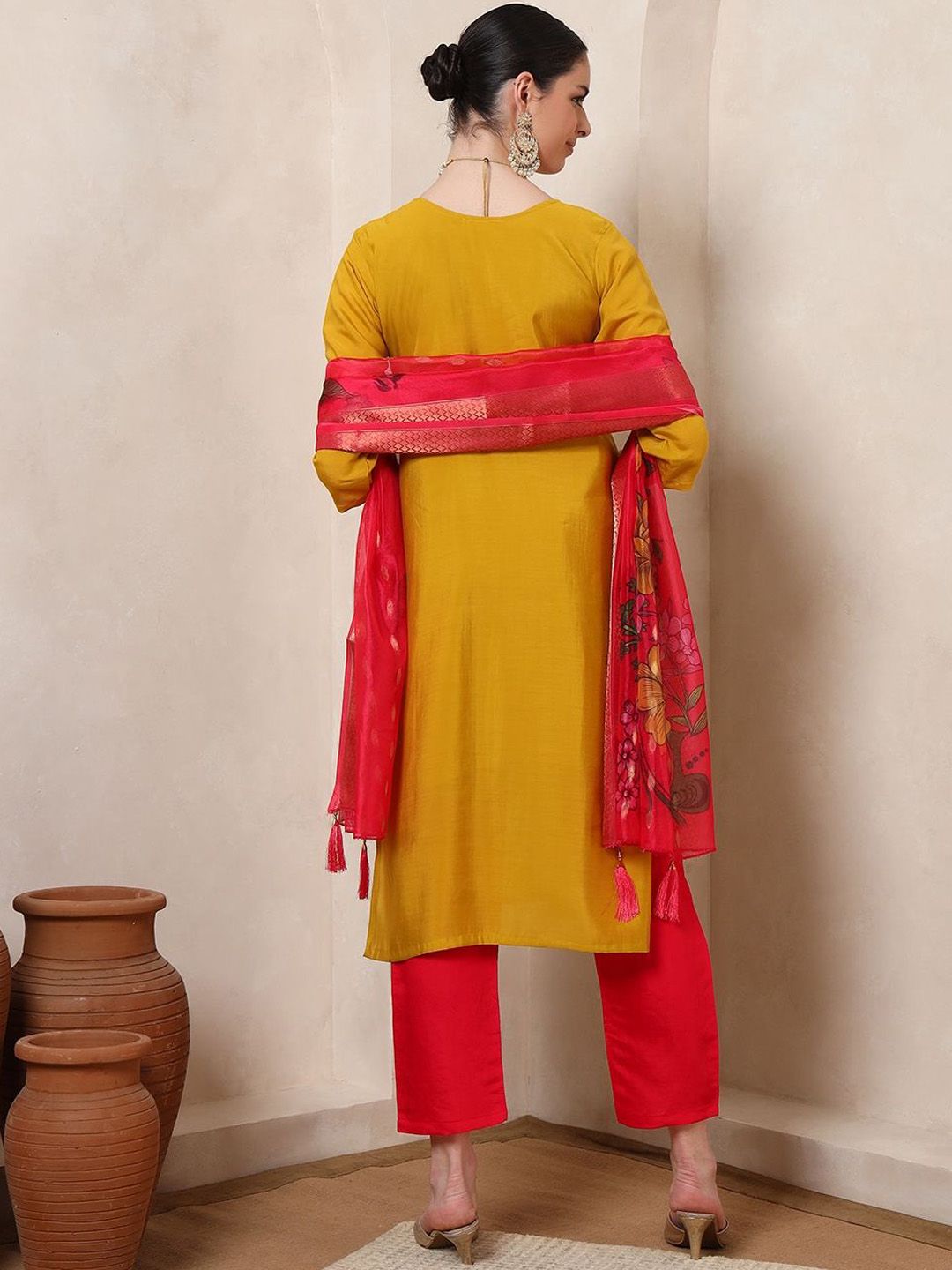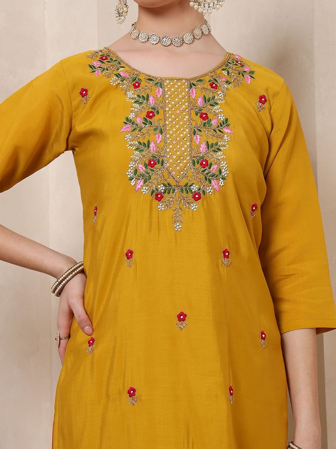 Sangria Embroidered Straight Kurta With Trouser & Dupatta