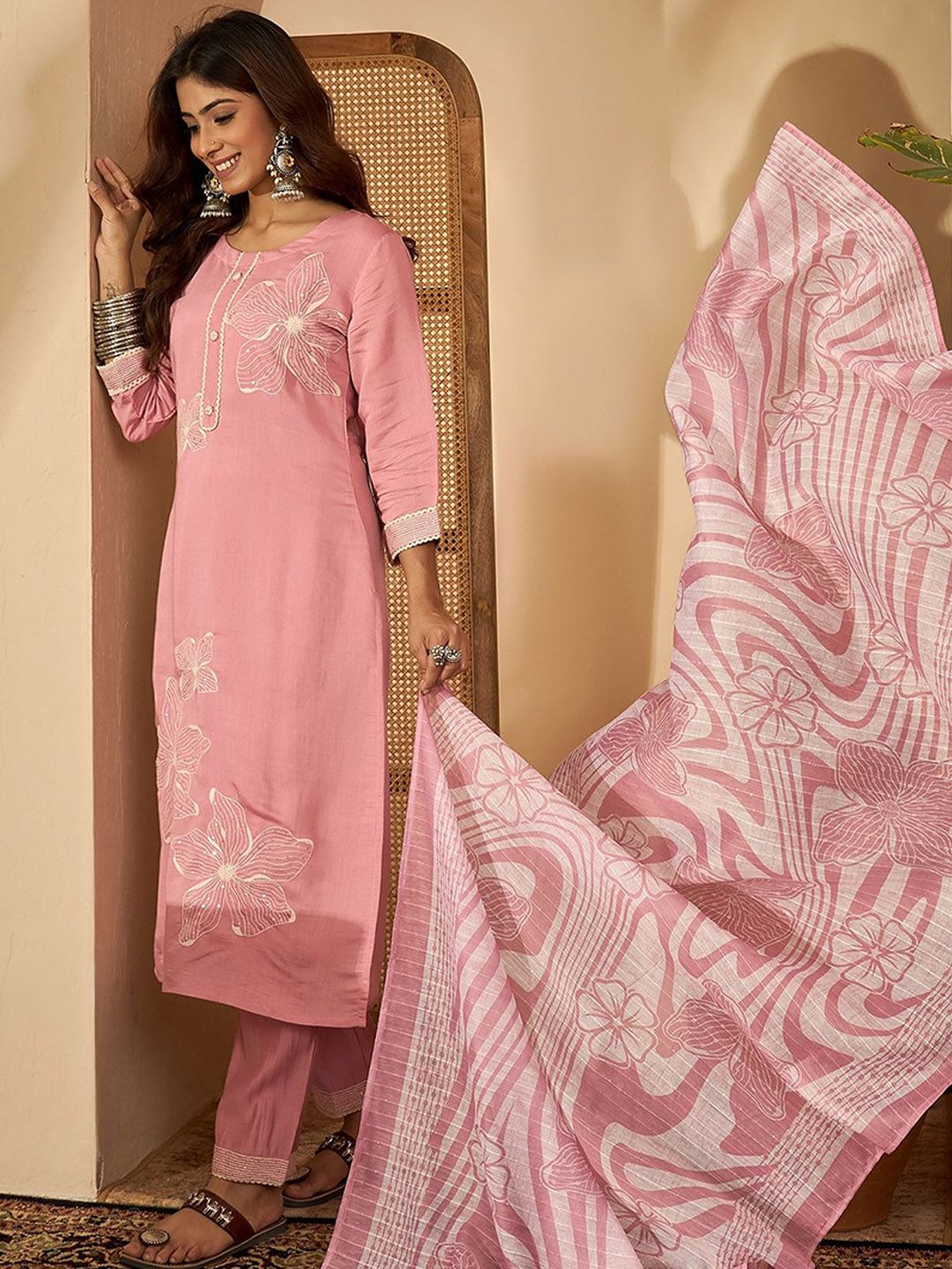 Sangria Embroidered Straight Kurta With Trouser & Dupatta