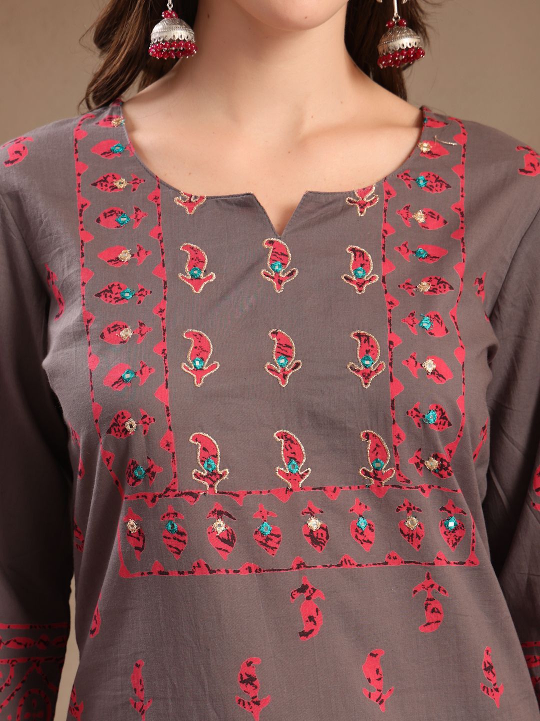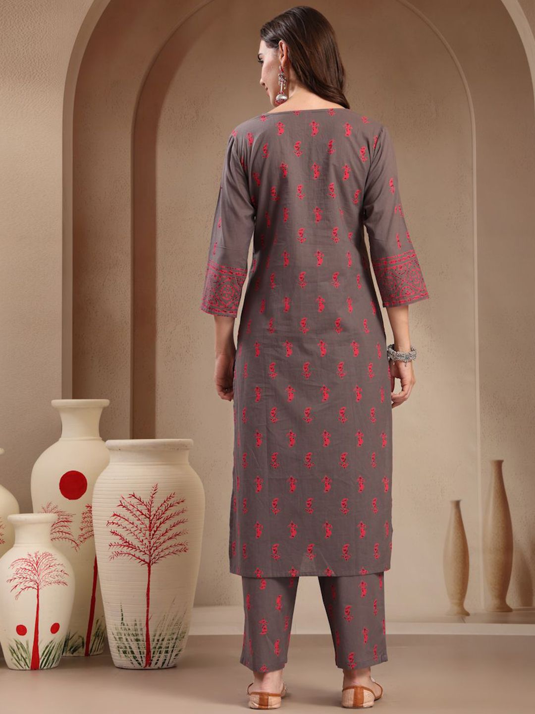 Sangria Embroidered V-Neck Pure Cotton Straight Kurta With Palazzos