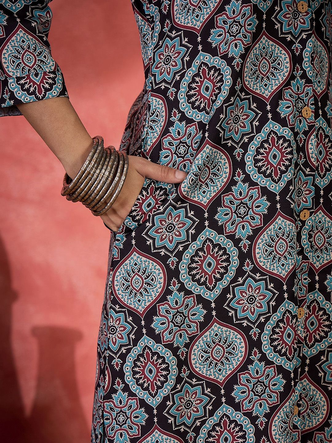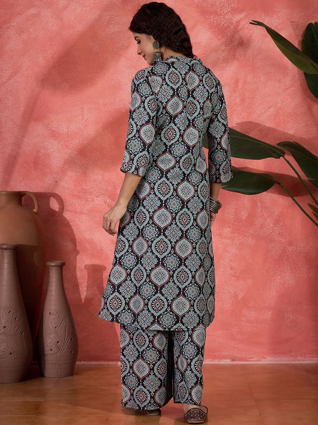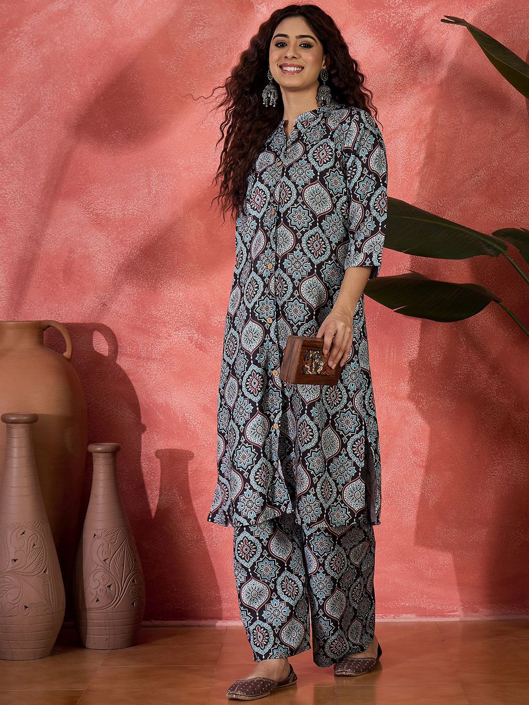 Sangria Ethnic Motifs Printed A-Line Kurta & Palazzo